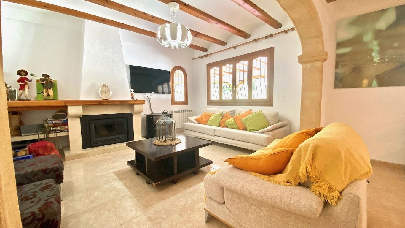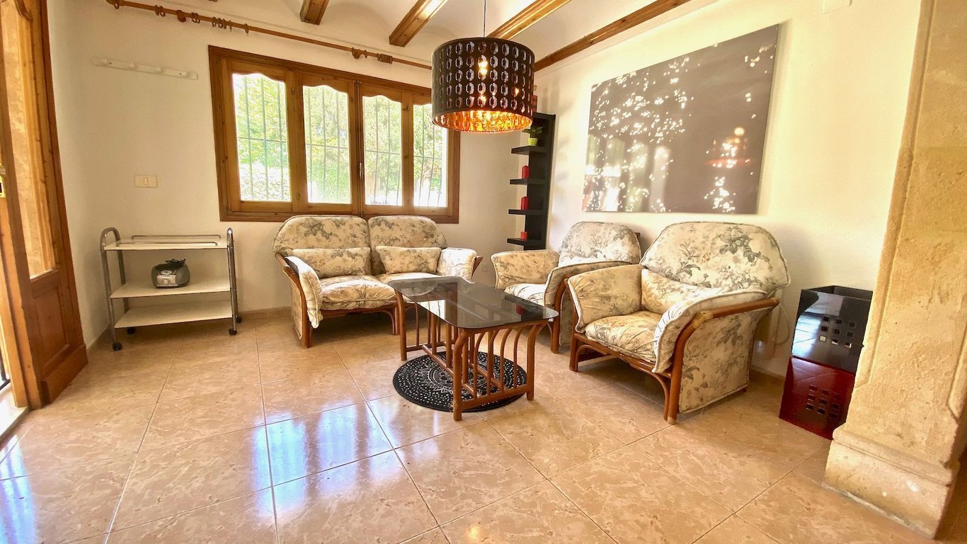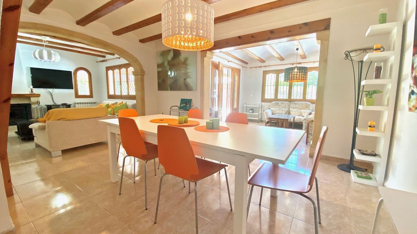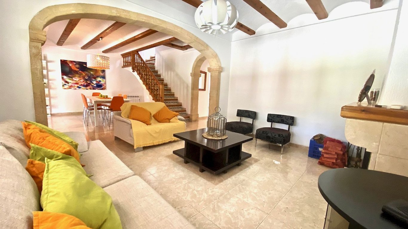 Elegante traditionele  en zeer zonnige Villa . De woning is verdeeld over twee verdiepingen, op de begane grond vinden we een grote woonkamer, woonkamer met open haard, eetkamer, hal, volledig gerenoveerde keuken, twee grote slaapkamers met inbouwkasten en een badkamer. Op de bovenste verdieping zijn er twee slaapkamers met inbouwkasten met een gerenoveerde badkamer toegang tot een groot terras. Groot overdekt terras met Tosca bogen, privé zwembad van 8 meter x 4 meter, barbecue  , afgesloten garage en parkeerplaats voor meer dan 4 auto's. Airconditioning warm / koud in alle ruimtes, automatische irrigatie systeem, urbanisatie met 24-uurs bewaking met rondes van beveiligingspersoneel en bewakingscamera's. Jávea wordt beschouwd als een van de juwelen van de Costa Blanca, De helderblauwe Middellandse Zee grenst aan de kust. Een oase van natuurlijke schoonheid gevestigd langs ongeveer 25 kilometer van de kust en  genesteld onder de imposante massa  van de berg Montgó, meer dan 750 meter hoog en het beschermen van de stad tegen  de sterke winden van het noorden van de winter. Javea, gelegen in een brede baai tussen de rotsachtige kapen van Cap de San Antonio en Cap de la Nao, is door de Wereldgezondheidsorganisatie gekozen  als de bijna perfecte omgeving en biedt 320 dagen zon per jaar. Het microklimaat kan als bijna perfect worden beschouwd en daarom een van de gezondste ter wereld, ideaal voor een vakantie op elk moment van het jaar.