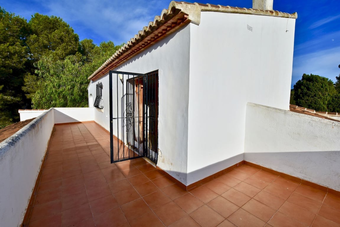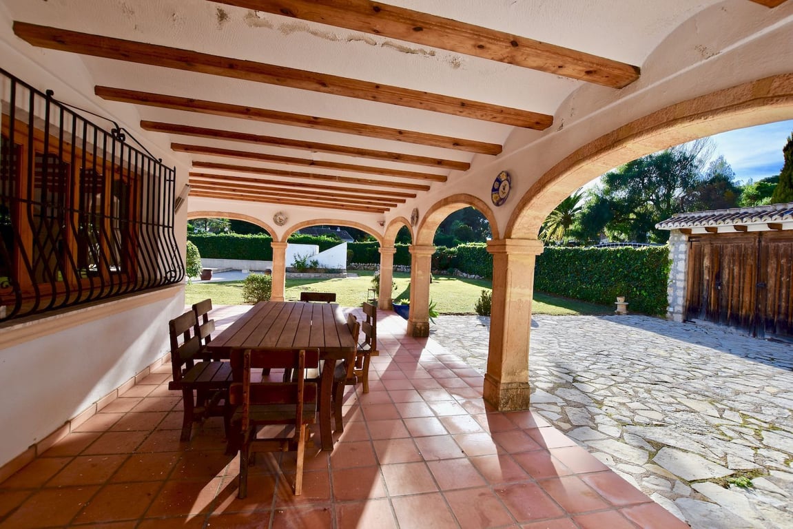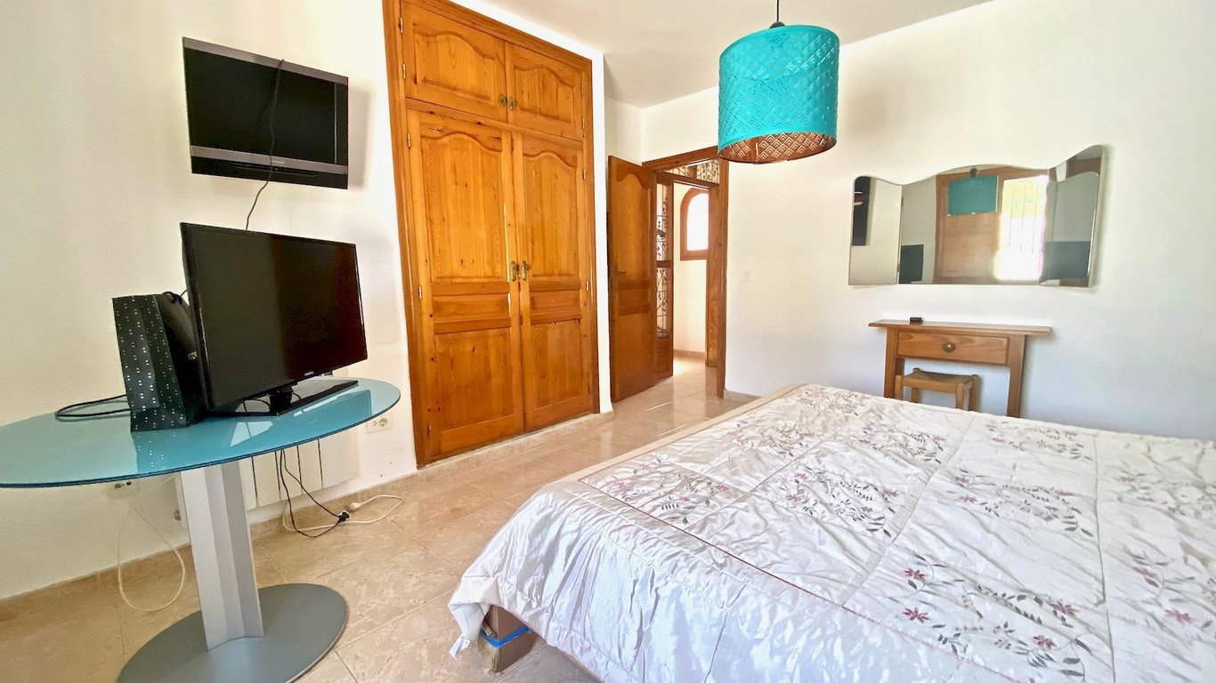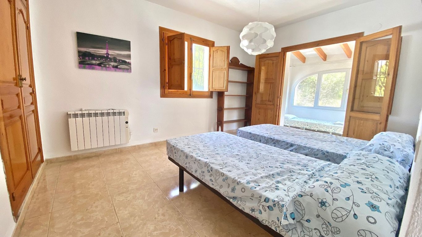 Elegante traditionele  en zeer zonnige Villa . De woning is verdeeld over twee verdiepingen, op de begane grond vinden we een grote woonkamer, woonkamer met open haard, eetkamer, hal, volledig gerenoveerde keuken, twee grote slaapkamers met inbouwkasten en een badkamer. Op de bovenste verdieping zijn er twee slaapkamers met inbouwkasten met een gerenoveerde badkamer toegang tot een groot terras. Groot overdekt terras met Tosca bogen, privé zwembad van 8 meter x 4 meter, barbecue  , afgesloten garage en parkeerplaats voor meer dan 4 auto's. Airconditioning warm / koud in alle ruimtes, automatische irrigatie systeem, urbanisatie met 24-uurs bewaking met rondes van beveiligingspersoneel en bewakingscamera's. Jávea wordt beschouwd als een van de juwelen van de Costa Blanca, De helderblauwe Middellandse Zee grenst aan de kust. Een oase van natuurlijke schoonheid gevestigd langs ongeveer 25 kilometer van de kust en  genesteld onder de imposante massa  van de berg Montgó, meer dan 750 meter hoog en het beschermen van de stad tegen  de sterke winden van het noorden van de winter. Javea, gelegen in een brede baai tussen de rotsachtige kapen van Cap de San Antonio en Cap de la Nao, is door de Wereldgezondheidsorganisatie gekozen  als de bijna perfecte omgeving en biedt 320 dagen zon per jaar. Het microklimaat kan als bijna perfect worden beschouwd en daarom een van de gezondste ter wereld, ideaal voor een vakantie op elk moment van het jaar.