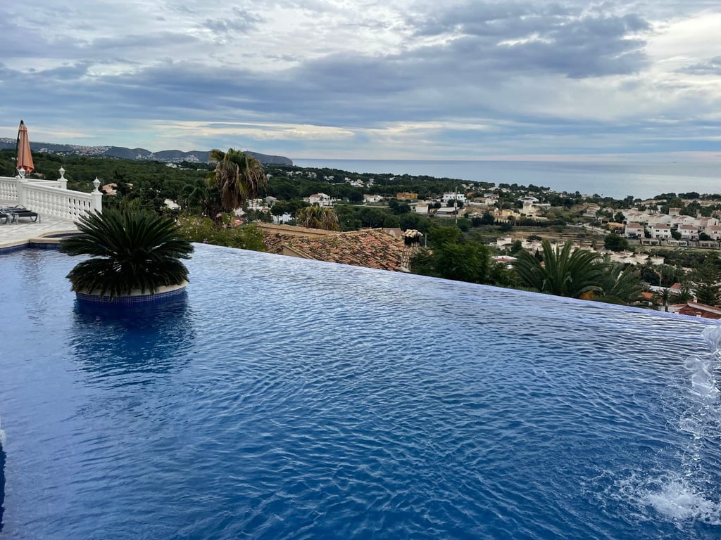 Vrijstaande villa met zeezicht en dubbele woonindeling te koop in Calpe In Calpe wordt deze vrijstaande villa uit 2013 aangeboden, gelegen op een perceel met volledige privacy en uitzicht op zee. De woning is gebouwd volgens Duitse bouwnormen, met isolatie in de buitenmuren en plafonds voor een comfortabel binnenklimaat, zowel in zomer als winter. Beschrijving De villa is momenteel opgedeeld in twee identieke appartementen. Elk appartement beschikt over een woon- en eetkamer, open keuken, twee slaapkamers en twee badkamers. De appartementen kunnen intern met elkaar worden verbonden via een binnentrap. Beide verdiepingen hebben directe toegang tot ruime terrassen. Er is ook een dakterras (solarium) met vrij uitzicht op zee. Het perceel is zuidoostelijk georiënteerd en grenst aan een groene zone. De tuin vergt weinig onderhoud. De ramen zijn uitgevoerd in ruw aluminium met gebronsd veiligheidsglas, voorzien van horren en rolluiken. Er is een garage met ruimte voor drie auto's. De toegang is beveiligd met elektrische poorten. Het zwembad is een opvallend element van deze villa: een infinity pool van 23x12 meter met een unieke vorm, voorzien van een geïntegreerde jacuzzi, kinderbad, waterval en een centraal geplaatste palmboom. Het zwembad en het woonniveau bevinden zich op gelijke hoogte dankzij een natuurstenen muur van 4,5 meter. De woning ligt aan een doodlopende straat. Bijzonderheden Gebouwd volgens Duitse standaardTwee zelfstandige appartementen, intern verbindbaarAirconditioningDakterras met zeezichtRamen met veiligheidsglas, horren en rolluikenGarage voor 3 auto'sGroot infinity zwembad (23x12 m) met jacuzzi, kinderbad en watervalRustig gelegen, volledige privacyWaarom deze villa bezichtigen Geschikt voor dubbele bewoning of verhuurGrote buitenruimte en zwembad op één niveau met de woningSolide bouwZeezichtEen villa met een doordachte indeling, veel ruimte en zeezicht te koop in Calpe. Neem contact op voor een bezichtiging of aanvullende informatie.