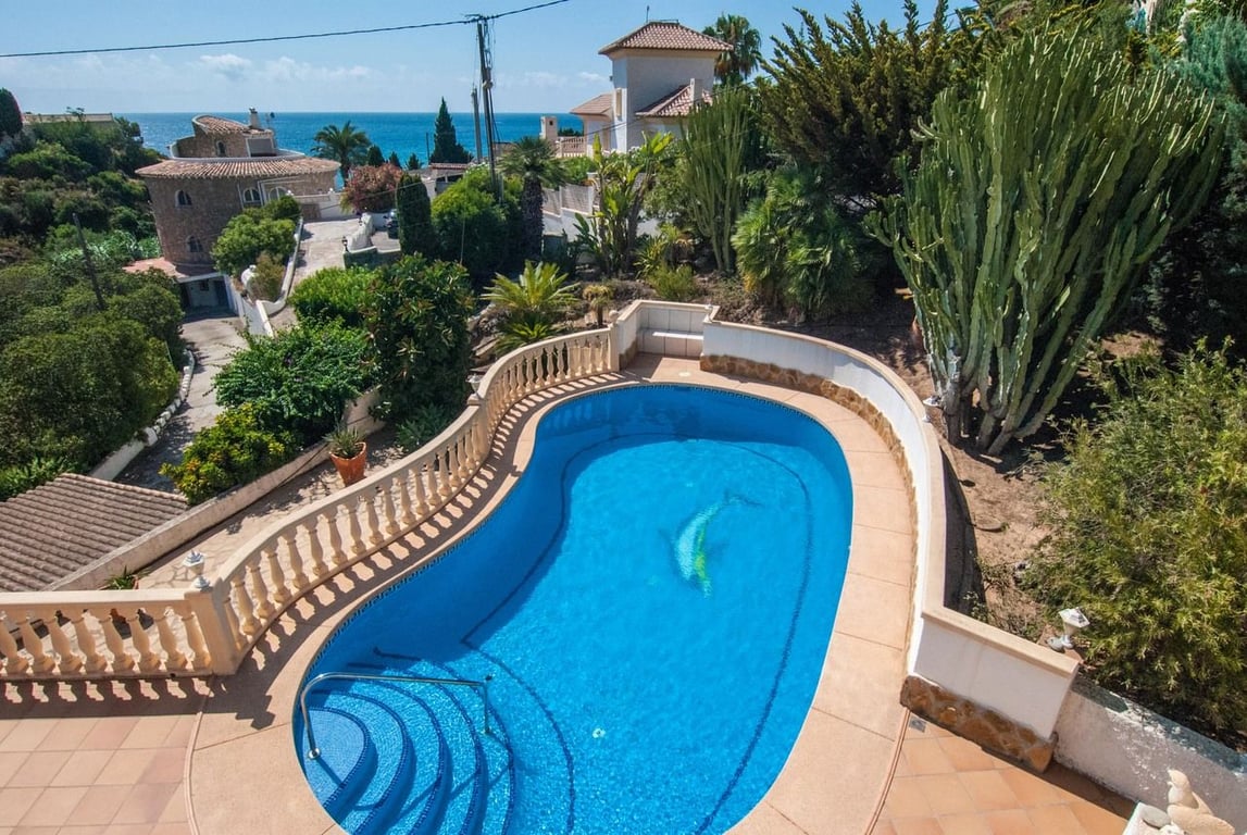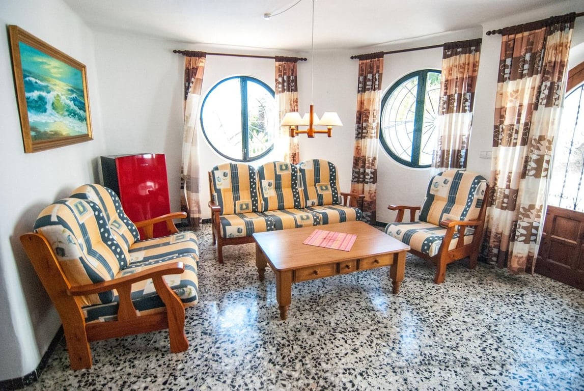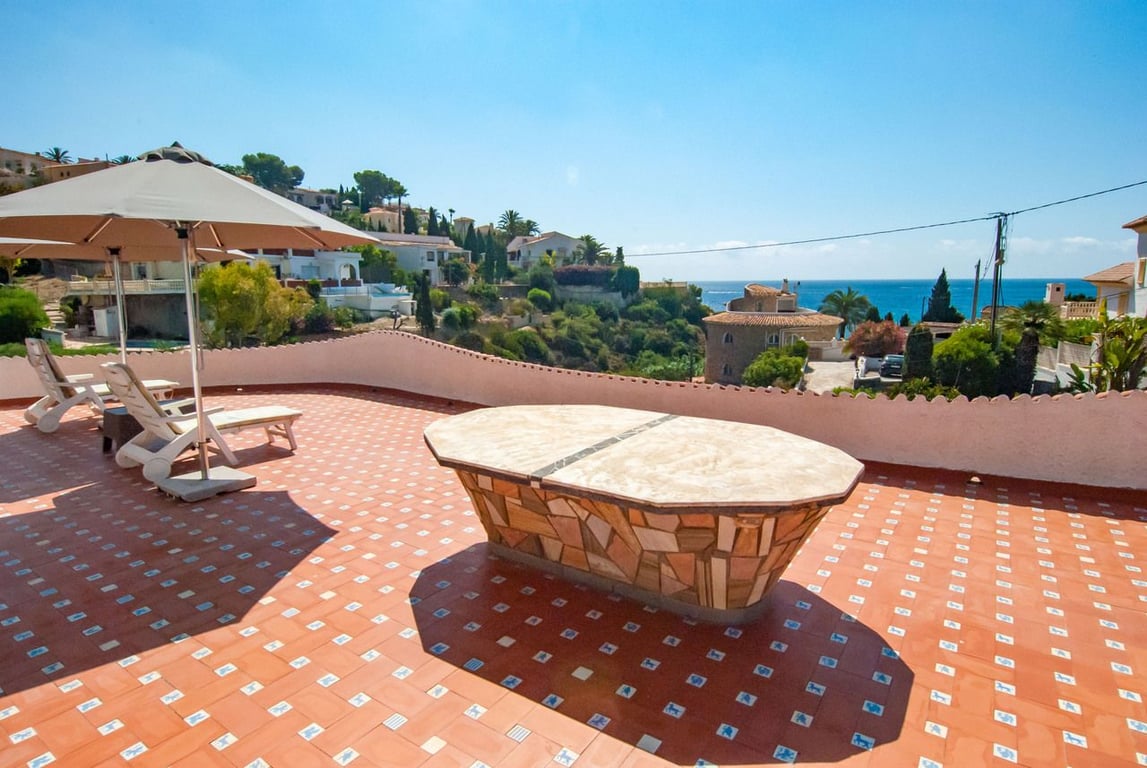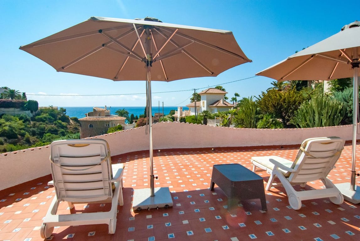 Villa with sea views in classic 80's style with large dimensions and a lot of potential for a possible renovation.The plot is located only 50 metres from the beach Puerto Blanco, or in other words, only 1 minute walking distance.Divided into: Upstairs dedicated to master bedroom suite with bathroom and terrace overlooking the sea. Ground floor with living-dining room, kitchen, 2 bedrooms and 2 bathrooms, glazed porch and large outdoor terrace. It is completed with garage, storage room and parking area. The semi-basement floor is dedicated to guests and consists of 2 bedrooms, 2 bathrooms, a living-dining room, a kitchen, parking area and terrace with swimming pool. It is important to mention the garden, totally consolidated and autochthonous.The bedrooms and living/dining room of the main house have air conditioning hot/cold.The swimming pool is heated to extend the use of the pool in the nearby summer months.