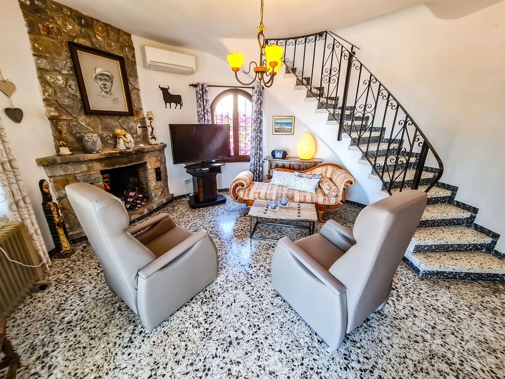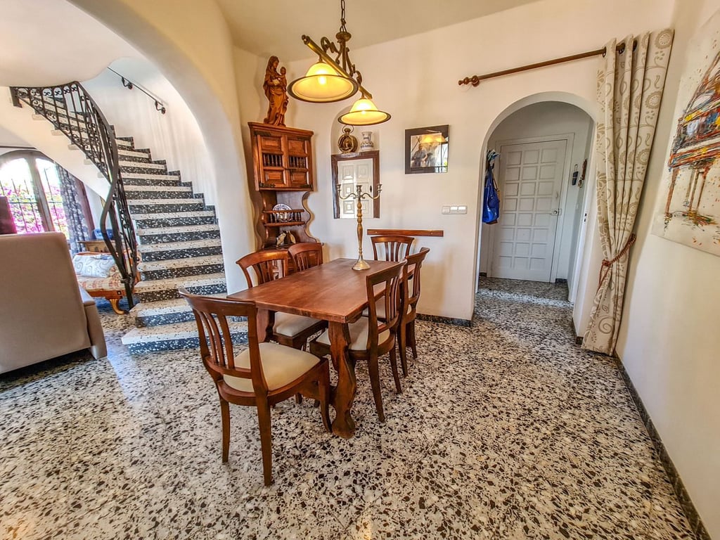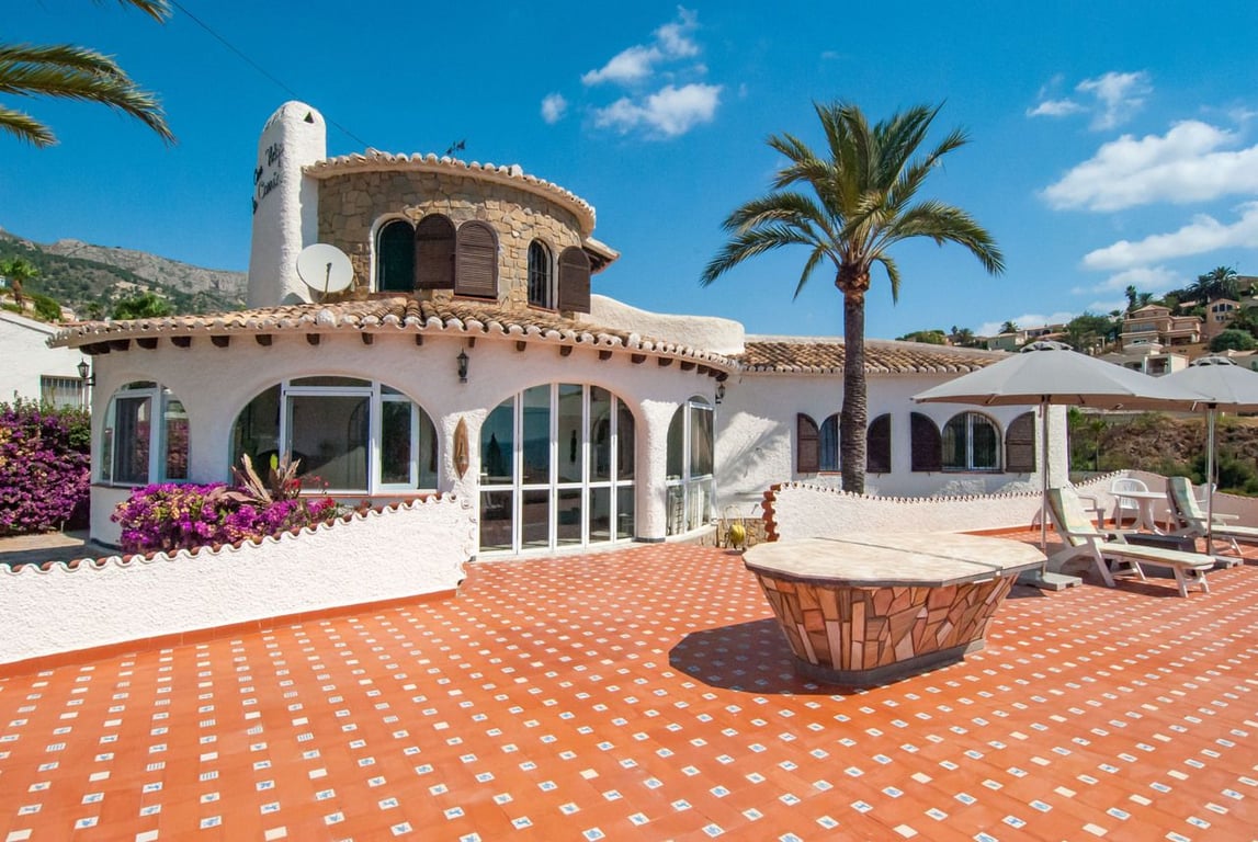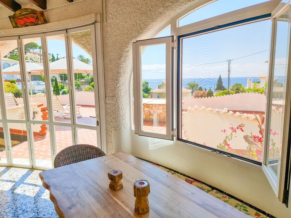 Villa with sea views in classic 80's style with large dimensions and a lot of potential for a possible renovation.The plot is located only 50 metres from the beach Puerto Blanco, or in other words, only 1 minute walking distance.Divided into: Upstairs dedicated to master bedroom suite with bathroom and terrace overlooking the sea. Ground floor with living-dining room, kitchen, 2 bedrooms and 2 bathrooms, glazed porch and large outdoor terrace. It is completed with garage, storage room and parking area. The semi-basement floor is dedicated to guests and consists of 2 bedrooms, 2 bathrooms, a living-dining room, a kitchen, parking area and terrace with swimming pool. It is important to mention the garden, totally consolidated and autochthonous.The bedrooms and living/dining room of the main house have air conditioning hot/cold.The swimming pool is heated to extend the use of the pool in the nearby summer months.