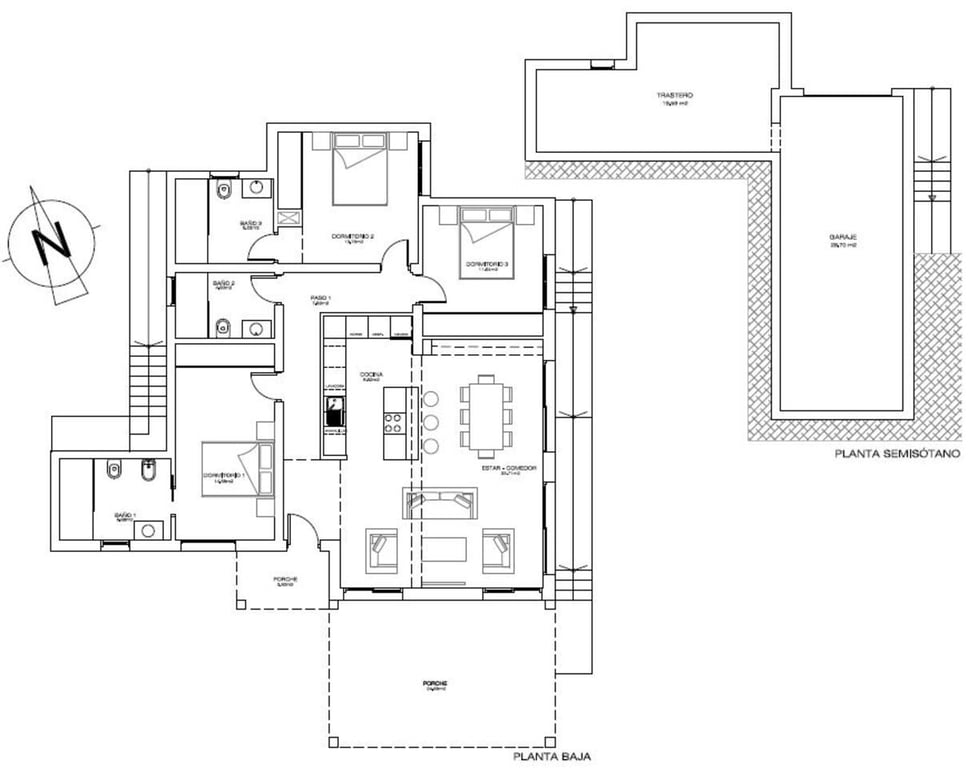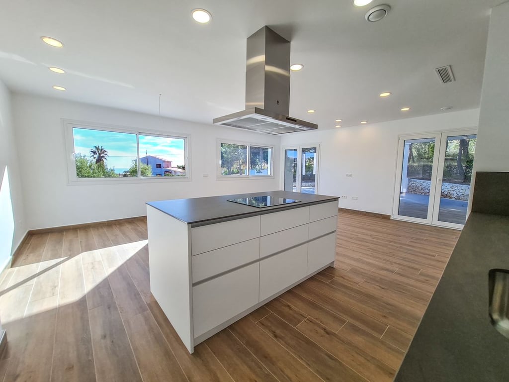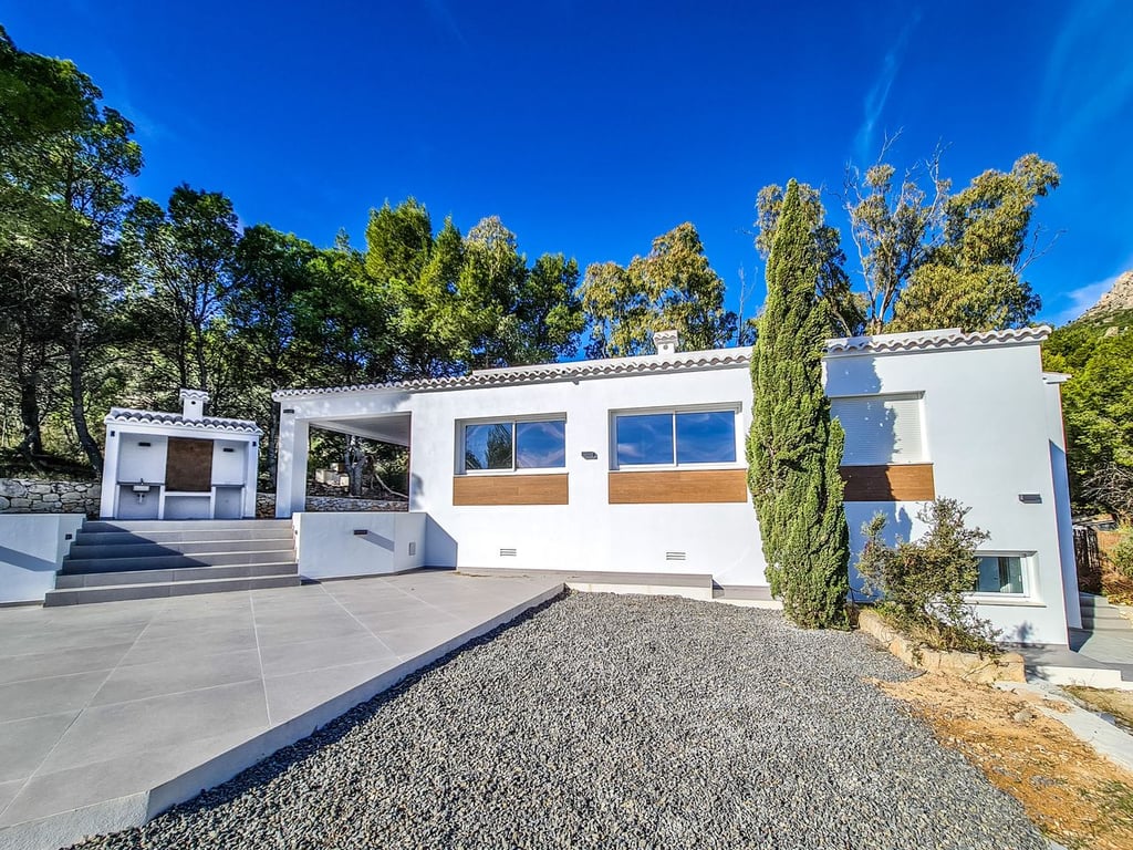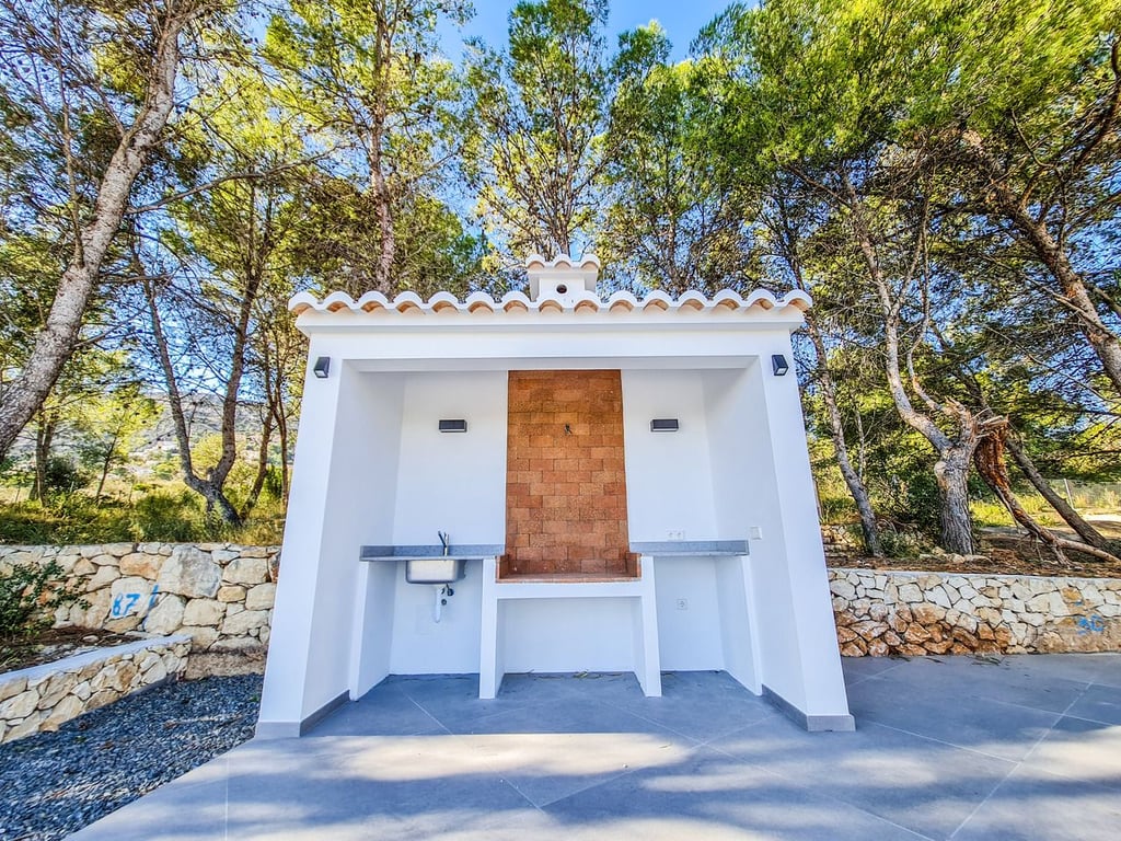 A beautiful Villa on a very large plot for those who are looking for tranquility, privacy, nature or extra space for any outdoor hobby. It is located at a short distance from the beach and the town. You can see the sea and the Peñón de Ifach from the house, as well as breathe in the tranquility and good vibes that nature transmits. This 'finca style' villa can be also a business opportunity for the future for those who are looking to rent a property and offer services and activities.The villa mixes classic Mediterranean style with modernity, combining traditional elements such as natural stone, wood and roof tiles, with other modern elements such as large windows, design interiors and technology from 2021.In the exterior area, there is a large porch with a covered barbecue and a few metres away a large and private swimming pool area surrounded by its landscape.The house has got plenty of parking area and a specific carport close to the entrance door.The villa has got a semi-basement which can be used as storage, garage, laundry or as a fourth bedroom.