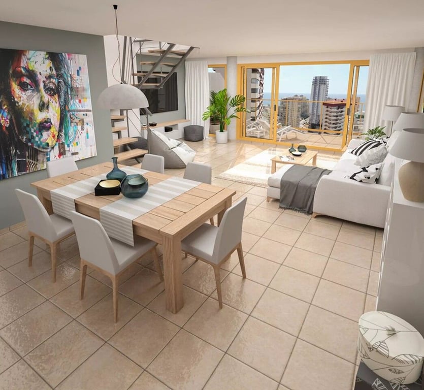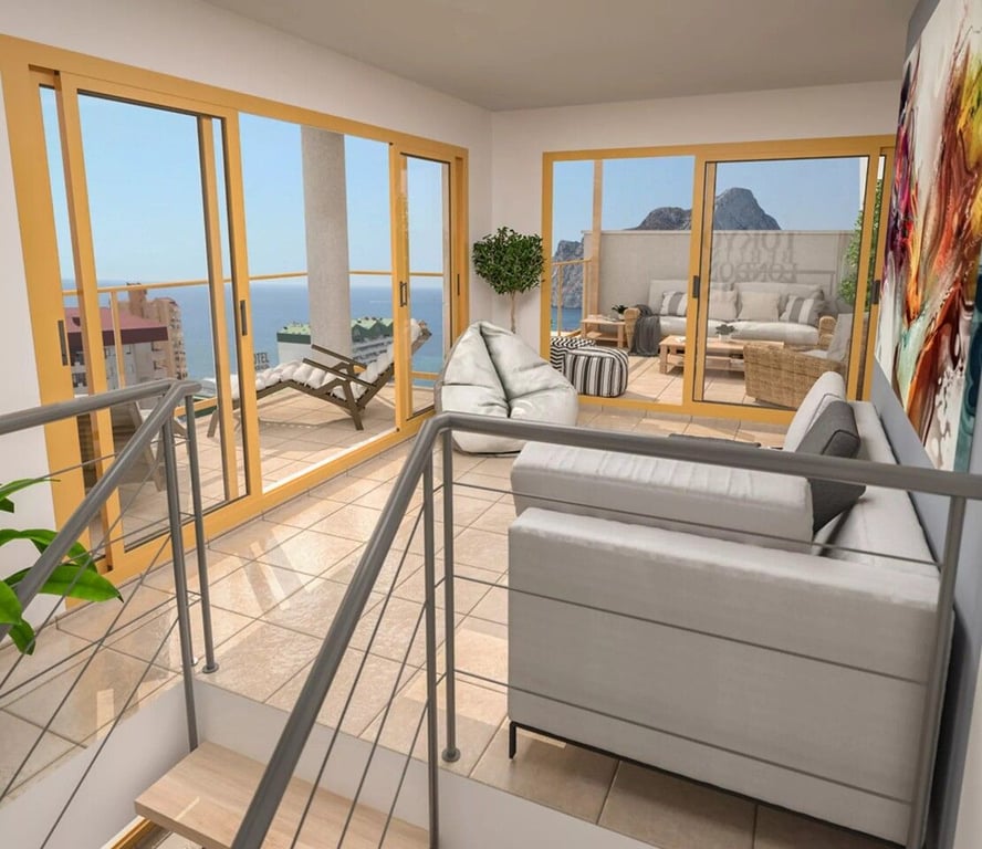 Fabulous Duplex Penthouse Apartment located 100 metres from the Levante Beach in Calpe.With a total surface area of 278m2, fully furnished and with fitted wardrobes, consists of three bedrooms and three bathrooms. Three of the bedrooms are located on the first floor, one of them with an en-suite bathroom. There is a spacious and comfortable dining room, making this penthouse a great opportunity.From the living room you have direct access to an open terrace, which gives you unbeatable views over the Mediterranean Sea, beach and the Rock of Ifach, Calpe's most emblematic natural park.You can also enjoy the views over the mountains surrounding Calpe. The second floor consists of a wide living-room furnished, a bathroom and a fully-equipped kitchen. In addition, there is also a covered terrace and a pergola. Its swimming pools and parking spaces are some of the facilities you will find in the building's communal areas.One of the very best Apartments in Calpe! One not to be missed.