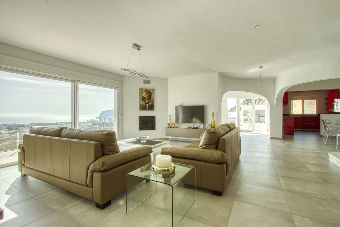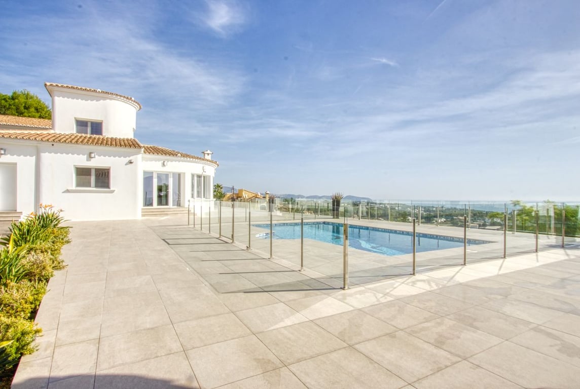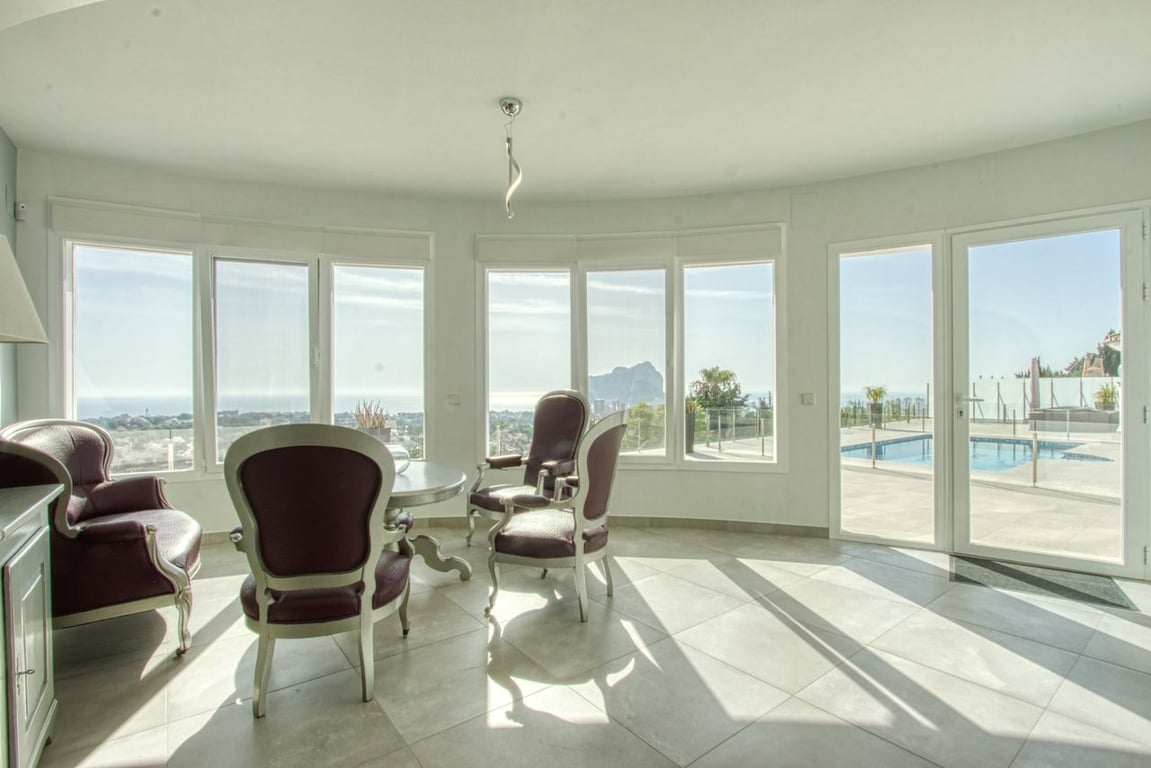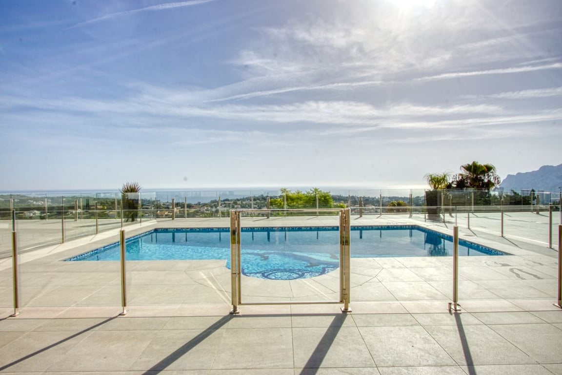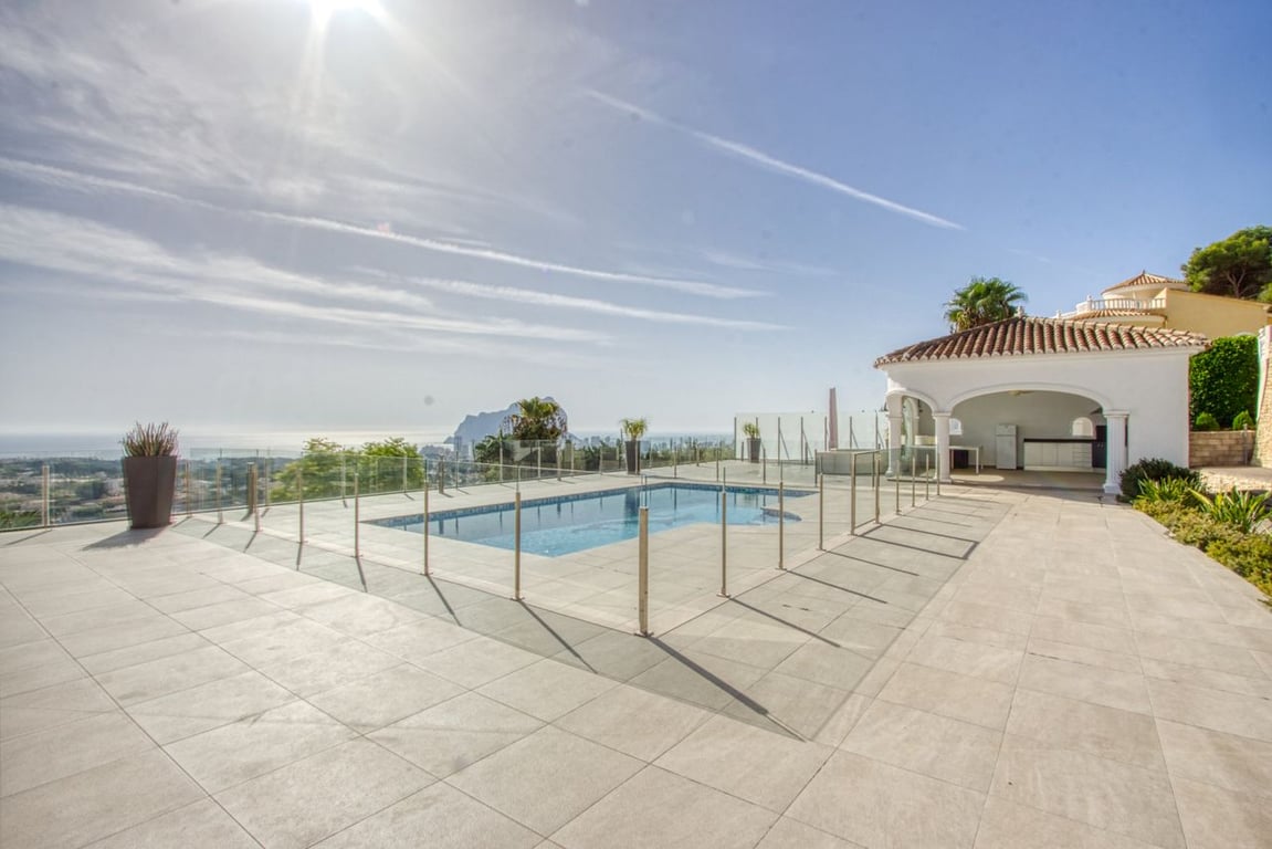 Immaculate South facing luxury 5bed villa located in calpe with endless outstanding sea views.This elegant modern style villa is situated in a quiet and peaceful cul de sac street only 2.5 km from La Fustera Beach in Benissa. Unfolding over 2 floors and basement floor this sophisticated property offers flowing open space of living and dining areas. Upon entering the villa on the main floor you will find a striking fully equipped modern style kitchen spilling into the spacious dining area, along with a seperate laundry/utility room. In the main lounge area you will find an intergrated fireplace complimenting the contempory style of this villa perfect for the winter nights. The lounge also has floor to ceiling sliding double doors opening out onto the magnificent terrace where there is no hiding from the views of the Peñón De Ifach and mediterranean sea.The outside terrace and pristine pool area is truly an abundance of space wrapped in the blue sea views with outside kitchen and relaxing chillout area designed perfectly for outdoor living, dining and entertaining.Off the living area a beautifully appointed staircase leads up to a charming bedroom accompanied with ensuite, dresser and private terrace to admire the amazing mediterrean sea views.On the main floor off the hallway there are 3 double bedrooms 1 of which has a genrous sized ensuite plus sea views, the largest bedroom has its own beautiful private terrace. Along the hallway there is addictional built in wardrobes for extra storage. At the end of the hallway you will find another staircase which leads to a magnificent grand bedroom on the first floor accompanied with  built in wardrobes and a large mordern style ensuite.Within the distinguished gated grounds you also have 2 garages,( 1 on the lower level of the house, the other separate), expansive drive way for several cars and beautiful low maintence landscaped gardens.This immpresive modern mediterrean style villa is designed with pure elegance and sophistication ideal for a luxury family living, viewing is highly recommended