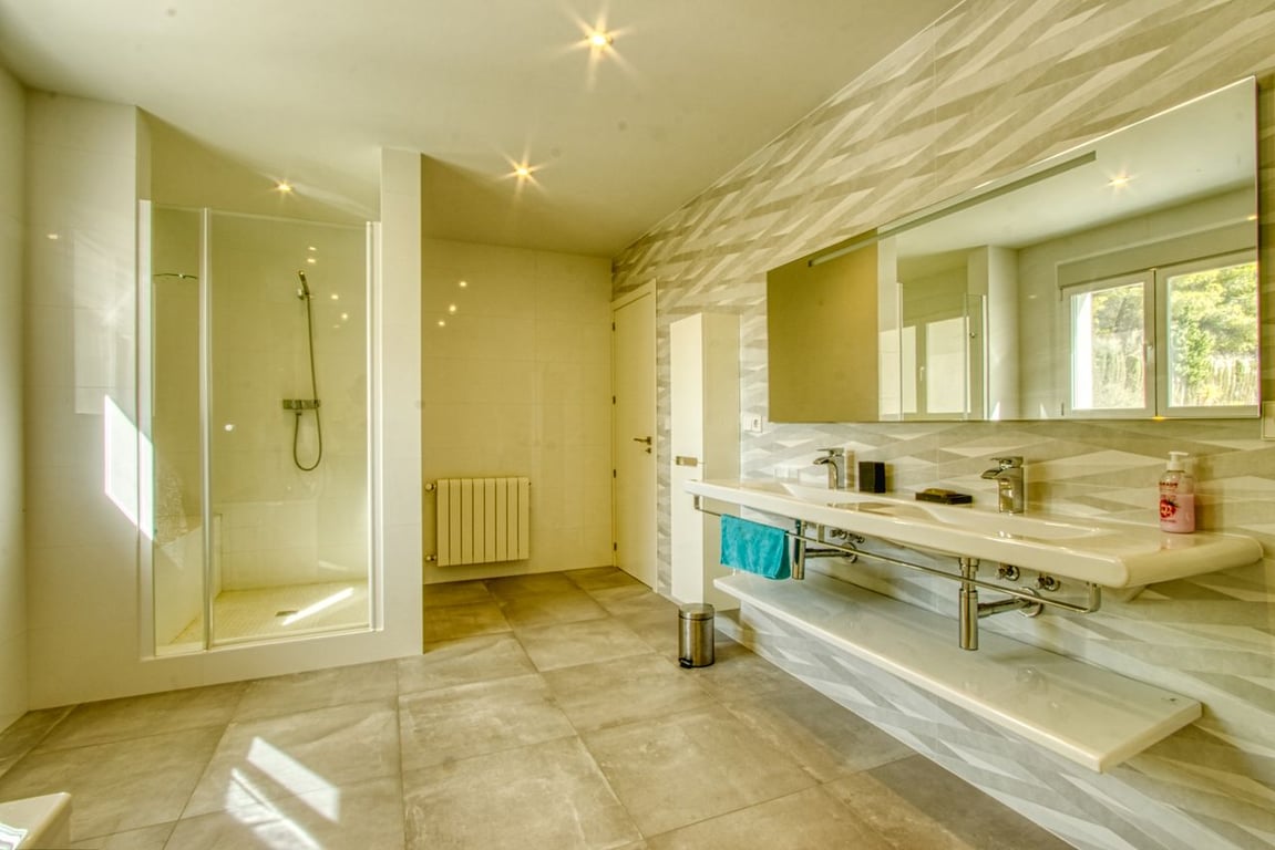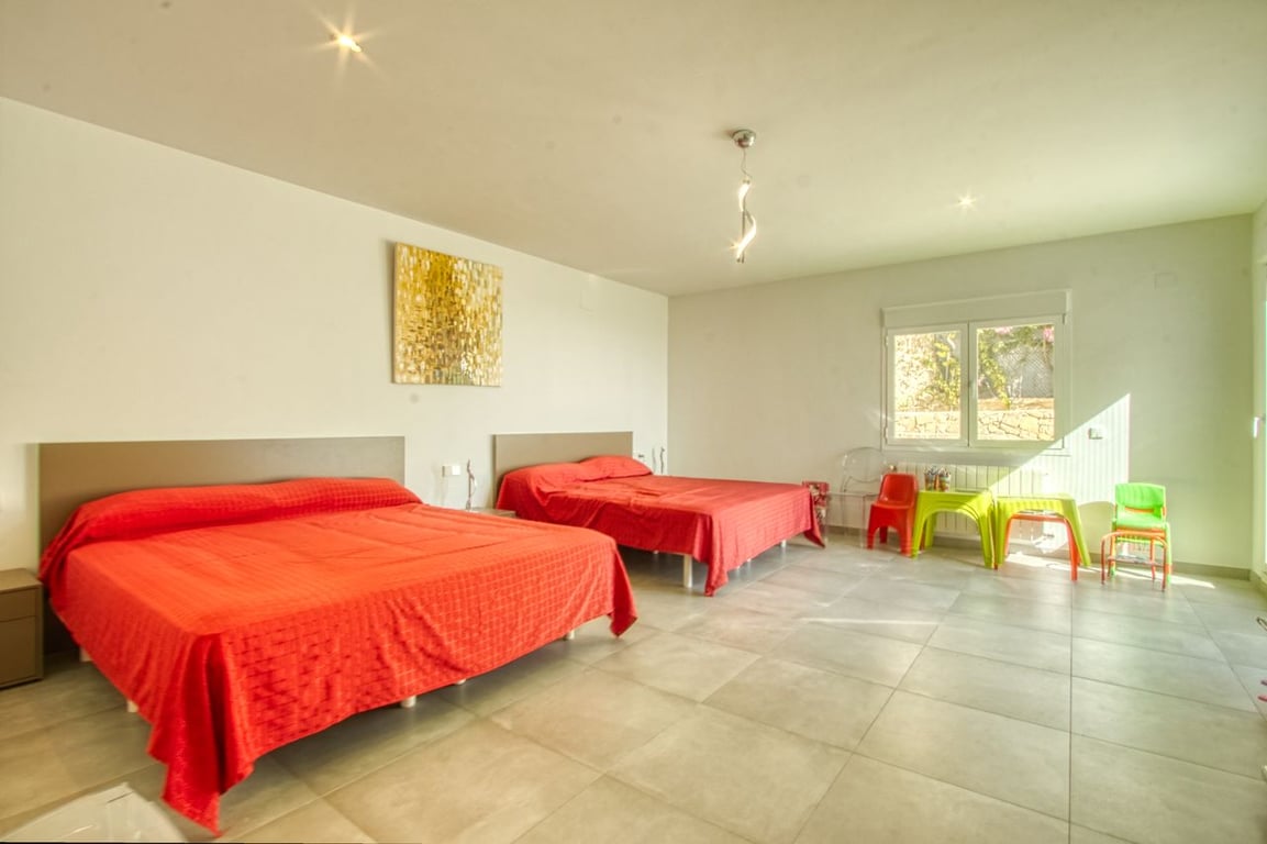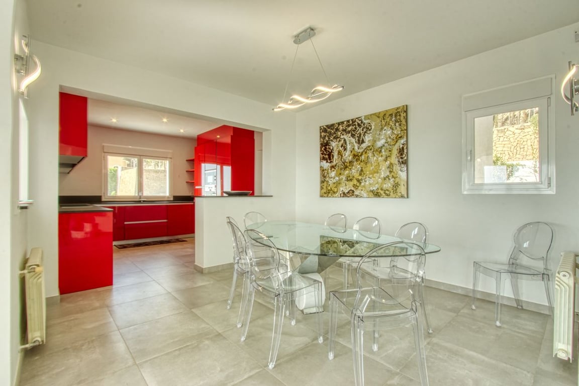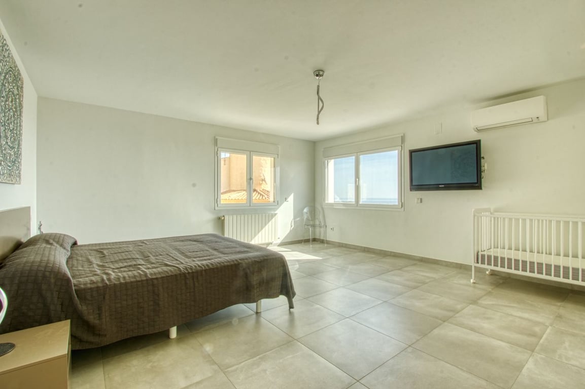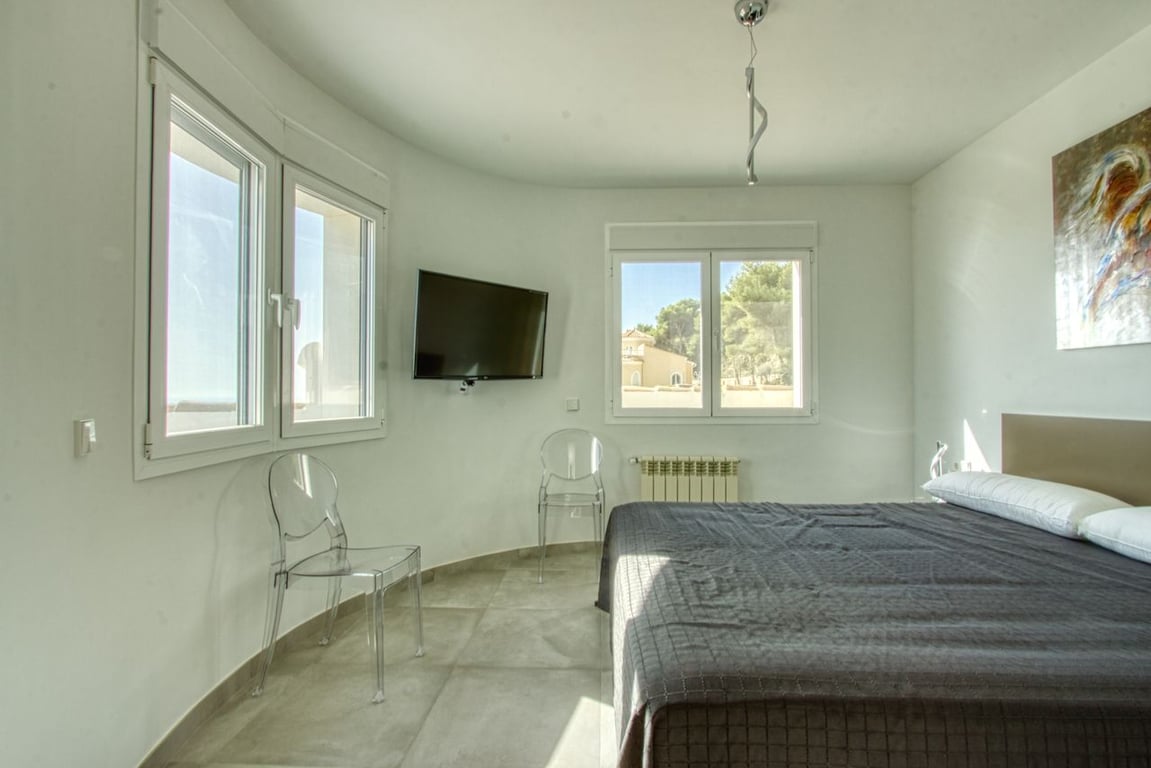 Immaculate South facing luxury 5bed villa located in calpe with endless outstanding sea views.This elegant modern style villa is situated in a quiet and peaceful cul de sac street only 2.5 km from La Fustera Beach in Benissa. Unfolding over 2 floors and basement floor this sophisticated property offers flowing open space of living and dining areas. Upon entering the villa on the main floor you will find a striking fully equipped modern style kitchen spilling into the spacious dining area, along with a seperate laundry/utility room. In the main lounge area you will find an intergrated fireplace complimenting the contempory style of this villa perfect for the winter nights. The lounge also has floor to ceiling sliding double doors opening out onto the magnificent terrace where there is no hiding from the views of the Peñón De Ifach and mediterranean sea.The outside terrace and pristine pool area is truly an abundance of space wrapped in the blue sea views with outside kitchen and relaxing chillout area designed perfectly for outdoor living, dining and entertaining.Off the living area a beautifully appointed staircase leads up to a charming bedroom accompanied with ensuite, dresser and private terrace to admire the amazing mediterrean sea views.On the main floor off the hallway there are 3 double bedrooms 1 of which has a genrous sized ensuite plus sea views, the largest bedroom has its own beautiful private terrace. Along the hallway there is addictional built in wardrobes for extra storage. At the end of the hallway you will find another staircase which leads to a magnificent grand bedroom on the first floor accompanied with  built in wardrobes and a large mordern style ensuite.Within the distinguished gated grounds you also have 2 garages,( 1 on the lower level of the house, the other separate), expansive drive way for several cars and beautiful low maintence landscaped gardens.This immpresive modern mediterrean style villa is designed with pure elegance and sophistication ideal for a luxury family living, viewing is highly recommended