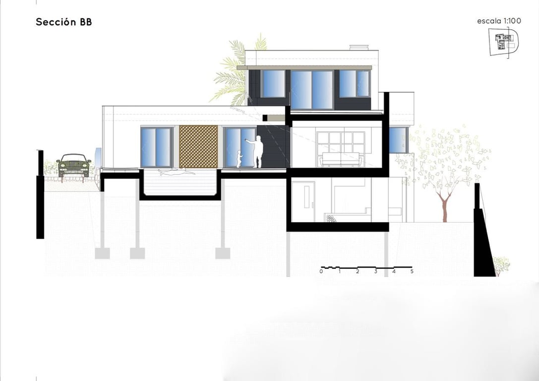 Afgewerkte moderne villa gelegen op een hoekperceel van 817 m² in Moraira, Benimeit.Het pand bestaat uit 2 verdiepingen en twee ondergebouwen, een van 103 m², die zou kunnen worden omgezet in een fitnessruimte, een bioscoop of een speelkamer en een van 200m2 die zou kunnen worden omgezet in een extra volledige woonkamer.De begane grond bestaat uit 2 slaapkamers die een badkamer delen, een open woon / eetkamer met een volledig ingerichte keuken en een gastentoilet.Vanaf deze verdieping heeft u ook toegang tot het zwembad met een ruim zonneterras.Op de eerste verdieping vindt u de hoofdslaapkamer met een eigen badkamer, een inloopkast en toegang tot een privéterras.Extra functies zijn: elektrische poort, voldoende off-road parking, gemakkelijk te onderhouden tuin, natuurstenen muren rondom het perceel en 10.000l waterreservoir.Neem voor meer informatie en plannen contact op met ons kantoor in het centrum van Moraira.