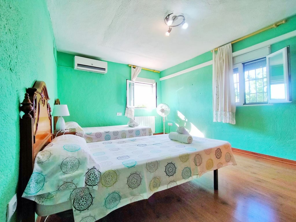 Het huis is verdeeld in 2 verdiepingen, op de begane grond bevindt zich de begane grond van het huis waar het is verdeeld met een woonkamer met open haard en uitgang naar het overdekte terras en een tweepersoonsslaapkamer. Dan hebben we een badkamer met douche, een aparte keuken en de hoofdslaapkamer met kledingkast en badkamer en suite. Het heeft ook een wasruimte.