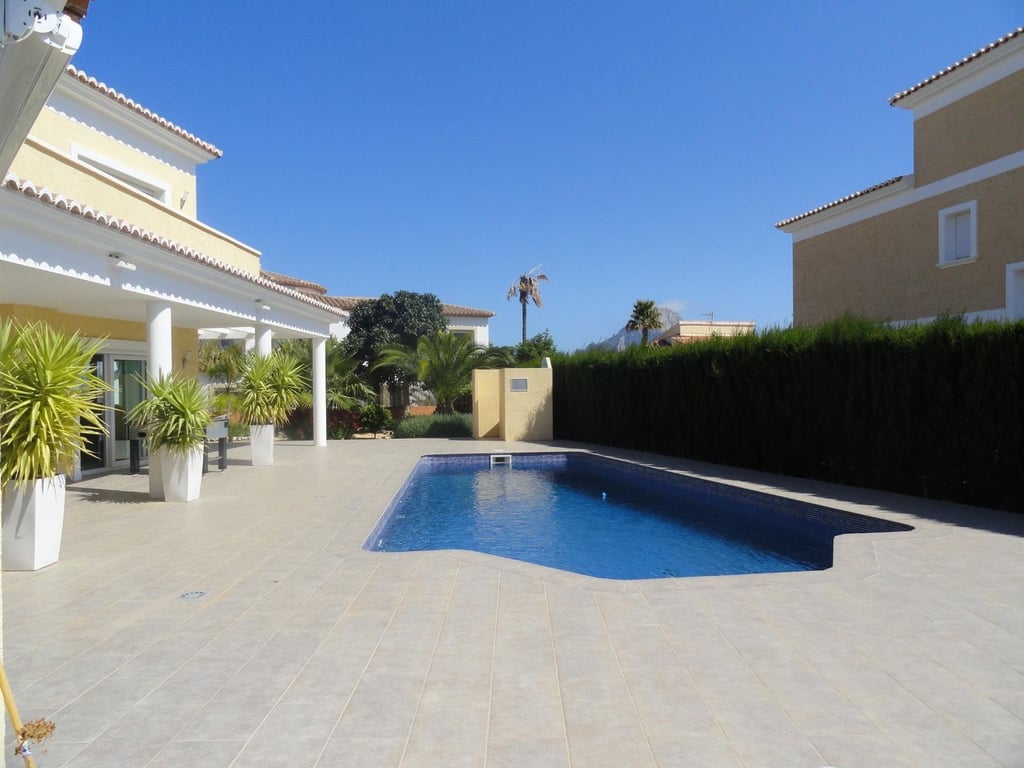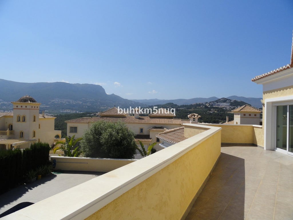 De villa bestaat uit 2 verdiepingen.Het gelijkvloers heeft een ruime woon / eetkamer met open ingerichte keuken, slaapkamer met dressing en badkamer en suite.Van deze vedieping heeft men toegang naar het grote overdekte terras met buitenkeuken met BBQ gedeelte, open terras en zwembad met buitendouche.Op de bovenverdieping zijn 2 slaapkamers met en suite badkamers, dressing en toegang naar een terras met uitzicht op de bergen.Verder heeft de villa een mooi aangelegde tuin, een garage en, parkeerplaats.De ligging van het huis is ideaal voor wie overal dichtbij wil zijn (het historische centrum van Calpe, winkels, restaurants, supermarkten en de stranden van Calpe).