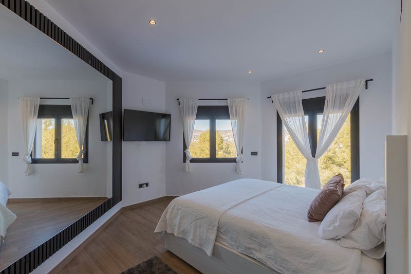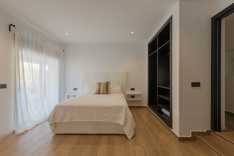 Het hoofdniveau heeft een grote slaapkamer met en-suite badkamer en op de eerste verdieping is er nog een slaapkamer met badkamer en een enorm dakterras voor meer potentieel. Er zijn nog eens 2 slaapkamers en een badkamer op het lagere niveau en beide leiden naar het terras bij het zwembad en het solarium.