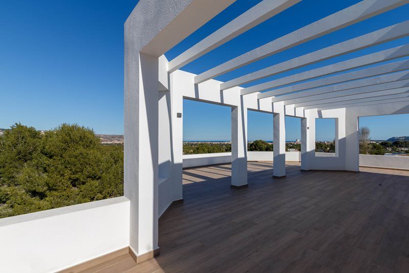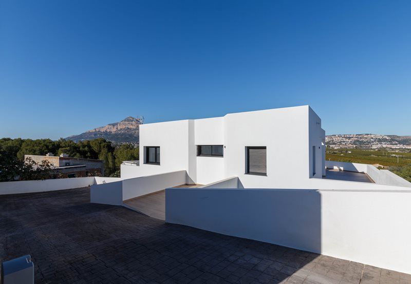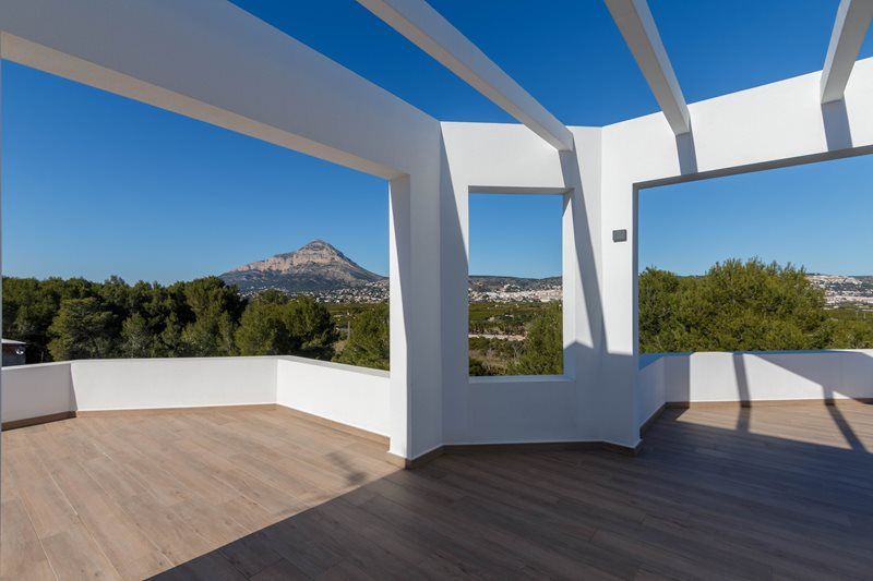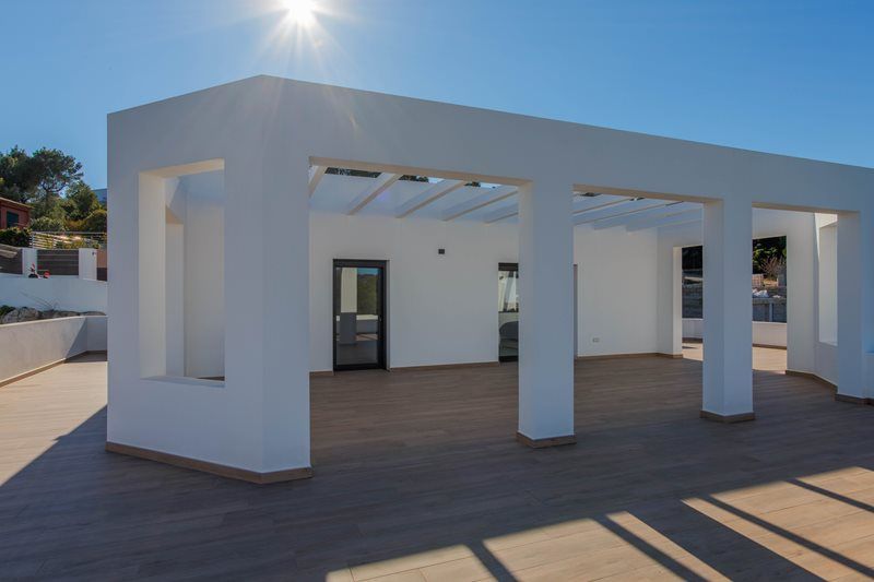 Moderne villa van recente bouw met vrij uitzicht en richting de zee.