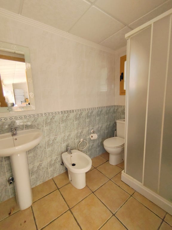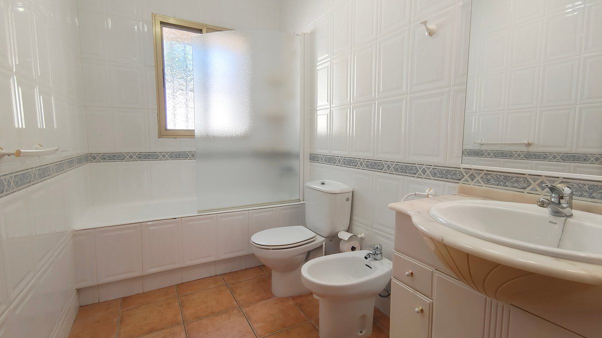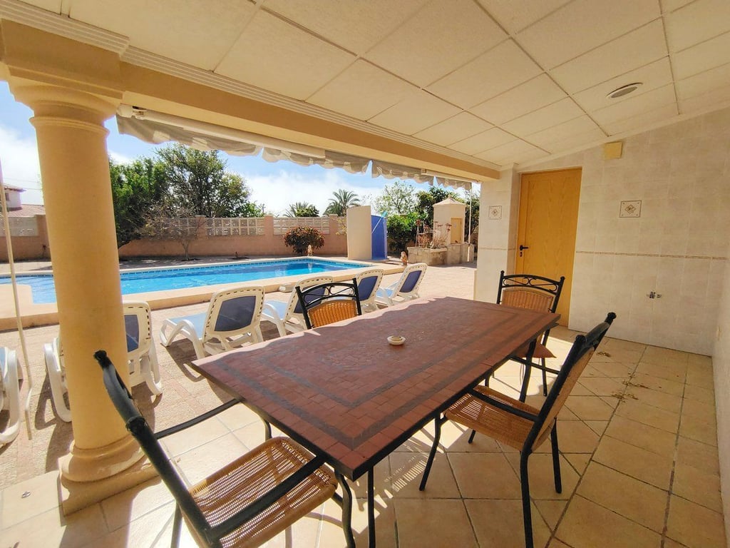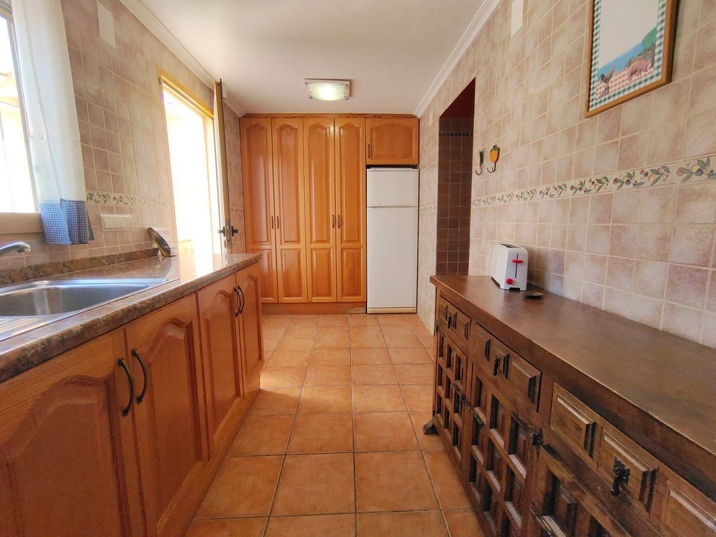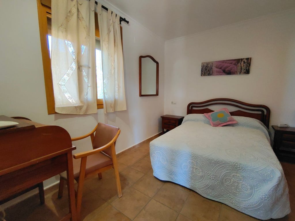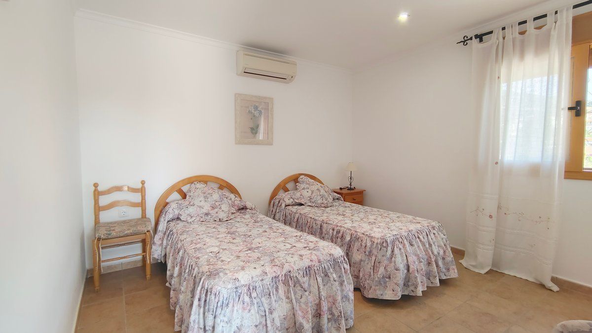 Villa located in a very peaceful urbanization called Canuta de Ifach, just a 5-minute drive from the beautiful crystal clear beaches that Calpe offers us. The house is south-facing and also has spectacular panoramic sea views. It is situated on a large plot of 1,480 m2 and has a constructed area of 290 m2 distributed over two floors as follows: Main floor: 3 bedrooms with built-in wardrobes, 2 complete bathrooms (1 en-suite), independent kitchen, a spacious living/dining room with a fireplace and access to the cozy glazed porch that leads outside. Upper floor: 2 bedrooms with built-in wardrobes, 1 complete bathroom, an auxiliary living room, and a beautiful terrace. Exterior: A large outdoor terrace where we find a rectangular 8x4 meter pool, a summer kitchen and a barbecue area, and 1 complete bathroom. In addition, there is a large garage and a storage room. As extras: it has air conditioning, a low maintenance garden with automatic irrigation, and a large parking area. In this villa, you will find tranquility, beautiful views of Calpe, and more. It has been renovated and is currently in perfect condition.