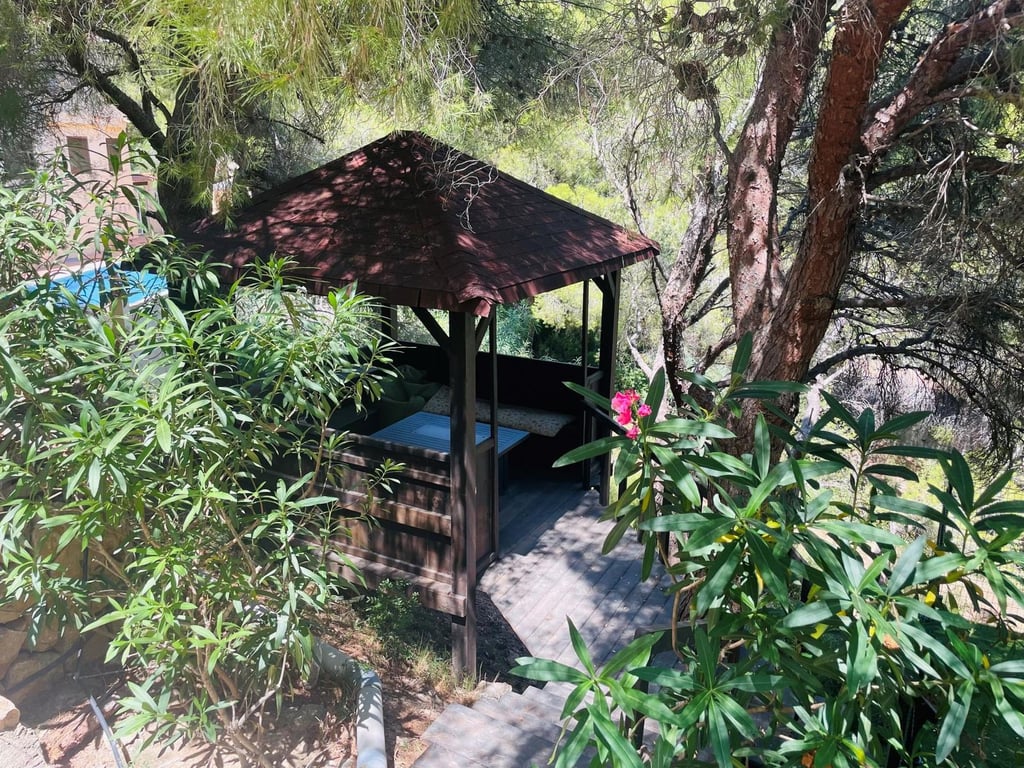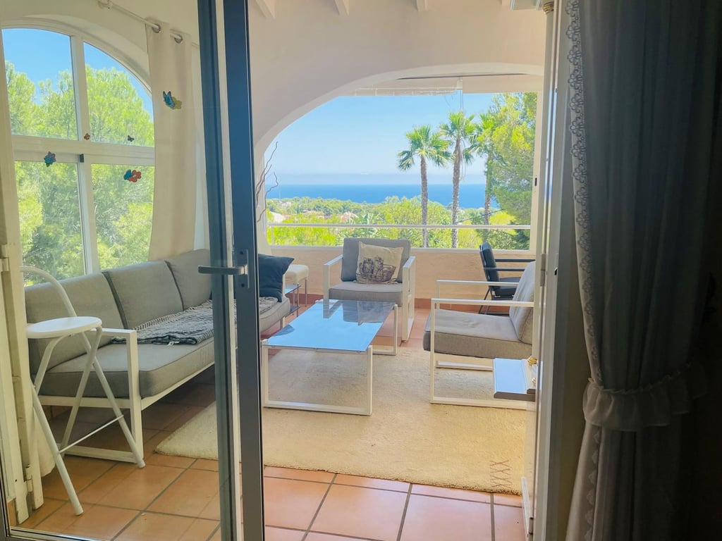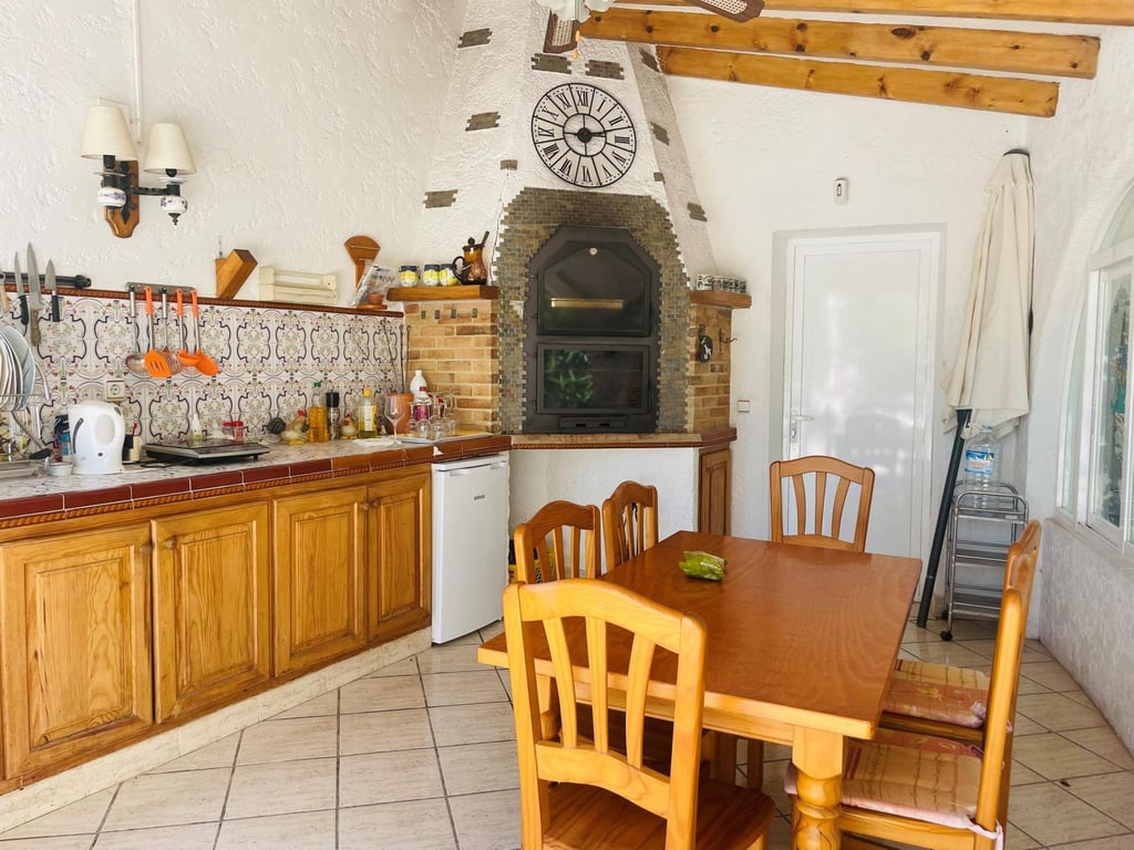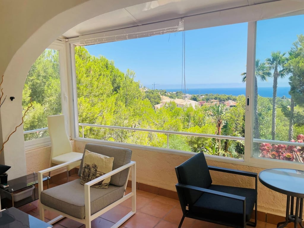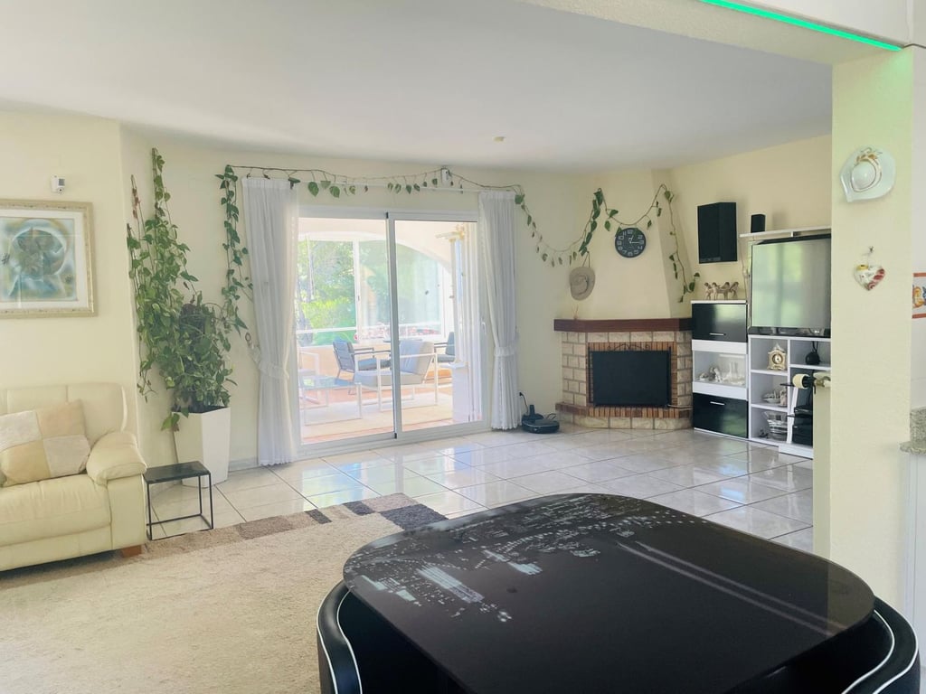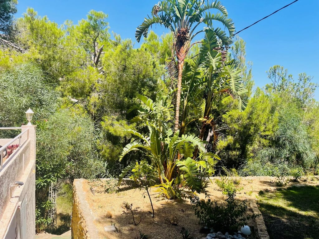 Mooie villa in Altea la Vella met uitzicht op de zee en de bergen.. Prachtige villa in Altea la Vella met uitzicht op zee en de bergen en in een exclusieve wijk rond de golfbaan van Don Cayo, Altea. Villa met een totaal bebouwd oppervlak van 200 m2 en is gelegen op een spectaculaire locatie op een perceel van 1800 m2 en zeer dicht bij de golfbaan en het mooie dorp Altea la Vella. De villa heeft verschillende niveaus met een klassieke stijl en is gelegen in een zeer rustige wijk van de Sierra de Altea. Het huis heeft twee hoofdingangen, vanaf de tweede en de eerste verdieping. Op de begane grond is er een grote woon-eetkamer met open haard met een ingerichte keuken, een gastentoilet, toegang tot een beglaasd terras en een ruime slaapkamer met badkamer en suite en ook met toegang tot een onoverdekt en zeer zonnig terras met uitzicht op zee. Een buitentrap leidt naar de benedenverdiepingen en naar het dakterras met een groot solarium.  Via de interne trap van het huis naar de eerste verdieping is er nog een grote woonkamer met een bar, drie slaapkamers, een aparte badkamer en een bijkeuken met wasmachine. Op de begane grond bevindt zich een ruime gastensuite, een zomerkeuken en een wellnessruimte met jacuzzi, sauna, douche en toilet.  In de tuinen van de villa bevindt zich een gezellige houten gazebo met een centrale open haard en omgeven door de natuur; ernaast is er een kleine ruimte die gebruikt kan worden als speelplaats of als extra terras. Het is een heel gezellige en zeer besloten plek. Het zout-chloor zwembad is omgeven door een tuin met palmbomen en mediterrane dennen met automatische irrigatie. De villa heeft ook een garage en meerdere parkeerplaatsen.  Op een steenworp afstand van de golfbaan Cayo Altea, 3 km van het strand, 2 km van Altea la Vella, en 65 km van de luchthaven van Alicante.