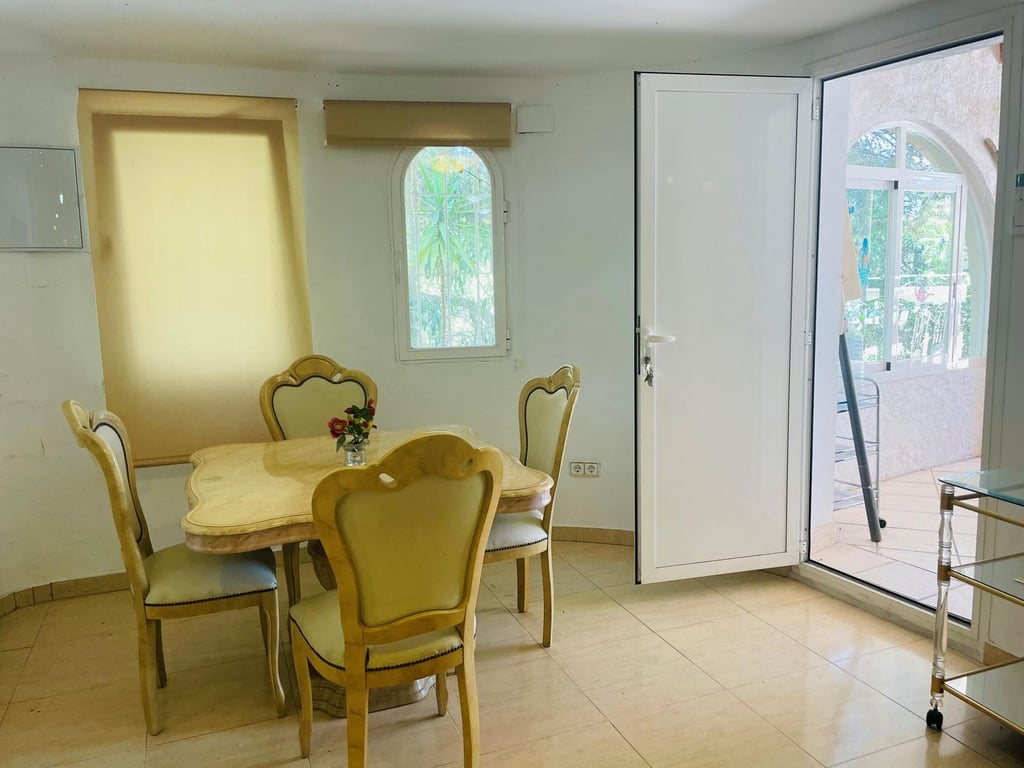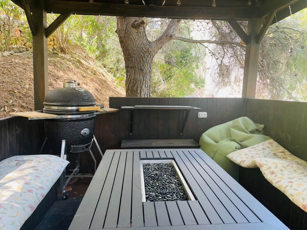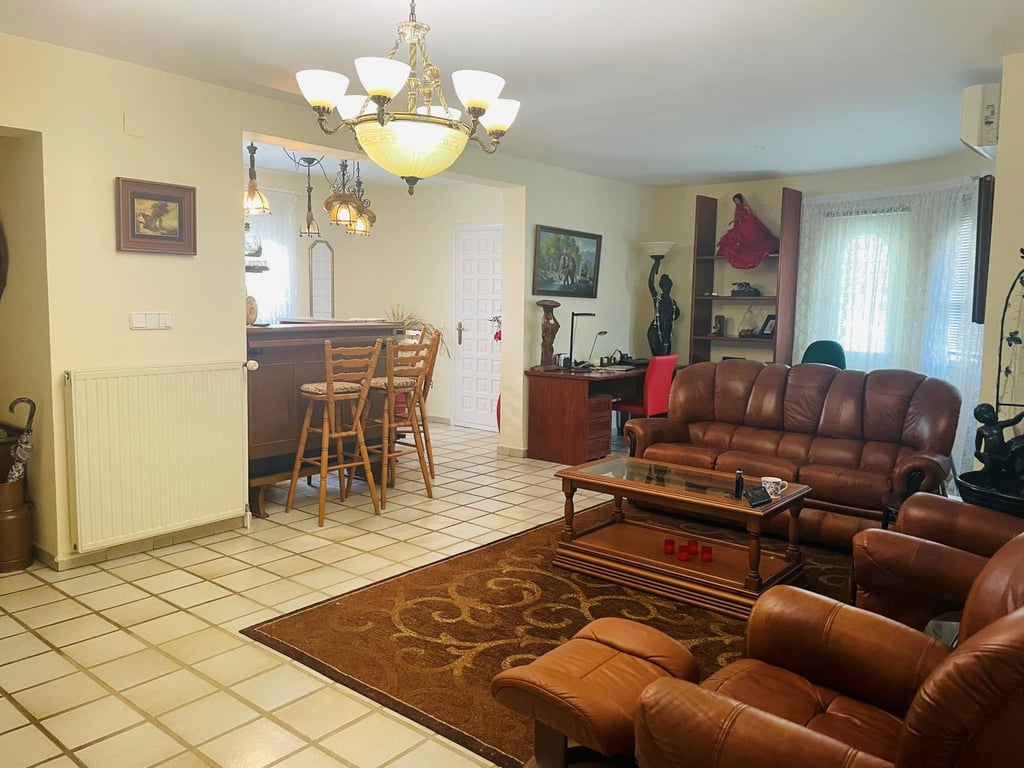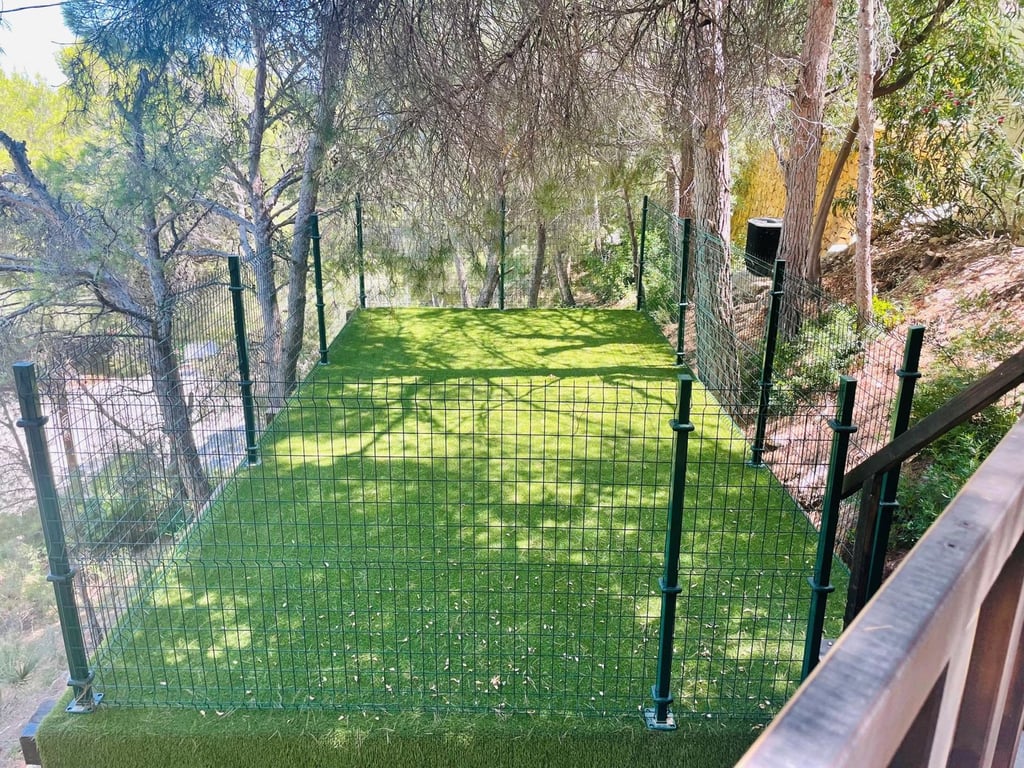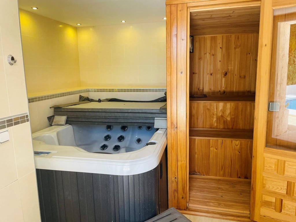 Mooie villa in Altea la Vella met uitzicht op de zee en de bergen.. Prachtige villa in Altea la Vella met uitzicht op zee en de bergen en in een exclusieve wijk rond de golfbaan van Don Cayo, Altea. Villa met een totaal bebouwd oppervlak van 200 m2 en is gelegen op een spectaculaire locatie op een perceel van 1800 m2 en zeer dicht bij de golfbaan en het mooie dorp Altea la Vella. De villa heeft verschillende niveaus met een klassieke stijl en is gelegen in een zeer rustige wijk van de Sierra de Altea. Het huis heeft twee hoofdingangen, vanaf de tweede en de eerste verdieping. Op de begane grond is er een grote woon-eetkamer met open haard met een ingerichte keuken, een gastentoilet, toegang tot een beglaasd terras en een ruime slaapkamer met badkamer en suite en ook met toegang tot een onoverdekt en zeer zonnig terras met uitzicht op zee. Een buitentrap leidt naar de benedenverdiepingen en naar het dakterras met een groot solarium.  Via de interne trap van het huis naar de eerste verdieping is er nog een grote woonkamer met een bar, drie slaapkamers, een aparte badkamer en een bijkeuken met wasmachine. Op de begane grond bevindt zich een ruime gastensuite, een zomerkeuken en een wellnessruimte met jacuzzi, sauna, douche en toilet.  In de tuinen van de villa bevindt zich een gezellige houten gazebo met een centrale open haard en omgeven door de natuur; ernaast is er een kleine ruimte die gebruikt kan worden als speelplaats of als extra terras. Het is een heel gezellige en zeer besloten plek. Het zout-chloor zwembad is omgeven door een tuin met palmbomen en mediterrane dennen met automatische irrigatie. De villa heeft ook een garage en meerdere parkeerplaatsen.  Op een steenworp afstand van de golfbaan Cayo Altea, 3 km van het strand, 2 km van Altea la Vella, en 65 km van de luchthaven van Alicante.