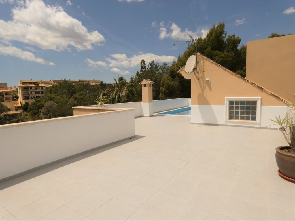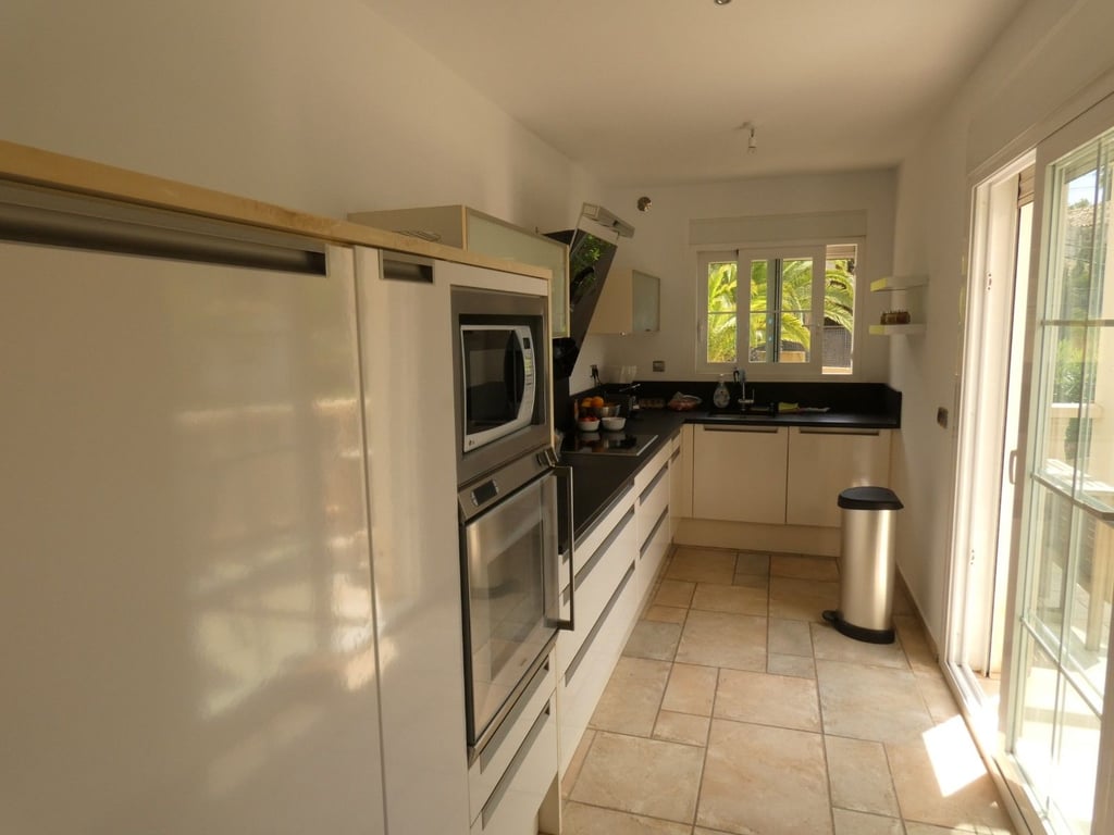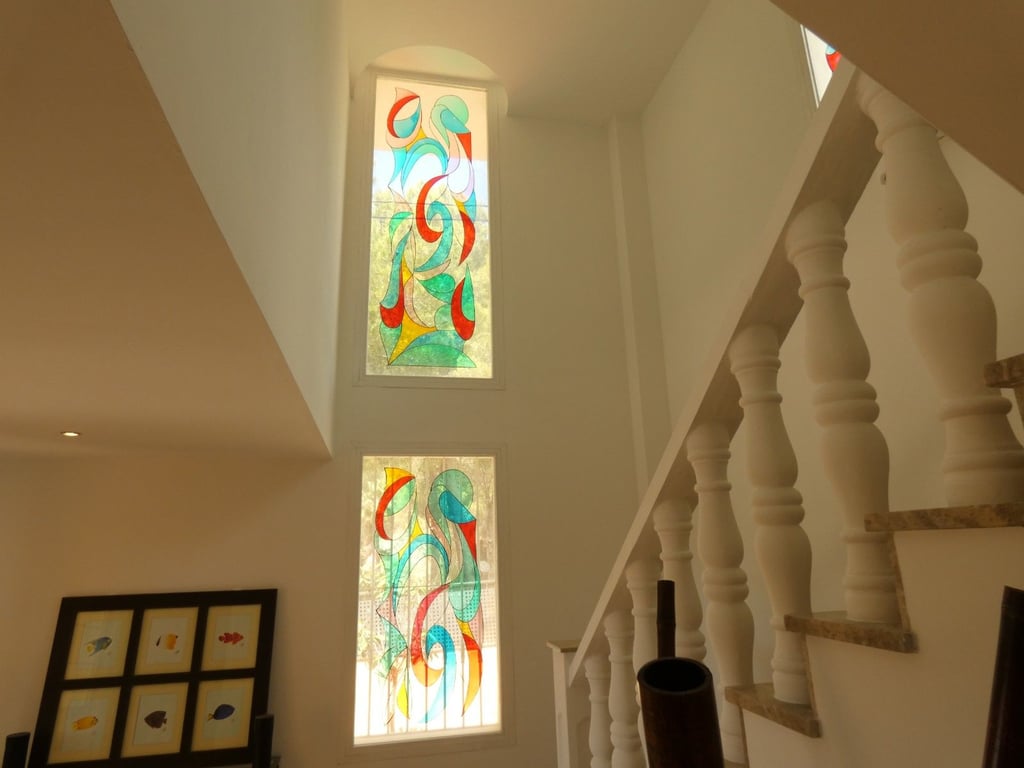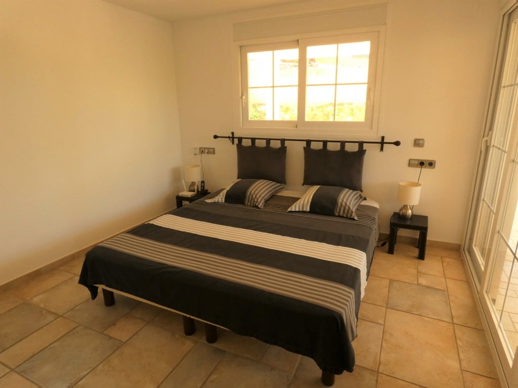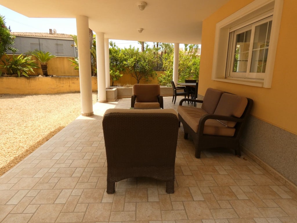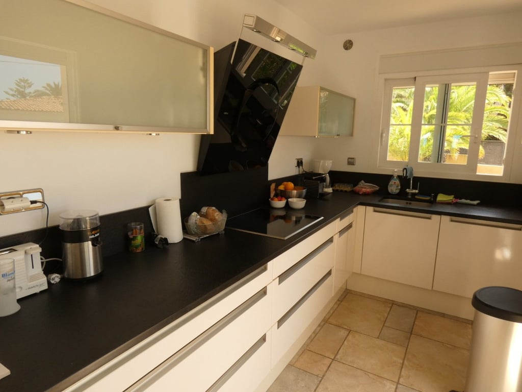 Deze villa van 216 m2 is gebouwd op een perceel van 900 m2. Deze villa heeft een verrassende indeling en er is een lift vanuit de garage naar het dakterras.De entree bevindt zich op de eerste verdieping. Hier vindt u een woonkamer, 2 slaapkamers met een gedeelde badkamer en een zeer ruim overdekt buitenterras, grenzend aan de tuin. Deze ruimte kan met kleine aanpassingen worden verbouwd tot gastenverblijf. Vanuit de hal is er een trap naar de 2e verdieping, waar zich de eigenlijke woonkamer bevindt, met open keuken, hoofdslaapkamer met badkamer en een balkonterras. Er is ook een apart gastentoilet.In de hal en de woonkamer zijn dikke ramen met uitzicht op het zwembad onder water. Dit geeft een speels en kleurrijk effect in de woonkamer door de schittering van de zon of de lichten van het zwembad. Het dakterras is een ruim sollarium, waar zich het zwembad bevindt en een aparte hoek met aansluitmogelijkheden voor een jaccuzi.Op de begane grond bevindt zich een zeer ruime garage onder het gehele huisgedeelte. Er is ruimte voor 4 tot 5 auto's. Deze villa ligt op loopafstand van het strand van Altea, met enkele leuke bars en restaurants in de buurt, slechts 2 km van het centrum van Altea en 68 km van de luchthaven van Alicante.