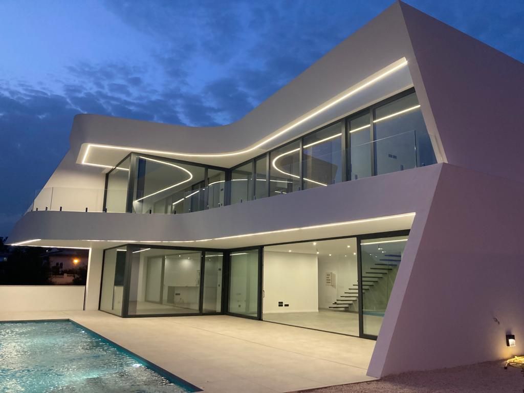 Deze moderne villa is gelegen in een bevoorrechte omgeving van Calpe, op slechts 15 minuten lopen van het prachtige witte zandstrand Poniente Arenal Bol en alle voorzieningen. Het pand ligt op een hoekperceel van 920m2 en heeft 303m2 verdeeld over 2 verdiepingen. Deze fantastische woning valt op door zijn uitstekende kwaliteiten en afwerkingen en zijn functionele ontwerp.