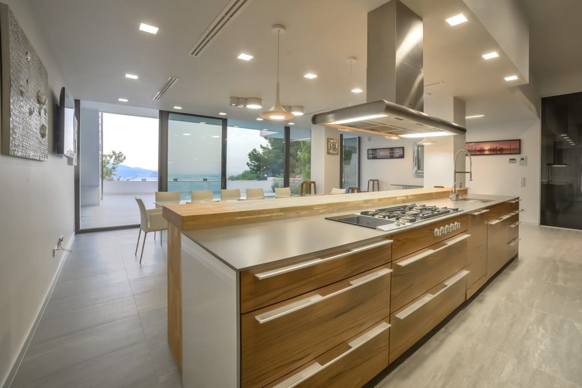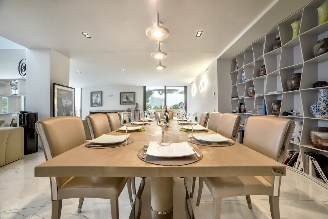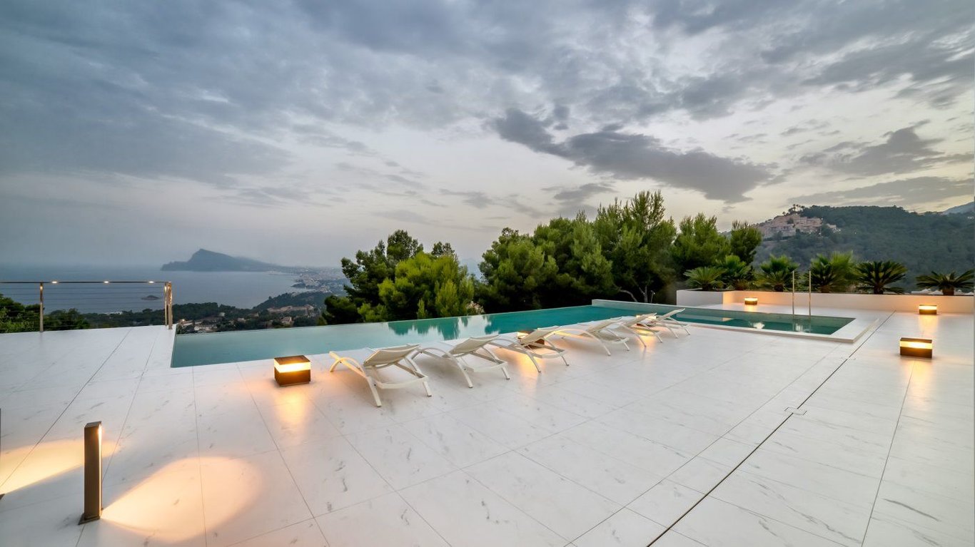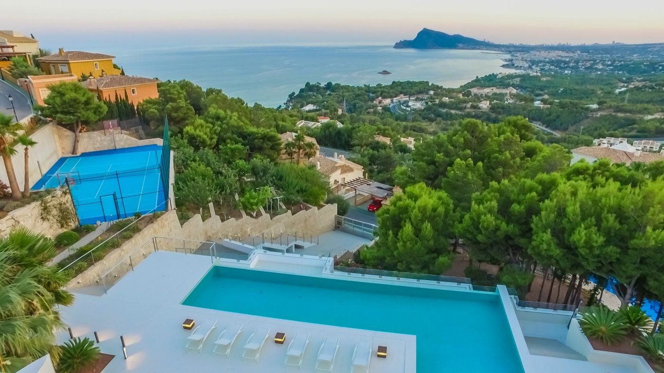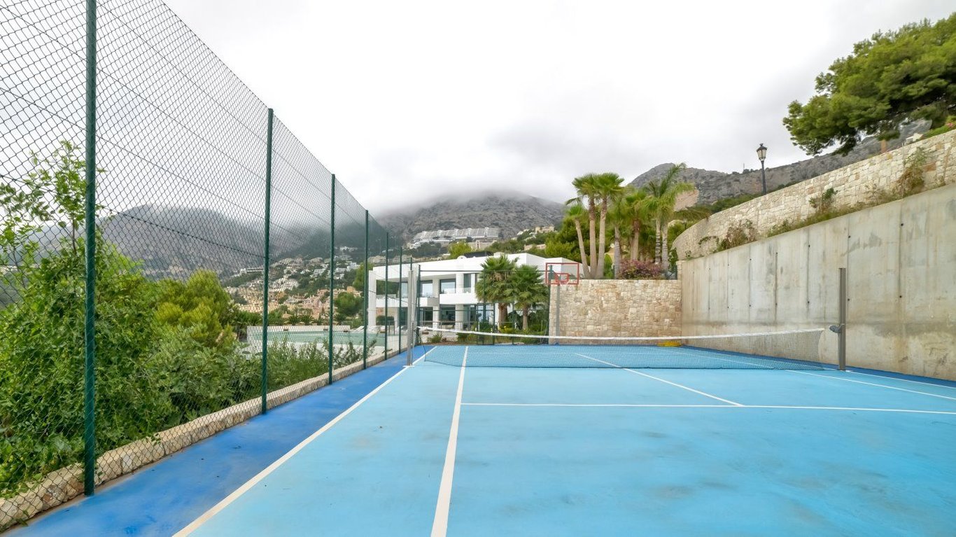 Spectaculaire luxe villa te koop in Altea Hills. Deze prachtige villa heeft een spectaculair panoramisch uitzicht op de zee en de zon de hele dag (zuidelijke oriëntatie). Het is gelegen in een prive urbanisatie met beperkte toegang (zeer rustige omgeving), 3,5 Km van de zee (Marina Greenwich Yacht Club), dicht bij het stedelijk centrum van Altea. Het is gelegen op drie bouwpercelen van in totaal 3.080 m2 en heeft een totaal bebouwd oppervlak van 1.800 m2 verdeeld over verschillende verdiepingen (met lift), als volgt: op de hoofdverdieping hebben we 1 gastentoilet, een kleedkamer van 15 m2, zeer grote open woonkamer keuken van 200 m2 (met open haard) die toegang geeft tot het prachtige buitenterras van 250 m2 waar we een ongelooflijk zwembad van 120 m2 hebben met zelfreinigend en zout systeem en een tennisbaan. Op de begane grond hebben we 3 onafhankelijke ruimtes, de eerste ruimte heeft een grote eetkamer keuken van 60 m2, overdekt zwembad van 36 m2, jacuzzi, fitnessruimte van 25 m2, schoonheidssalon met kapper inbegrepen van 20 m2, finse sauna voor 6 personen, turkse sauna voor 6 personen, dubbele douche, 1 gastentoilet en een wijnkelder. Het tweede gebied is een appartement voor de dienst die bestaat uit een open woonkamer keuken, 1 slaapkamer, 1 badkamer en een wasruimte. Het derde gebied is het gastenverblijf dat 3 grote slaapkamers heeft (25 m2 + 25 m2 + 35 m2), 3 en suite badkamers, 70 m2 speelkamer, 40 m2 bioscoop (volledig geluiddicht), 30 m2 kantoor, 50 m2 facilitaire ruimte en 1 gastentoilet. In de kelder hebben we de garage van 75 m2 voor 3 voertuigen. Op de bovenverdieping hebben we 3 grote slaapkamers (30 m2 + 25 m2 + 30 m2), 3 grote badkamers en suite (25 m2 + 12 m2 +12 m2), 1 kleedkamer van 10 m2 en 2 privé terrassen (10 m2 + 15 m2). Deze luxe villa is gebouwd in 2016 en is in perfecte staat. Het is voorzien van alle luxe die u zich kunt voorstellen, fendi meubels inbegrepen, hoge kwaliteit timmerwerk, ducted airconditioning, vloerverwarming, lift, alarm met beveiligingscamera's, high end tegels, volledig uitgeruste design keuken (Gaggenau), Volledig ingerichte design badkamers, zonnepanelen, LED verlichting, enz. De tuin is zeer mooi en omringt het huis met fruitbomen en tropische bomen, bovendien is het onderhoudsarm (automatische irrigatie). Het heeft ook grote buitenruimtes voor veel voertuigen. Zonder twijfel één van de meest luxueuze villa's aan de Costa Blanca.