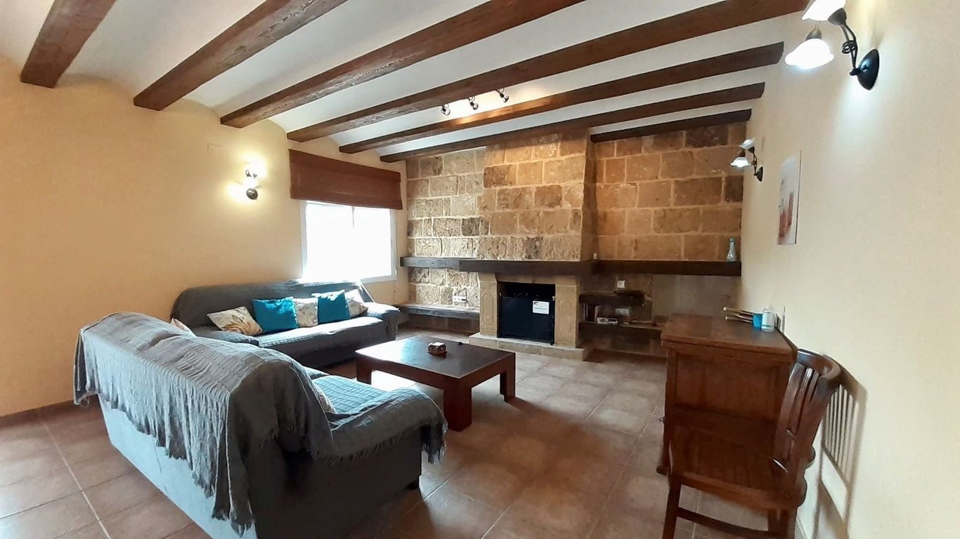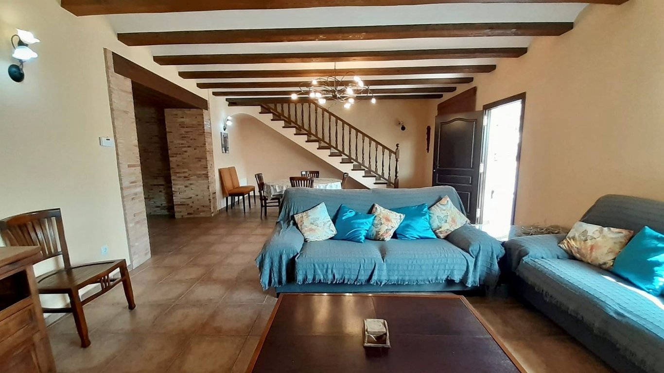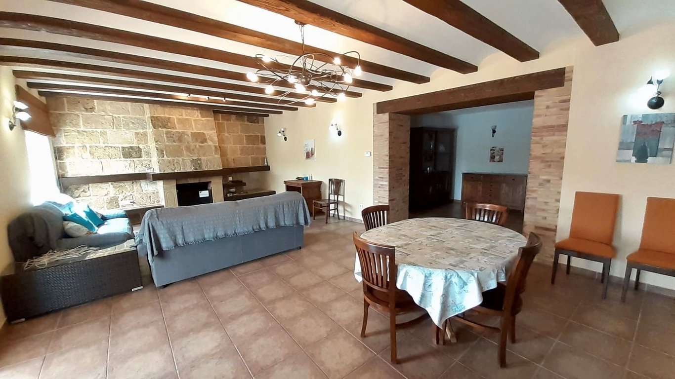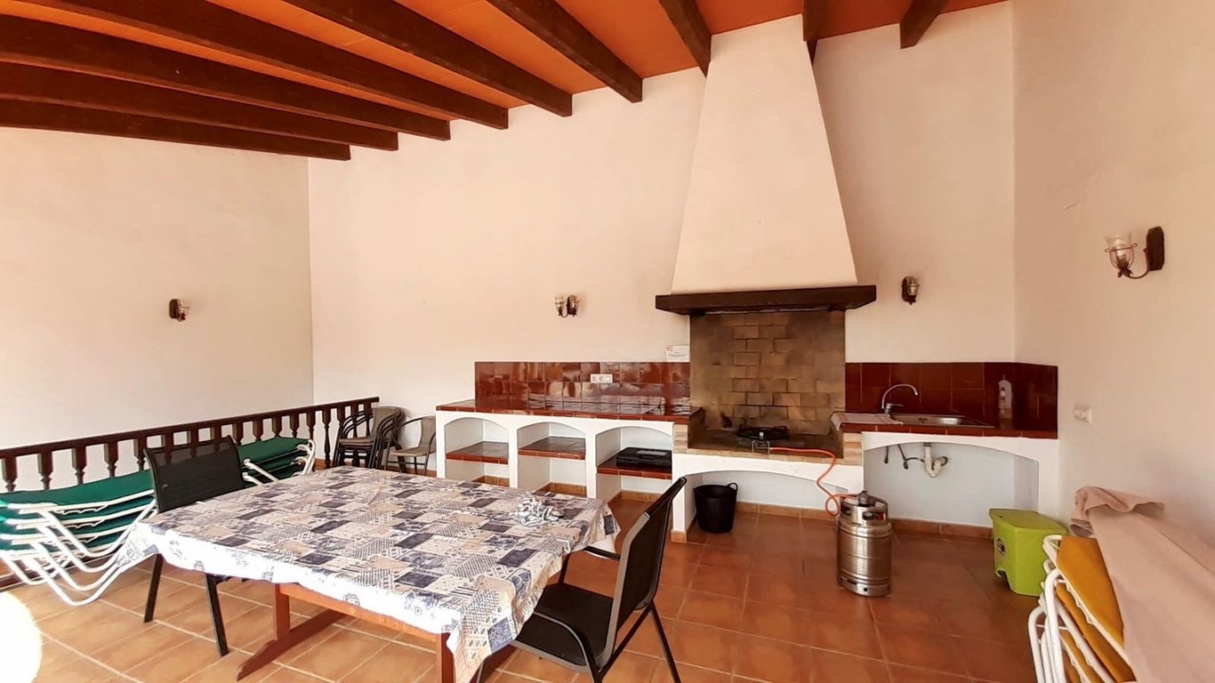 REDUCED 100.000€! This beautiful villa has recently been renovated inside keeping the traditional Spanish rustic style decorated with ceiling wooden beams, a very pretty fire place on a tosca stone wall, rustic style floor tiles and wooden stair railing.  The property is located in a quiet area 15 minutes walk from the Old Town where we can find all the necessary amenities such as bars, restaurants, shops, supermarkets, pharmacies, post office and the Town Hall.  The villa counts with a traditional riu rau with tosca arches at the entrance and as we walk inside we see the spacious, cosy and bright living-dining room. As walk further inside we find a double bedroom on the left hand side and the spacious kitchen on the right in the corridor, which counts with plenty of storage and a dining table, after there is a toilet with a shower. Further in the corridor we find the large master en-suite bedroom, and after the separated laundry room at the end of the corridor. On the upper floor we find 3 double bedrooms, a large bathroom and a spacious storage room that could be turned into an office or a separated living room. The villa counts with a sheltered BBQ area that counts with TV cable sockets besides the swimming pool, where we find also stairs going to down the underbuilt which can be used as a wine cellar or storage room. The property counts with a closed garage for one car which currently is being used as a separated living area also. The villa is equipped with split hot/cold air conditioning, central heating and underfloor heating in the living-dining room. This villa counts also with a current tourist license.