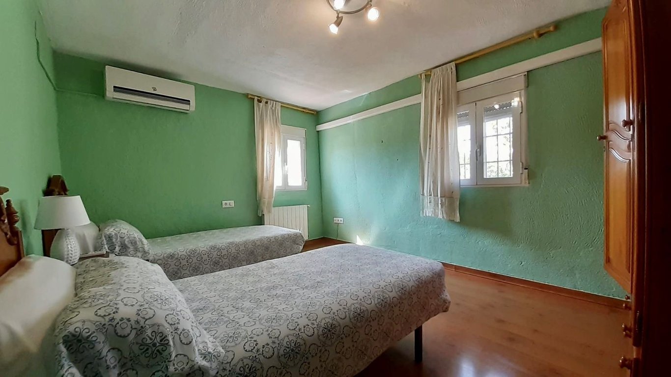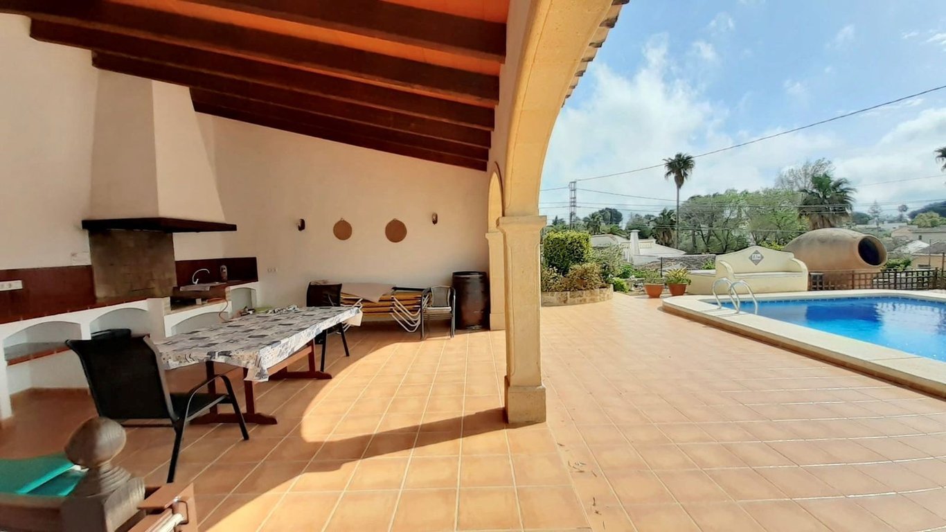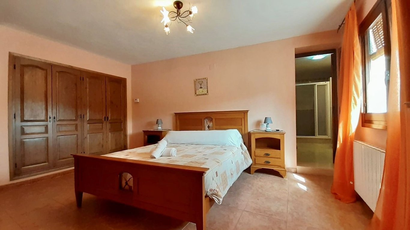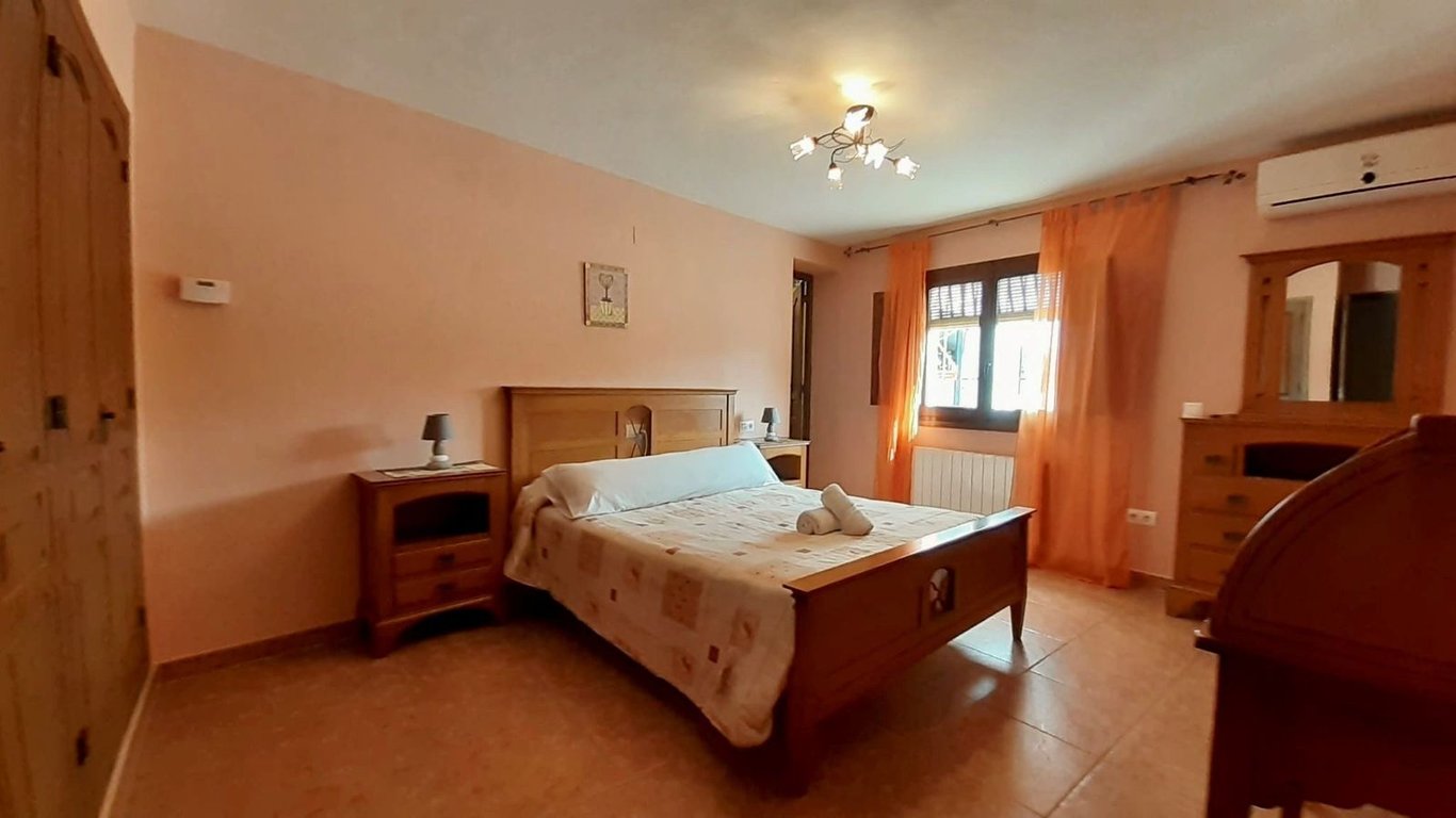 REDUCED 100.000€! This beautiful villa has recently been renovated inside keeping the traditional Spanish rustic style decorated with ceiling wooden beams, a very pretty fire place on a tosca stone wall, rustic style floor tiles and wooden stair railing.  The property is located in a quiet area 15 minutes walk from the Old Town where we can find all the necessary amenities such as bars, restaurants, shops, supermarkets, pharmacies, post office and the Town Hall.  The villa counts with a traditional riu rau with tosca arches at the entrance and as we walk inside we see the spacious, cosy and bright living-dining room. As walk further inside we find a double bedroom on the left hand side and the spacious kitchen on the right in the corridor, which counts with plenty of storage and a dining table, after there is a toilet with a shower. Further in the corridor we find the large master en-suite bedroom, and after the separated laundry room at the end of the corridor. On the upper floor we find 3 double bedrooms, a large bathroom and a spacious storage room that could be turned into an office or a separated living room. The villa counts with a sheltered BBQ area that counts with TV cable sockets besides the swimming pool, where we find also stairs going to down the underbuilt which can be used as a wine cellar or storage room. The property counts with a closed garage for one car which currently is being used as a separated living area also. The villa is equipped with split hot/cold air conditioning, central heating and underfloor heating in the living-dining room. This villa counts also with a current tourist license.
