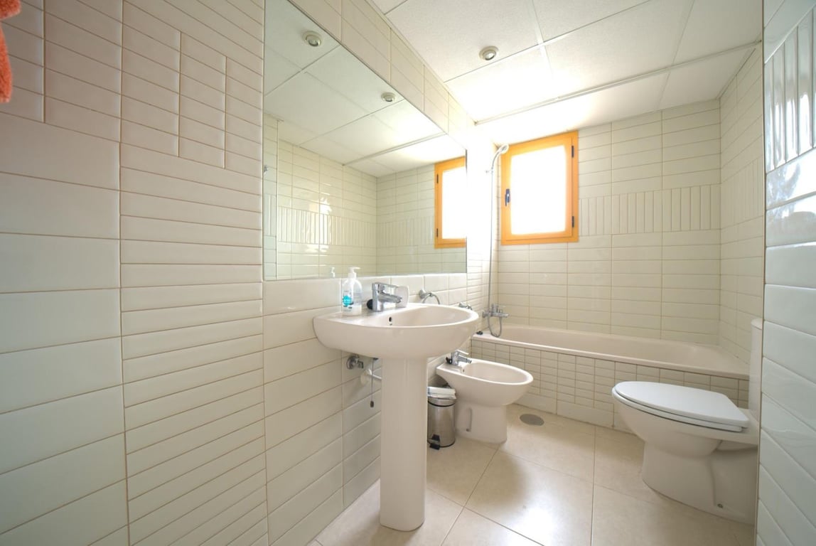 Just 200 meters from the Levante beach in Calpe, visible from the apartments. Two-bedroom apartments with a full kitchen area, two bathrooms - one en suite and another with a bathtub. Two terraces overlooking the sea and mountains. The living room is very bright.Amongst its amenities are air conditioning and television. Additionally, these apartments include two swimming pools for adults and one for children on their premises, reception service (during high season).