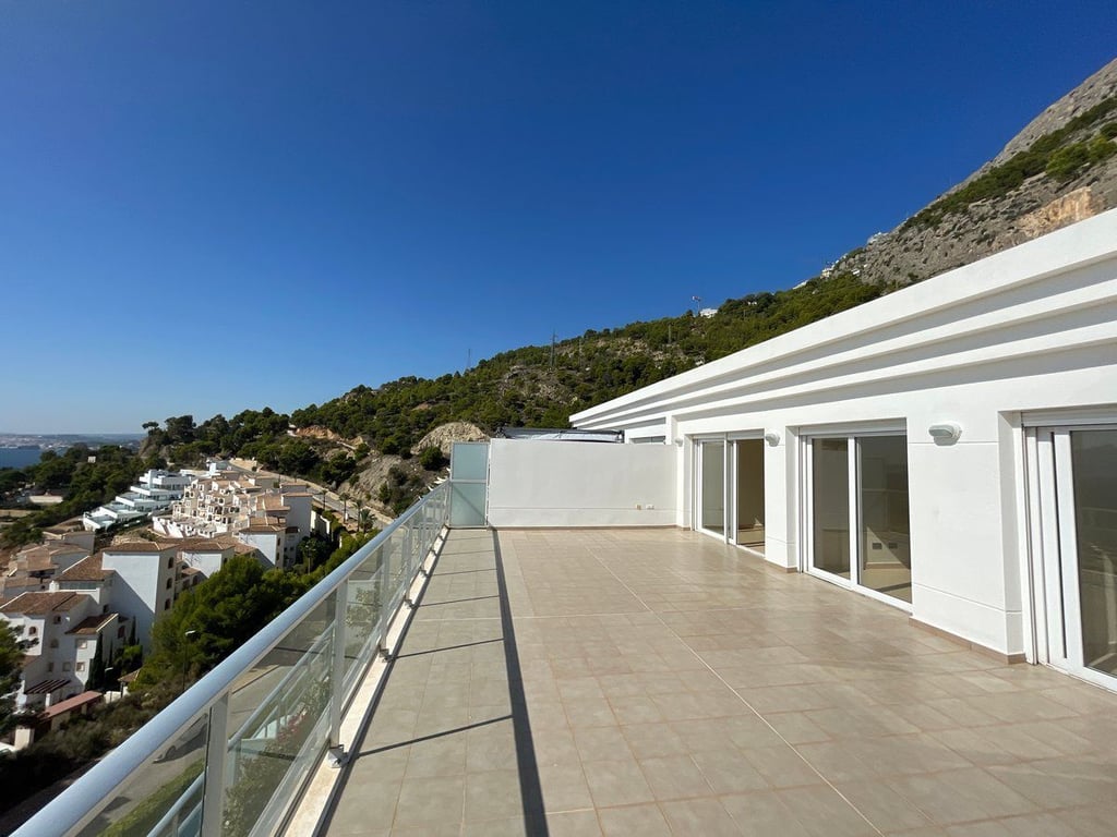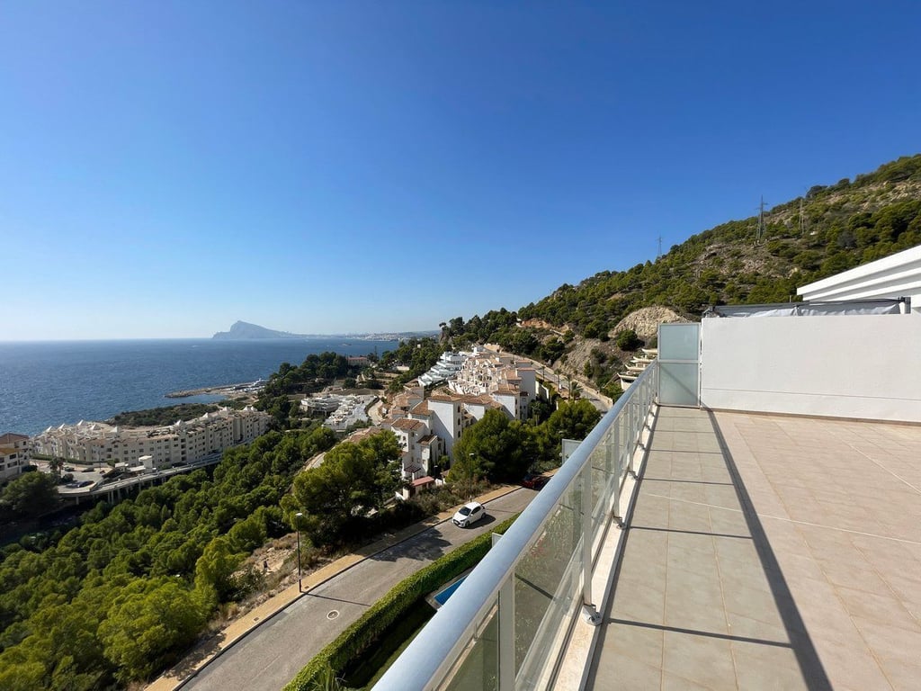 This spectacular apartment in Altea (Mascarat) offers a dream coastal living experience with breathtaking sea views. With a built area of 132 square meters, of which 63 square meters belong to the living space, this place is a gem in the Mediterranean paradise. The remaining 57 square meters are distributed on a spacious covered terrace.