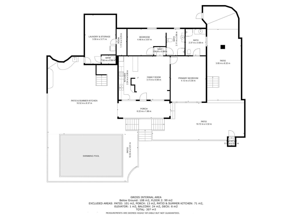 The villa is entered via a gated double garage at street level and the accommodation can be accessed either via a stairwell, or the fully licensed elevator, to level one.