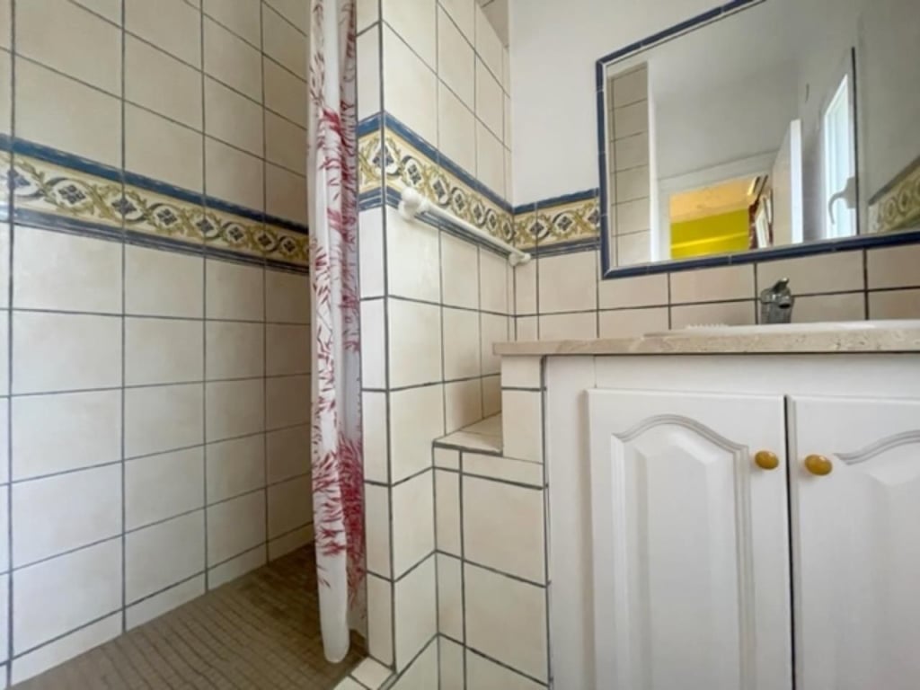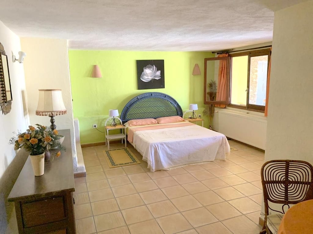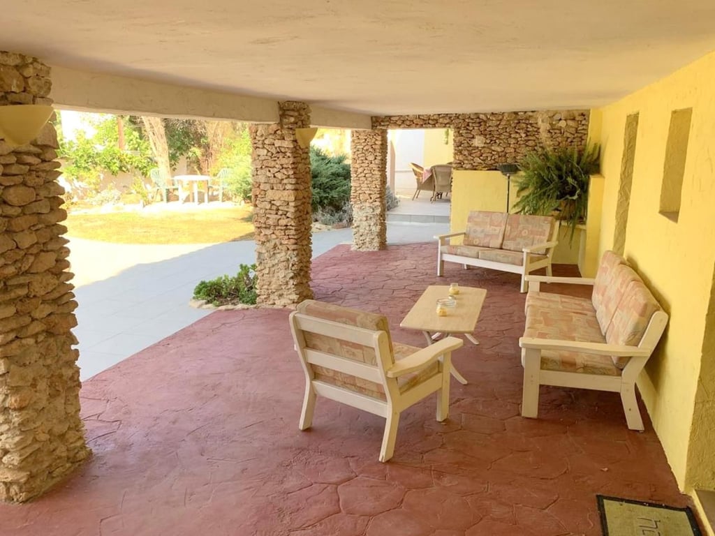 Also from the middle floor we find an internal staircase leading down to lower floor where we find a large 25m² bedroom/living area with doors leading out to a large open Naya overlooking the pool and garden. In addition we also find a bathroom and laundry room on this floor. Heating is provided by central heating radiators.