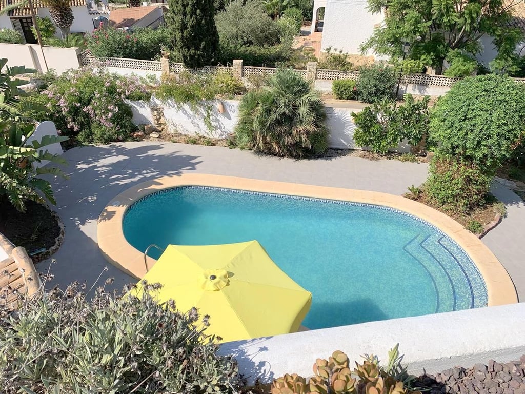 The property is located on a quiet and established road and is only a 3 minute walk to Moraira town centre and all amenities.