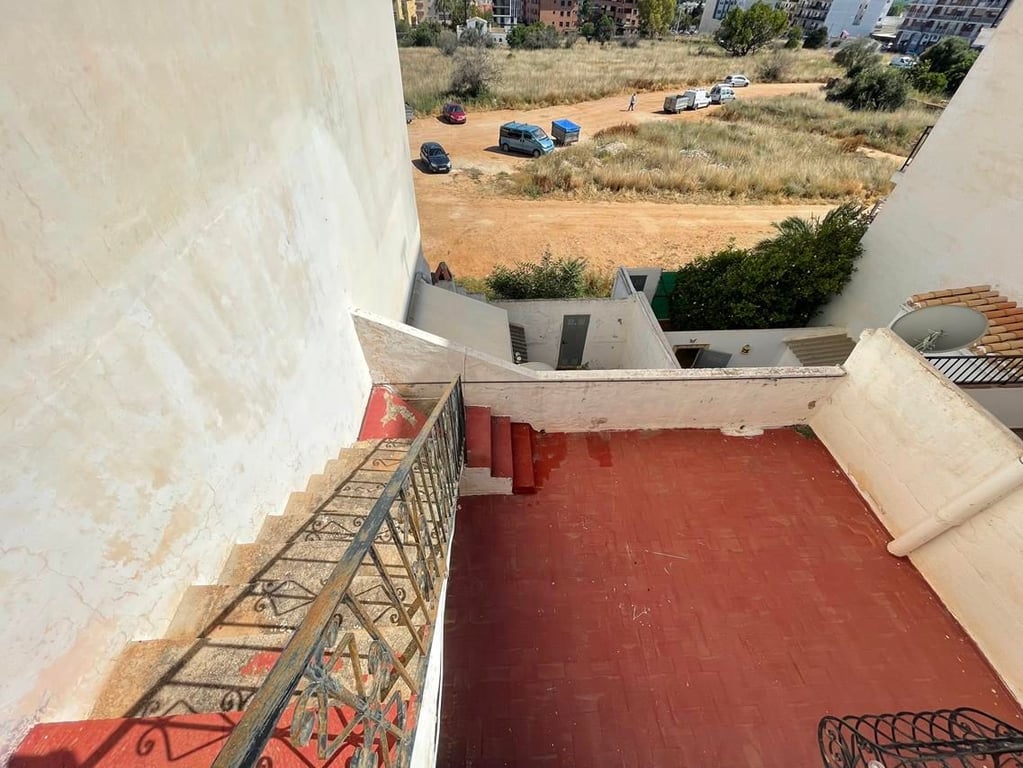 Townhouse just one km from the port of Javea. The house benefits from a large front patio, and upon entering the property there is a spacious entrance hall, 1 bedroom, a large living room, kitchen, dining room, 1 bathroom, and a door leading to the stairs leading down to an interior patio with a storage room and barbecue, with access to the rear street. Upstairs there are 2 bedrooms, 1 toilet and a terrace on the same floor with stairs leading to a second terrace, with open views. The house is very well located, within walking distance to the beach, shops, supermarkets, restaurants, schools, etc. IBI: 195,00 €. Viewing is recommended to see the property's full potential.