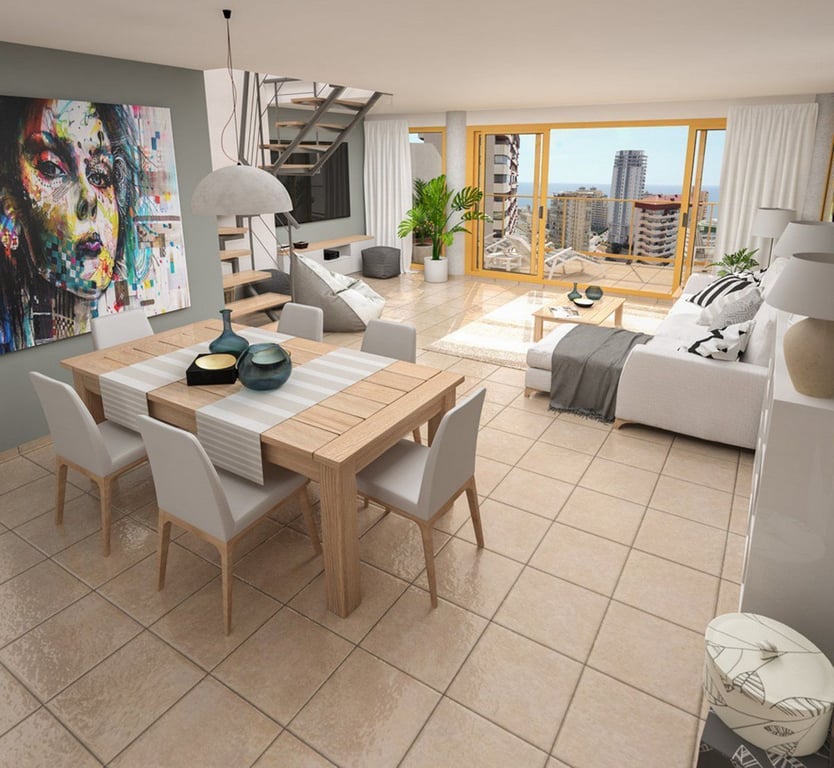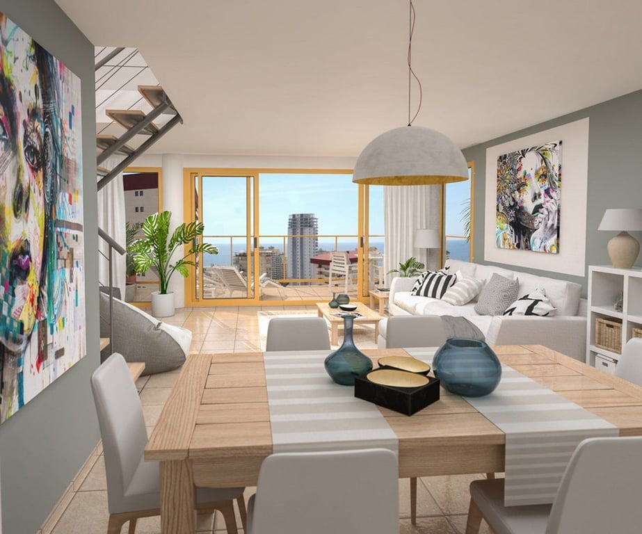 There is a spacious and comfortable dining room, making this penthouse a great opportunity. From the living room you have direct access to an open terrace, which gives you unbeatable views over the beach and the Rock of Ifach, Calpe's most emblematic natural park. You can also enjoy the views over the mountains surrounding Calpe.