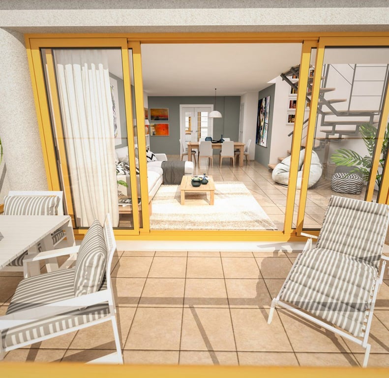 The second floor consists of a wide living-room furnished, a bathroom and a fully-equipped kitchen. In addition, there is also a covered terrace and a pergola. Its swimming pools and parking spaces (price to consult) are some of the facilities you will find in the building's communal areas.