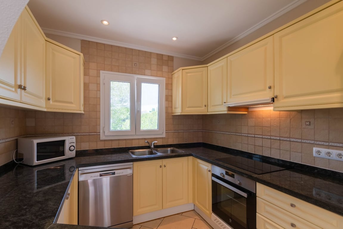 De woning bestaat uit: 3 slaapkamers (1 in elke vleugel en de derde op de bovenverdieping), 3 badkamers (waarvan 2 ensuite), open keuken en woon-eetkamer die leidt naar het terras en het zwembad.