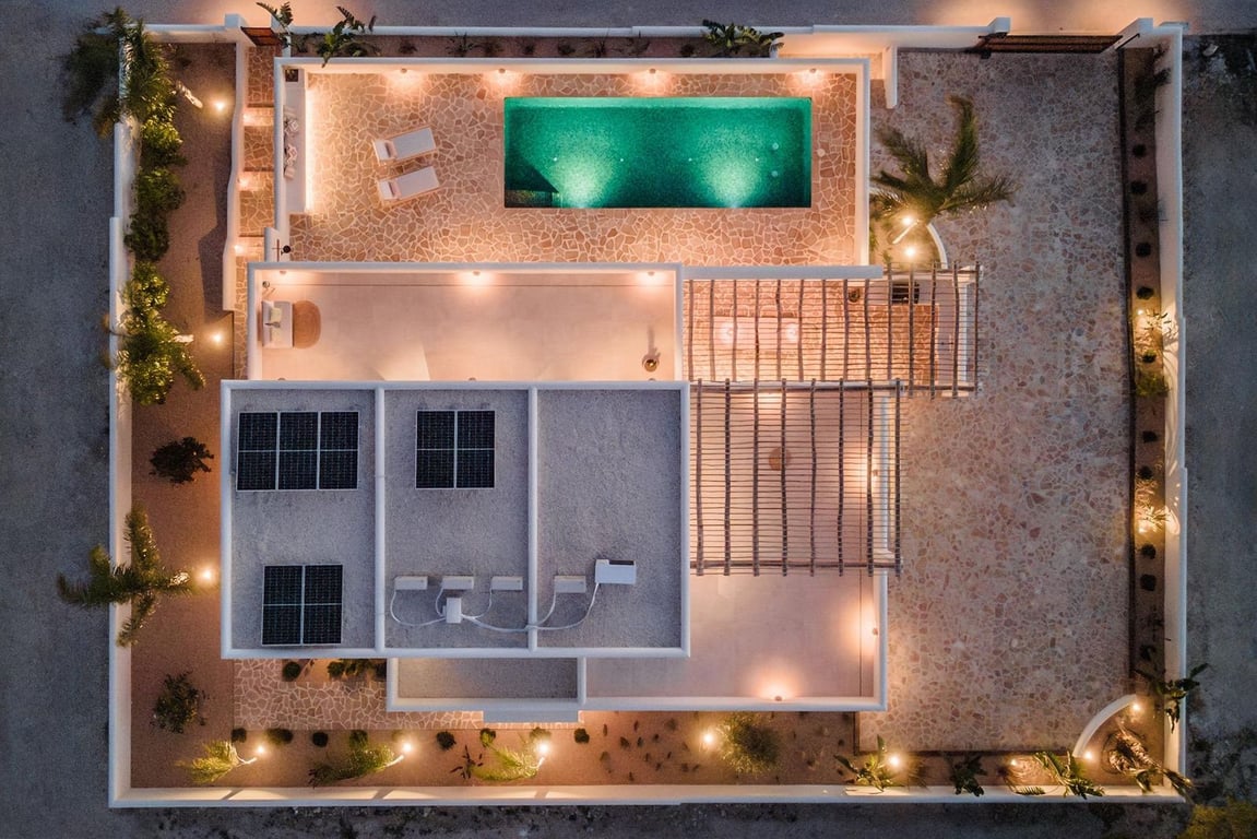 The outdoor pool terrace boasts a beautiful summer kitchen, ideal for outdoor entertaining. The property is complemented by ample parking space and a beautiful garden. Practical features such as underfloor heating and air conditioning (both adjustable in every room) ensure year-round comfort. The villa also comes equipped with a solar system, pre-installation for pool heating, a charging point for electric cars, and a