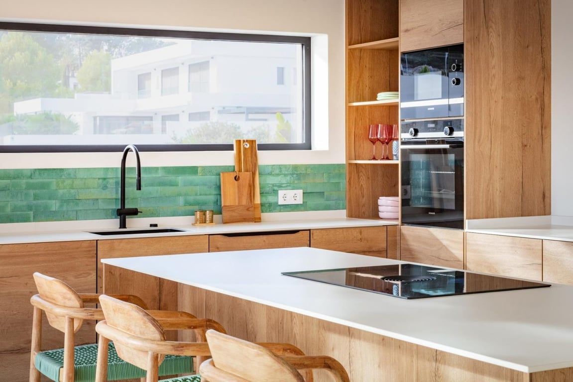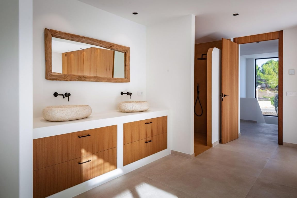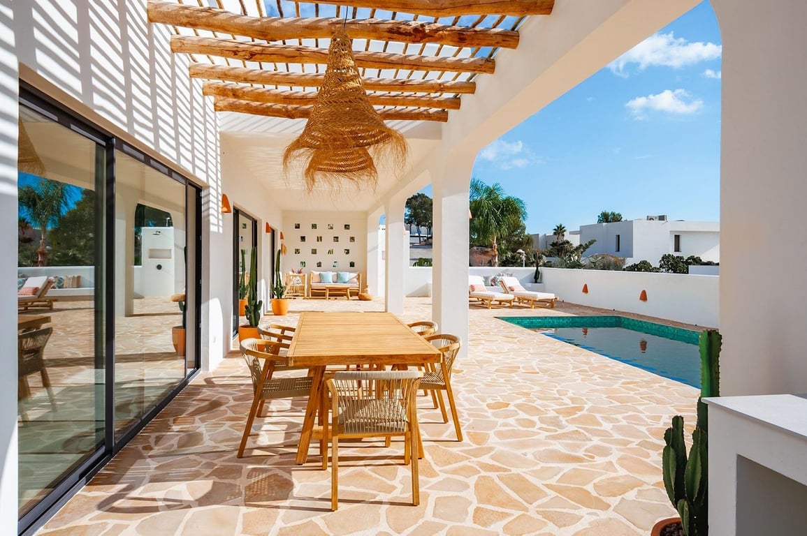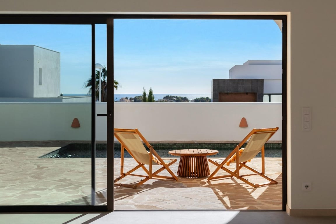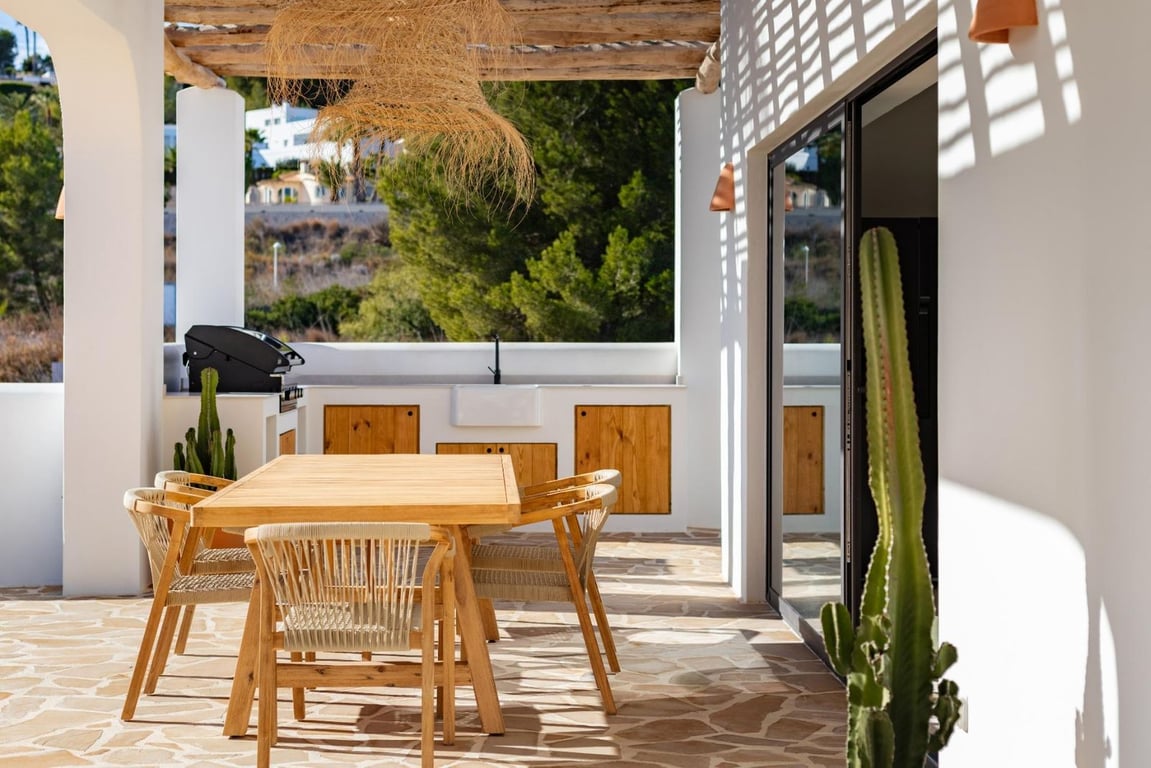 Discover your ideal home in Moraira with this move-in-ready villa, perfectly embodying the Ibiza style. Practical and stylish, this residence offers a comfortable living experience with spacious rooms, a fully equipped American kitchen, and captivating sea views.The ground floor welcomes you with a large living room connected to a fully equipped kitchen, providing direct access to the spacious pool terrace.
