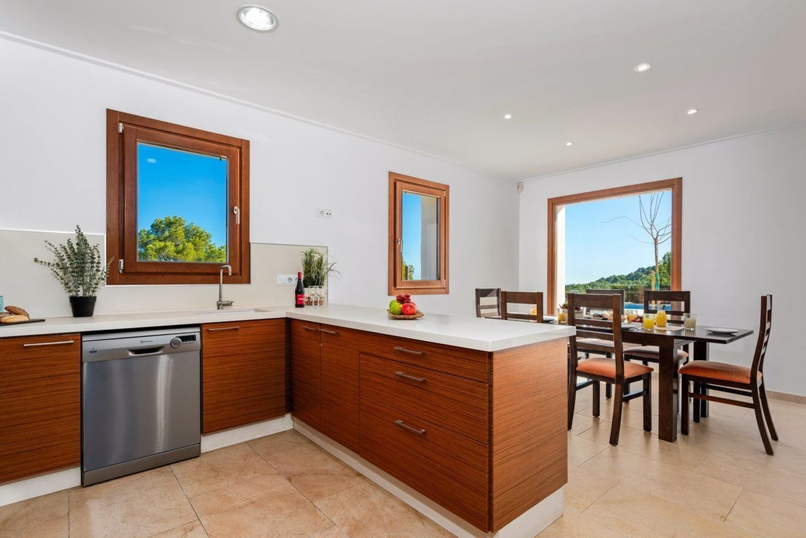 Exceptional villa with private pool located in Calpe, boasting spectacular views of the sea and mountains, and offering a high level of privacy. Situated in the Oltà area, a lightly populated, tranquil, and sunny urbanization, it stands at a refreshing 200 meters above sea level. Surrounded by forests and hiking trails. Unlike conventional villas, this property was built in 2010 using eco-friendly materials and designed with bioclimatic criteria. This ensures that the house maintains a comfortable temperature and humidity throughout the year with minimal use of heating or air conditioning. However, for added comfort, ducted air conditioning and heating pumps have recently been installed on the ground floor, with splits on the upper floor. The villa follows the architectural patterns of typical Mediterranean farmhouses. Built on a plot covering 10,030 m², the property features a completely flat and fenced area of 1,350 m², with the remaining land forming terraces that can be used for planting fruit trees or accommodating horses, etc. The living space has a built area of 230 m², plus a 80 m² basement. The interior is decorated in a modern style, contrasting with the rustic exterior. You can enjoy the spacious living-dining room and the covered and glazed terrace. Villa Natura is equipped with internet connection via WIFI. Ground Floor: (Access via a step) Spacious living-dining room furnished with modern and comfortable furniture. The living-dining room provides direct access to the covered and glazed terrace, pool area, and barbecue. On this floor, you will find the functional and uniquely designed open-plan kitchen equipped with appliances. Adjacent to the kitchen are the laundry room and pantry. This floor also features 2 double bedrooms and 1 bathroom with shower, WC, and sink. First Floor: (Access via interior stairs) The master bedroom on this floor offers wonderful views of the sea and the Peñón de Ifach, an ensuite bathroom with a spacious shower, WC, and sink, and a large dressing room that could also be used as a bedroom. This floor also includes another double bedroom and an ensuite bathroom with a bathtub, WC, and sink. Exterior: The property is surrounded by a spacious, flat, and fenced plot of 1350 m², featuring various landscaped areas with native plants and fruit trees. It includes a covered and glazed terrace with views of the sea and the pool. The pool measures 8x4 meters, with Roman stairs and a shallow area (0.90-1.65 meters), allowing for a pleasant swim while enjoying views of the sea and mountains. It's worth noting that the pool's chlorination system is also eco-friendly. Around the pool, you can enjoy a large and comfortable area of artificial grass, ideal for sunbathing, and an outdoor shower. Ample parking space for 3-4 vehicles on the same plot. Distances: Located 4 km from Calpe, 5 km from the "Arenal-Bol" beach and the main promenade, 4 km from various supermarkets, and 3 km from an urban bus stop and the regional Denia-Alicante train.