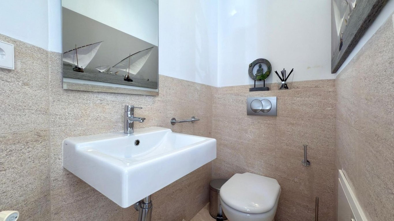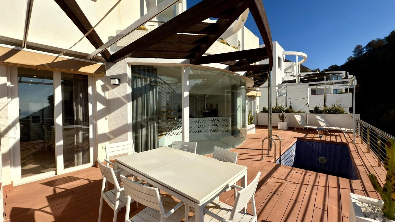 Elegant villa in Altea la Vella with sea viewsDiscover this residential gem located in the quiet and exclusive area of 'Alteart'. Just 50 minutes from Alicante-Elche Airport and 1.5 hours from Valencia Airport, this villa offers the perfect location for quiet family life. In addition, it is just 10 minutes from the beautiful beach of Altea.**Featured Features:**- 3 Floors- Private garage with space for 2 vehicles- 4 Bedrooms- 4 Bathrooms- Elevator- Large Terrace with Balcony- Private pool- Private BBQ Area**Exceptional Amenities:**The house has central heating and air conditioning to guarantee your comfort in all seasons. Fully furnished with new and modern furniture, this property offers an elegant and welcoming space.**Strategic location:**The proximity of several schools in the area makes this chalet the ideal choice for families. Furthermore, for foreign buyers, the acquisition of this property offers the opportunity to obtain a residence permit as an investor.**Interior distribution:**Main floor- Kitchen fully equiped- American-style living-dining room- Access to the large terrace with views of the sea, Benidorm and Altea. The terrace includes a private pool and barbecue area.Second floor- 3 Bedrooms with private bathrooms- Children's areaLow levelBalcony accessGarage accessService area with washer and dryerThis property is a perfect fusion of comfort, style and location. Don't miss the opportunity to call this chalet your home! Contact us for more details and a visit.