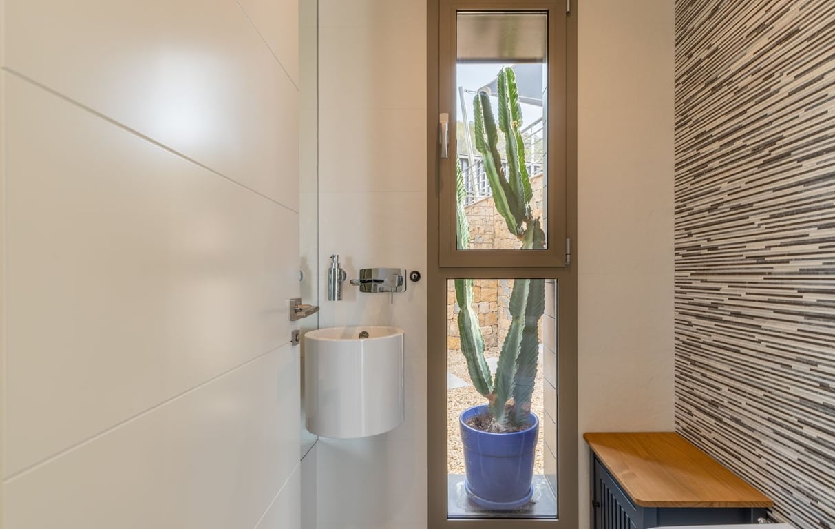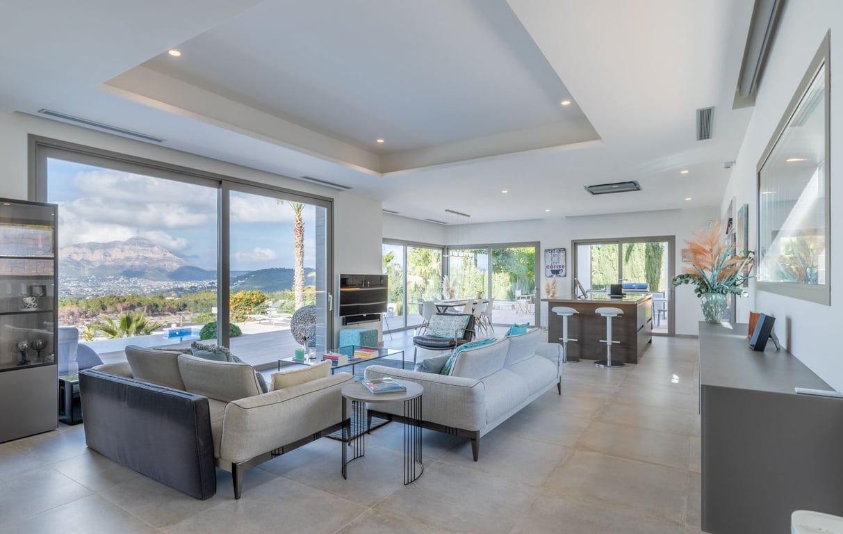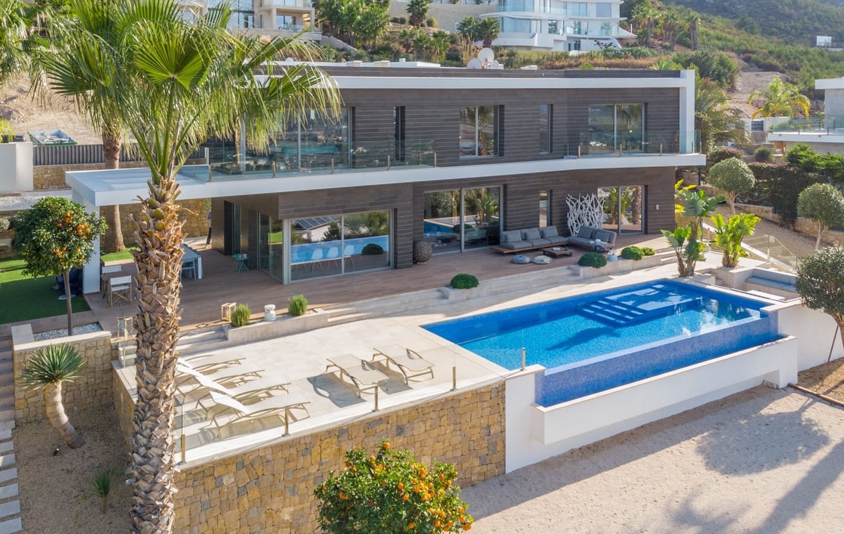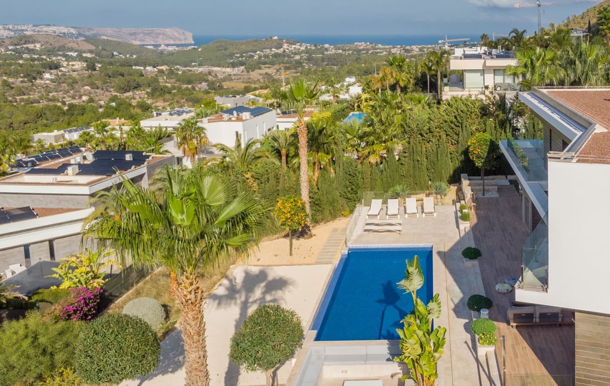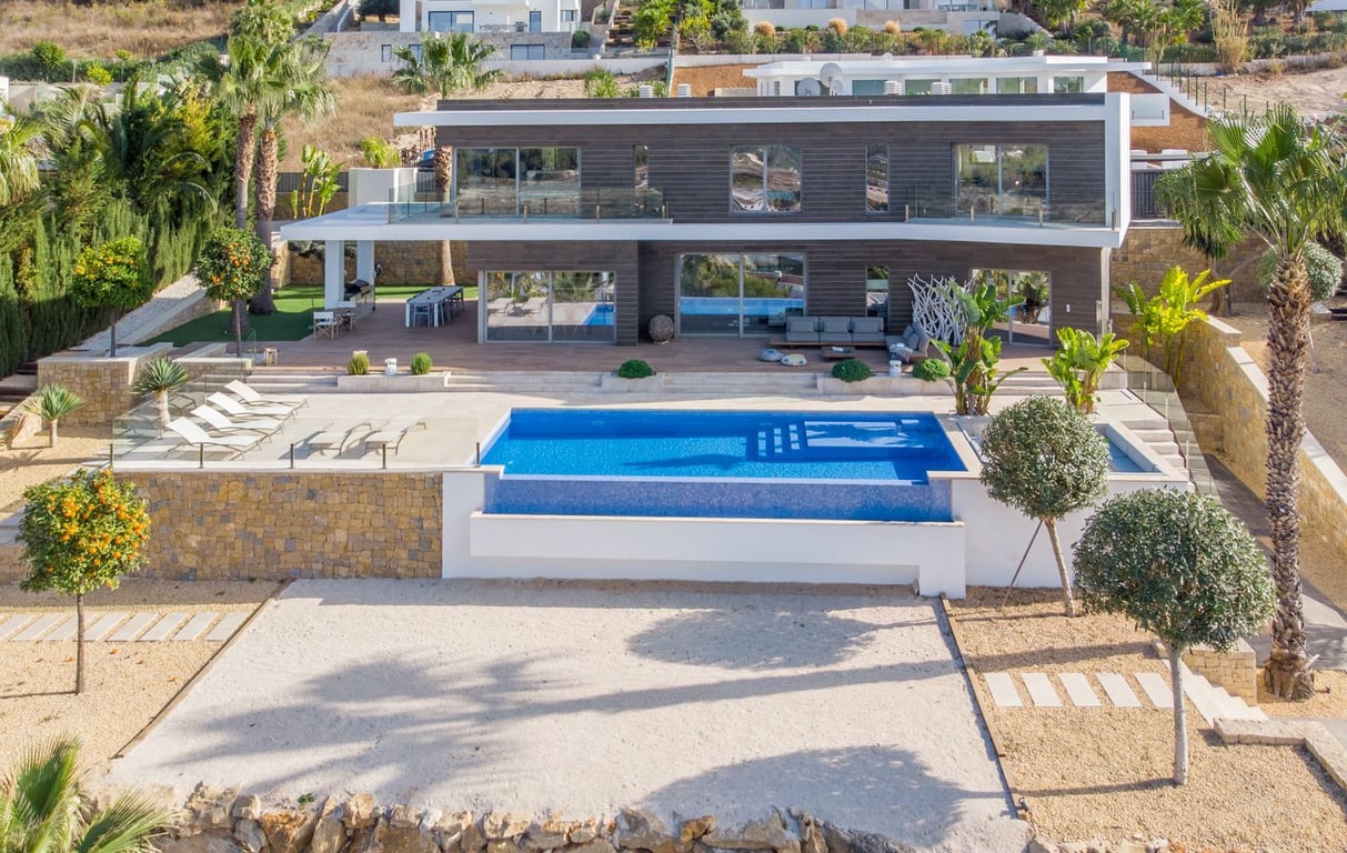 Deze luxe villa met 5 slaapkamers is gelegen in Jávea, in een exclusieve woonwijk omgeven door de charme van bergen, zee en andere hoogstaande villa's. Op korte afstand van een golfclub, idyllische stranden en gerenommeerde internationale scholen, is deze woning perfect om het hele jaar door volop van het leven te genieten. Gebouwd in 2018 volgens de hoogste kwaliteitsnormen, staat de villa op een perceel van 1.550 m2. Het biedt royale zonnige terrassen, een indrukwekkend verwarmd infinity-zwembad, een buitenkeuken met barbecue, een chill-out gebied met uitzicht op de Middellandse Zee en het charmante dorp Benitachell, een jeu de boules-baan en een weelderige landschapstuin. Het warme en uitnodigende huis is verdeeld over drie niveaus, allemaal verbonden door een lift en interne trappen. De begane grond heeft een ruime woon-eetkamer, een volledig uitgeruste keuken, een gastentoilet en een slaapkamer met een en-suite badkamer en directe toegang tot de buitenterrassen. Het lagere niveau herbergt een sterrenhemelkamer gebruikt als bioscoop, een technische/wasruimte en een tweepersoonskamer met een en-suite badkamer, momenteel ingericht als ontspanningsruimte met sauna. De bovenverdieping biedt drie ruime slaapkamers met badkamer en suite, allemaal met uitzicht op zee en voorzien van privébadkamers en kasten, met name de hoofdsuite die een open badkamerconcept bevat met dubbele douche, een elegante badkuip en een kleedkamer. De woning is uitgerust met vloerverwarming, warm/koud airconditioning via kanalen, een Panasonic aerothermisch systeem, een warmtepomp voor het zwembad, een onafhankelijk buitentoilet, parkeergelegenheid voor twee auto's, een automatisch irrigatiesysteem, domotica verlichting, een alarm en een Bose en Sonos binnen/buiten geluidssysteem, wat maximaal comfort en veiligheid garandeert. Voor meer informatie of om een bezichtiging te regelen, neemt u alstublieft contact met ons op.