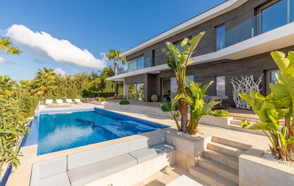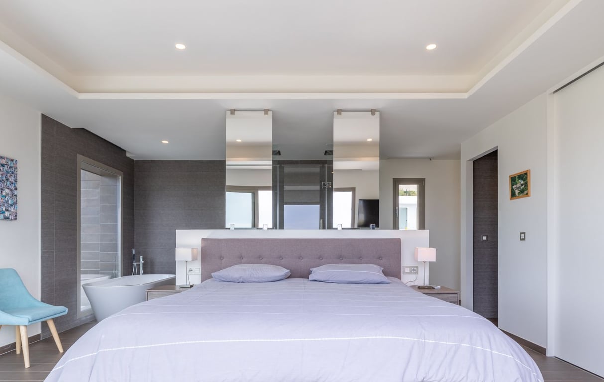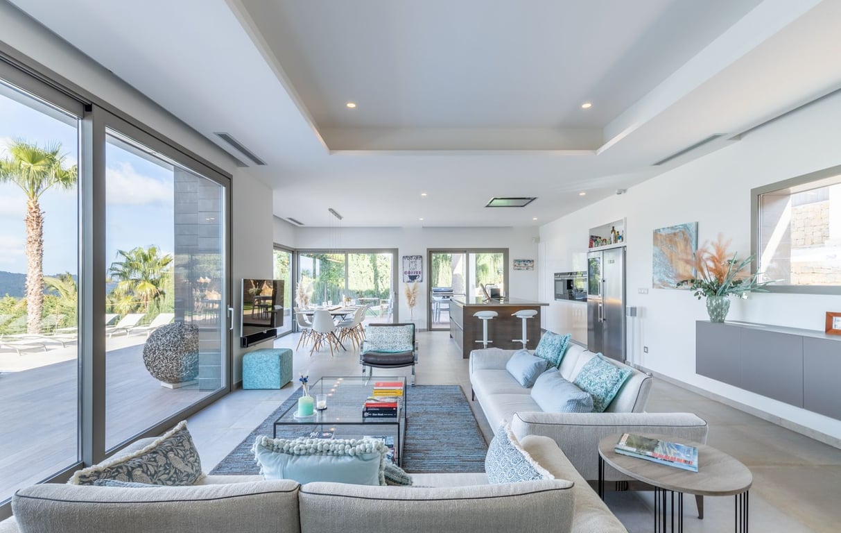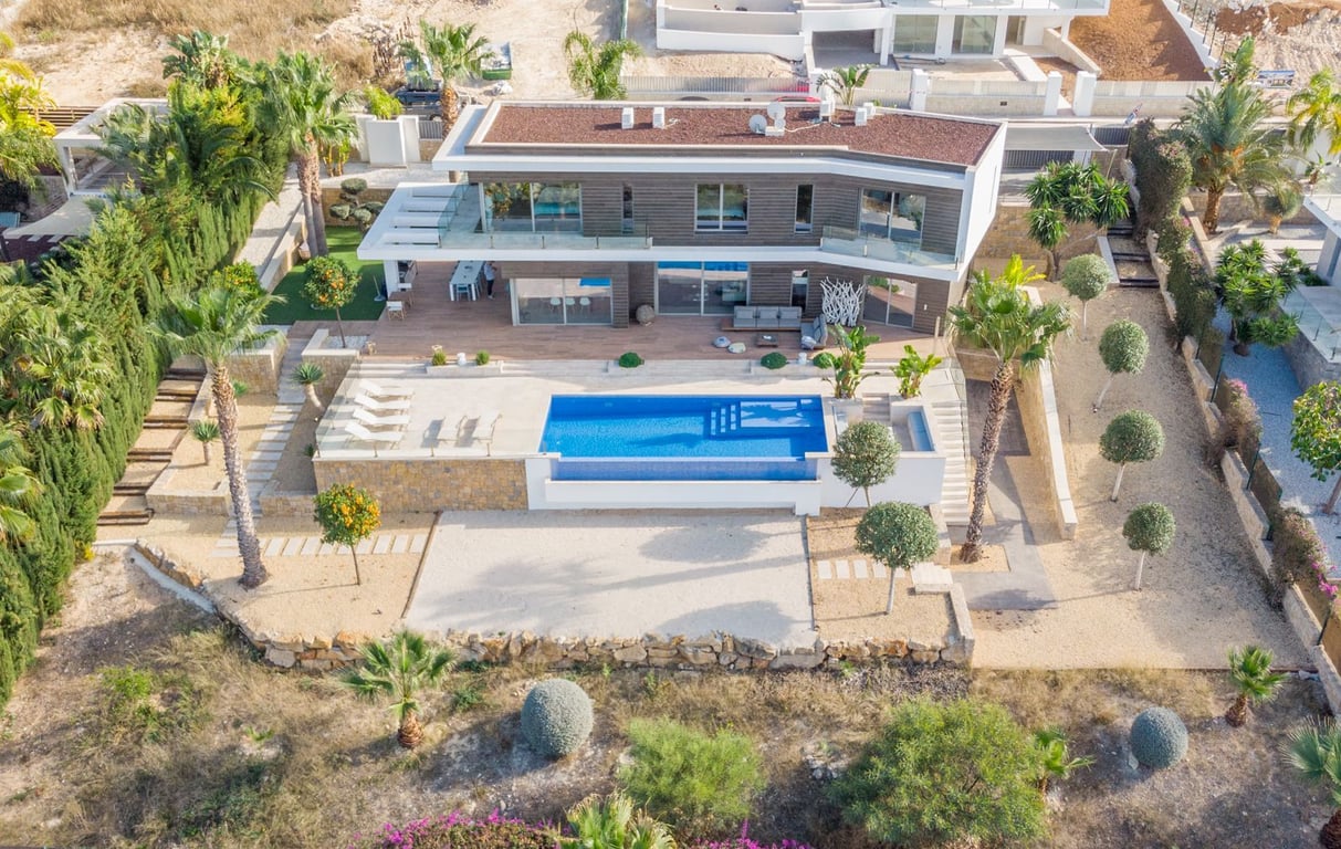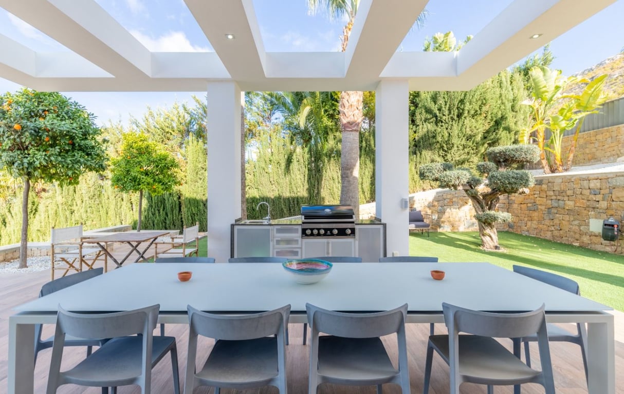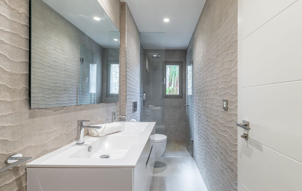 Deze luxe villa met 5 slaapkamers is gelegen in Jávea, in een exclusieve woonwijk omgeven door de charme van bergen, zee en andere hoogstaande villa's. Op korte afstand van een golfclub, idyllische stranden en gerenommeerde internationale scholen, is deze woning perfect om het hele jaar door volop van het leven te genieten. Gebouwd in 2018 volgens de hoogste kwaliteitsnormen, staat de villa op een perceel van 1.550 m2. Het biedt royale zonnige terrassen, een indrukwekkend verwarmd infinity-zwembad, een buitenkeuken met barbecue, een chill-out gebied met uitzicht op de Middellandse Zee en het charmante dorp Benitachell, een jeu de boules-baan en een weelderige landschapstuin. Het warme en uitnodigende huis is verdeeld over drie niveaus, allemaal verbonden door een lift en interne trappen. De begane grond heeft een ruime woon-eetkamer, een volledig uitgeruste keuken, een gastentoilet en een slaapkamer met een en-suite badkamer en directe toegang tot de buitenterrassen. Het lagere niveau herbergt een sterrenhemelkamer gebruikt als bioscoop, een technische/wasruimte en een tweepersoonskamer met een en-suite badkamer, momenteel ingericht als ontspanningsruimte met sauna. De bovenverdieping biedt drie ruime slaapkamers met badkamer en suite, allemaal met uitzicht op zee en voorzien van privébadkamers en kasten, met name de hoofdsuite die een open badkamerconcept bevat met dubbele douche, een elegante badkuip en een kleedkamer. De woning is uitgerust met vloerverwarming, warm/koud airconditioning via kanalen, een Panasonic aerothermisch systeem, een warmtepomp voor het zwembad, een onafhankelijk buitentoilet, parkeergelegenheid voor twee auto's, een automatisch irrigatiesysteem, domotica verlichting, een alarm en een Bose en Sonos binnen/buiten geluidssysteem, wat maximaal comfort en veiligheid garandeert. Voor meer informatie of om een bezichtiging te regelen, neemt u alstublieft contact met ons op.