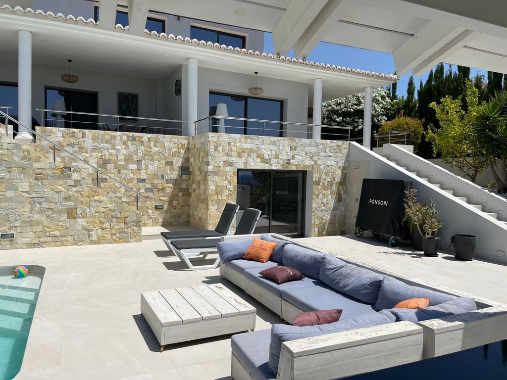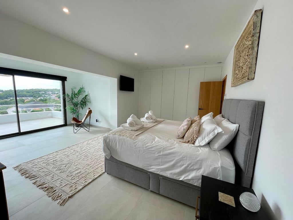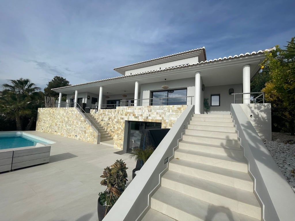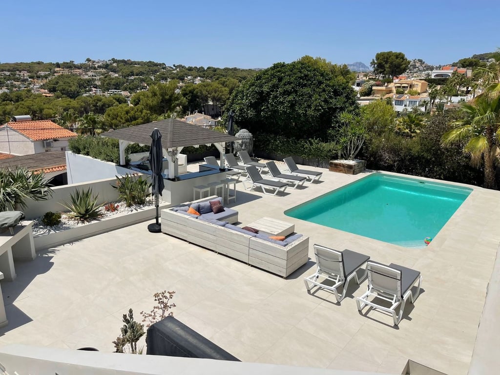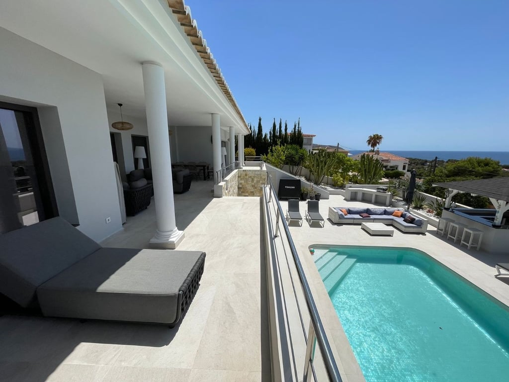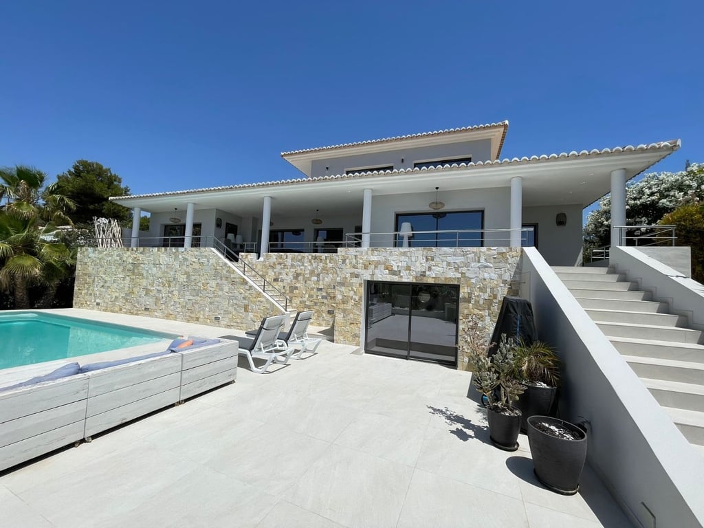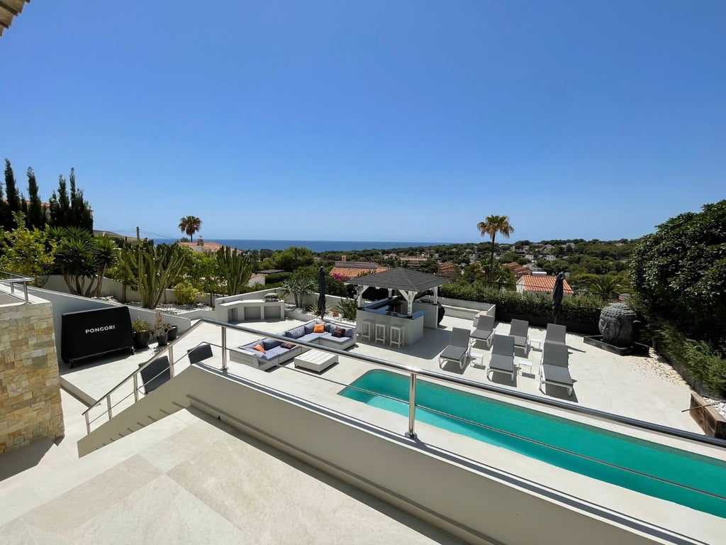 A fantastische luxe villa with 5 slaapkamers in panoramic uitzicht op zee. Maak kennis with a prachtige luxe villa with 5 slaapkamers in 5 badkamers, gelegen in het van Moraira in with adembenemend panoramisch uitzicht op de Middellandse Zee. Dit exclusieve pand biedt de perfecte combinatie van modern comfort en elegant design, plus het ligt op loopafstand van het rustige centrum van Moraira met zijn stranden met blauwe vlag, voortreffelijke restaurants en boetieks. De villa beschikt over a geautomatiseerde parkeerplaats with a parkeerplaats in toegang all the large onafhankelijke garage. Er zijn trappen die leiden naar het grote terras bij het zwembad en een lager gelegen gastensuite, die bestaat uit een woonkamer, een doucheruimte en een ruime slaapkamer met ruime ingebouwde kasten. De belangrijkste woonruimte heeft een heerlijk overdekt terras met panoramisch uitzicht op zee en een ruime ruimte om te ontspannen en te genieten van het uitzicht. Daarnaast is er een eethoek in de buitenlucht. Bij binnenkomst in de villa is het gevoel van ruimte en grandeur, evenals de hoge bouwkwaliteit, overweldigend. The pand is volledig gerenoveerd tot een zeer hoge standaard, including nieuwe bedrading, sanitair, vloerverwarming, een ultramoderne keuken en een onafhankelijke bijkeuken. Er zijn vier grote slaapkamers, elk met een eigen badkamer. (Vijf slaapkamers in het Geust-appartement) De hoofdslaapkamer bevindt zich op de begane grond en komt uit op een overdekt terras, dat wederom een prachtig uitzicht op zee biedt. Global biedt deze villa hoogwaardig wonen met adembenemend zeezicht on light op loopafstand van het dorp en de stranden van Moraira. Up-order- Rendered Clear seal Zeezicht Welcome to Moraira Loopafstand Groot terras bij het zwembad en bar accommodation Parking on the street in the garage Vloerverwarming Automatic internal zoning Dakterras Ruiming the storm Op het zuiden gelegen met de hele dag zon Alarm system Geluidssystem