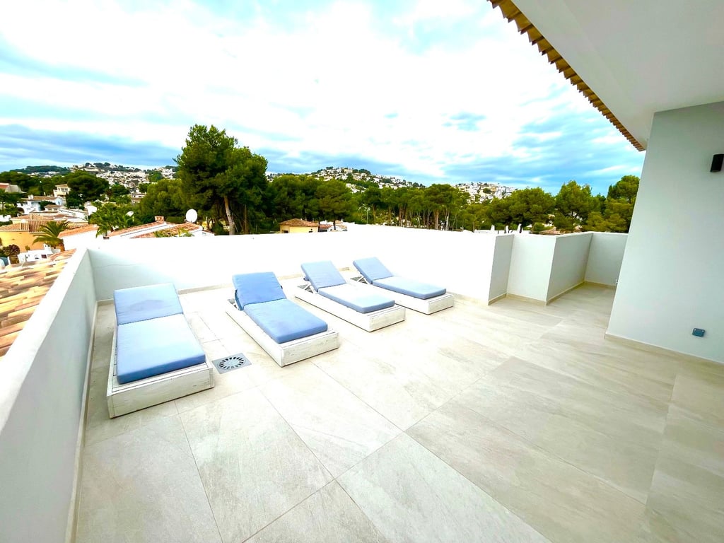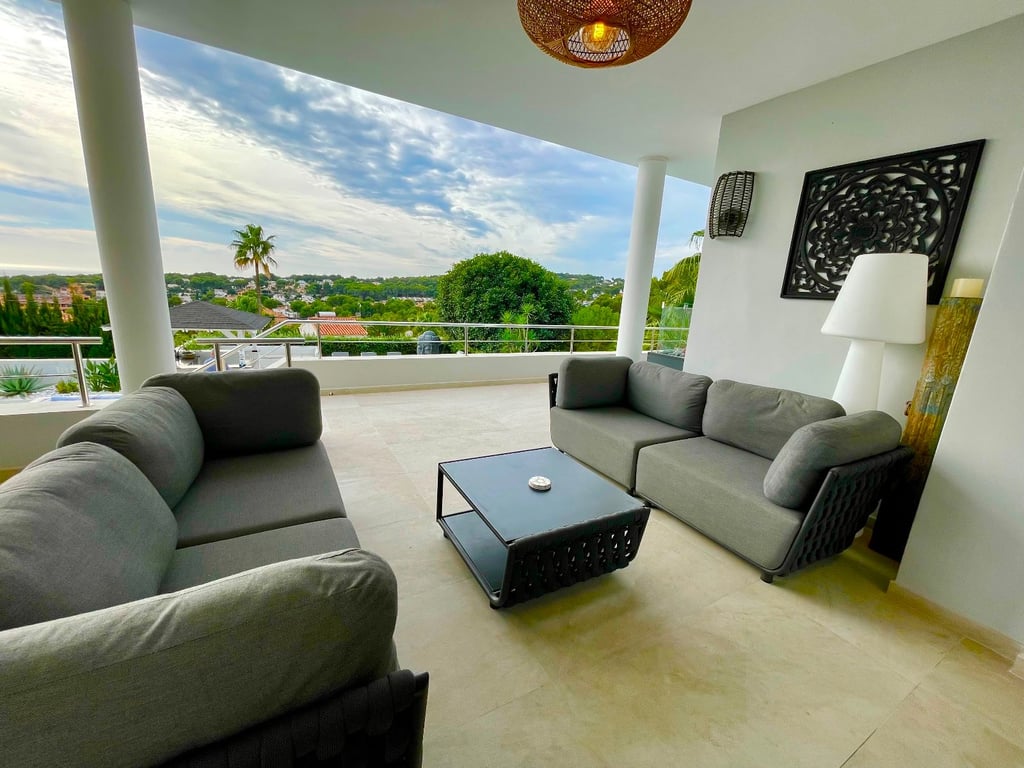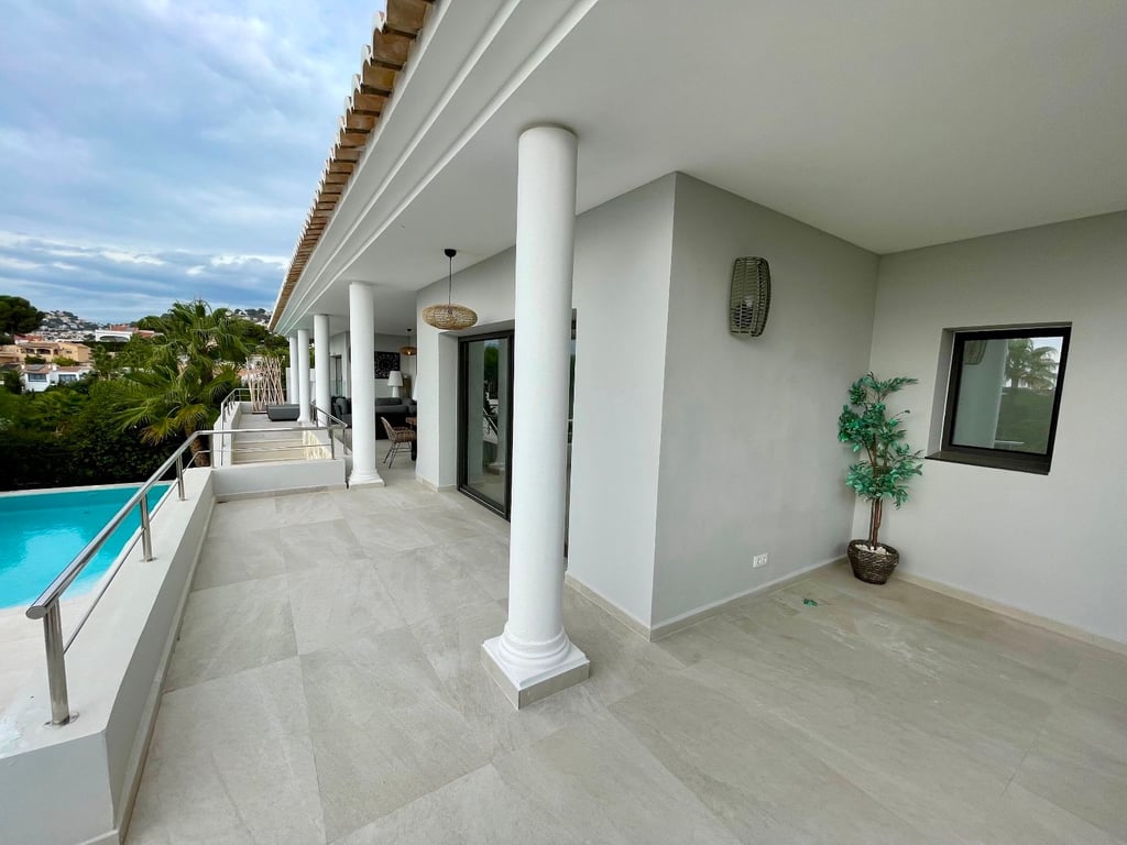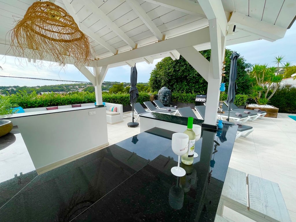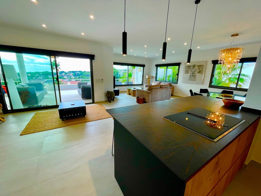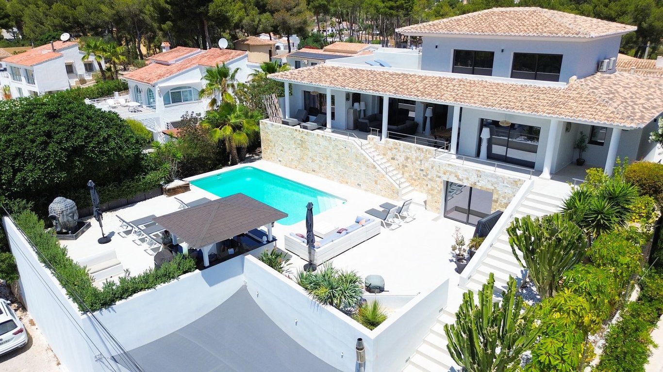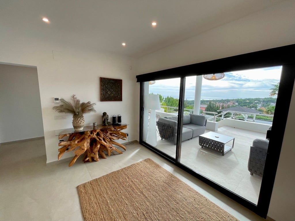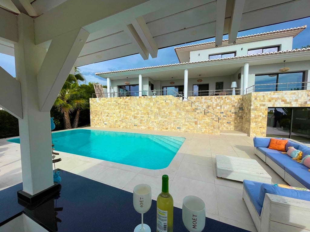 A fantastische luxe villa with 5 slaapkamers in panoramic uitzicht op zee. Maak kennis with a prachtige luxe villa with 5 slaapkamers in 5 badkamers, gelegen in het van Moraira in with adembenemend panoramisch uitzicht op de Middellandse Zee. Dit exclusieve pand biedt de perfecte combinatie van modern comfort en elegant design, plus het ligt op loopafstand van het rustige centrum van Moraira met zijn stranden met blauwe vlag, voortreffelijke restaurants en boetieks. De villa beschikt over a geautomatiseerde parkeerplaats with a parkeerplaats in toegang all the large onafhankelijke garage. Er zijn trappen die leiden naar het grote terras bij het zwembad en een lager gelegen gastensuite, die bestaat uit een woonkamer, een doucheruimte en een ruime slaapkamer met ruime ingebouwde kasten. De belangrijkste woonruimte heeft een heerlijk overdekt terras met panoramisch uitzicht op zee en een ruime ruimte om te ontspannen en te genieten van het uitzicht. Daarnaast is er een eethoek in de buitenlucht. Bij binnenkomst in de villa is het gevoel van ruimte en grandeur, evenals de hoge bouwkwaliteit, overweldigend. The pand is volledig gerenoveerd tot een zeer hoge standaard, including nieuwe bedrading, sanitair, vloerverwarming, een ultramoderne keuken en een onafhankelijke bijkeuken. Er zijn vier grote slaapkamers, elk met een eigen badkamer. (Vijf slaapkamers in het Geust-appartement) De hoofdslaapkamer bevindt zich op de begane grond en komt uit op een overdekt terras, dat wederom een prachtig uitzicht op zee biedt. Global biedt deze villa hoogwaardig wonen met adembenemend zeezicht on light op loopafstand van het dorp en de stranden van Moraira. Up-order- Rendered Clear seal Zeezicht Welcome to Moraira Loopafstand Groot terras bij het zwembad en bar accommodation Parking on the street in the garage Vloerverwarming Automatic internal zoning Dakterras Ruiming the storm Op het zuiden gelegen met de hele dag zon Alarm system Geluidssystem