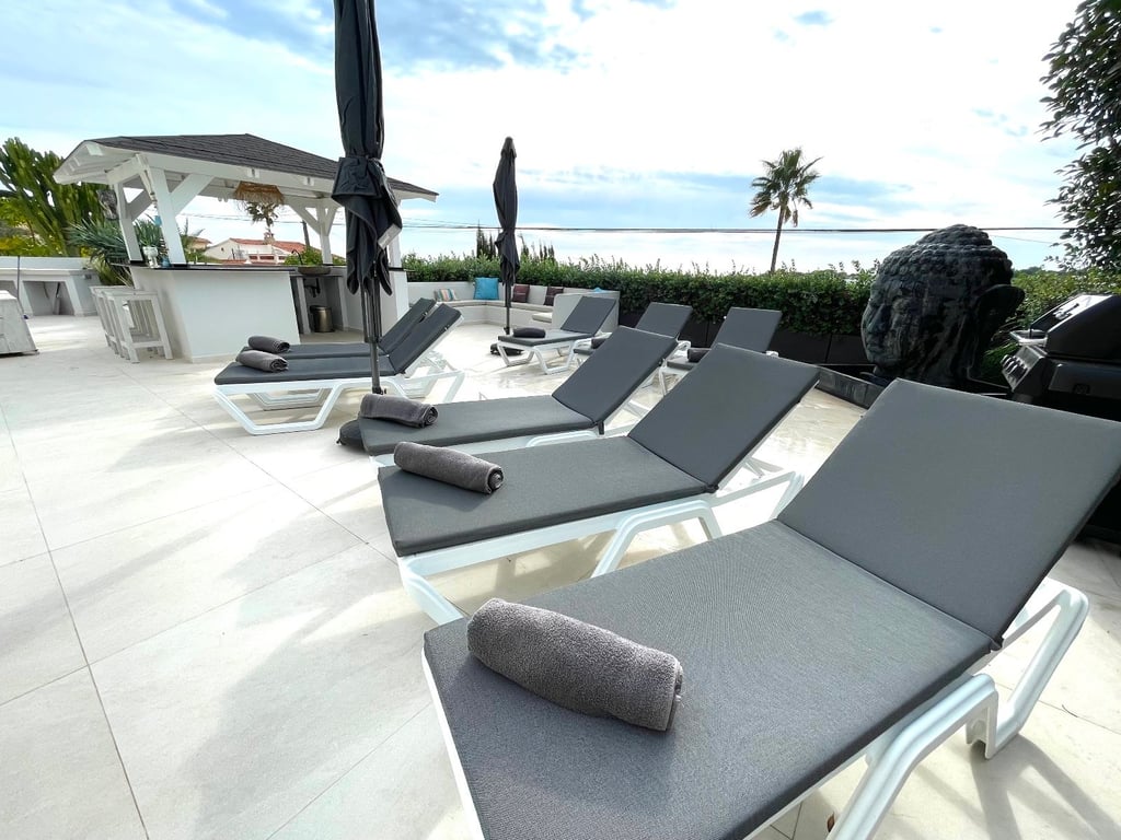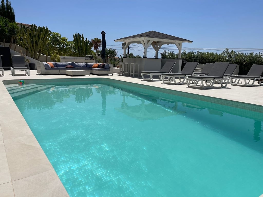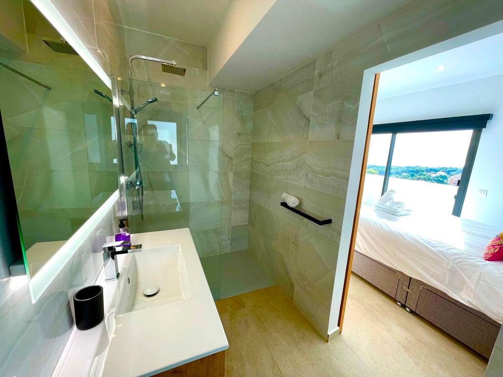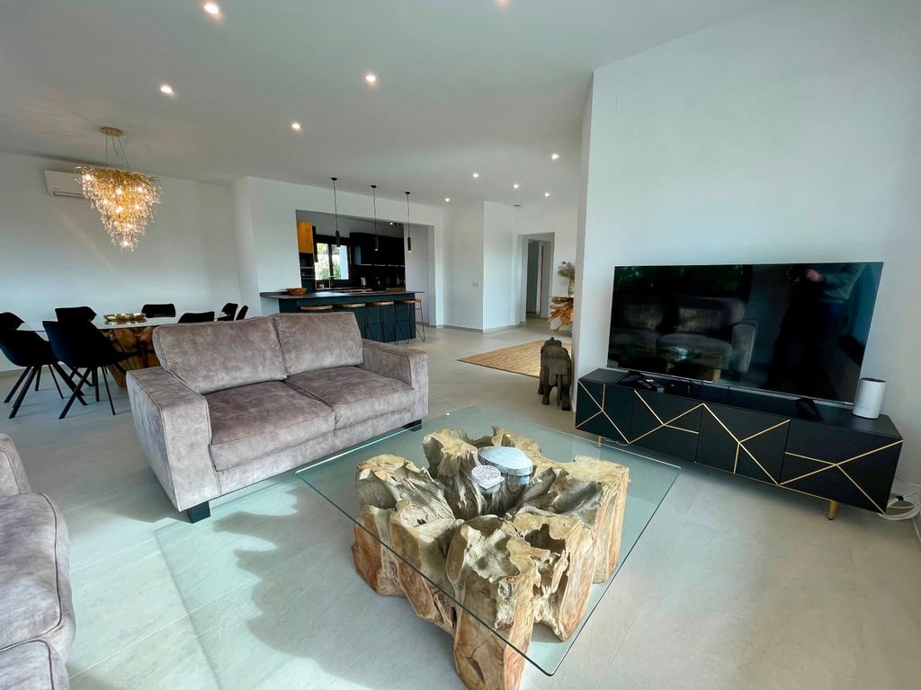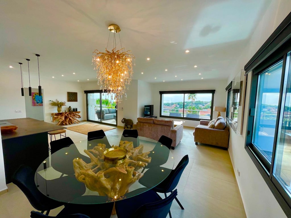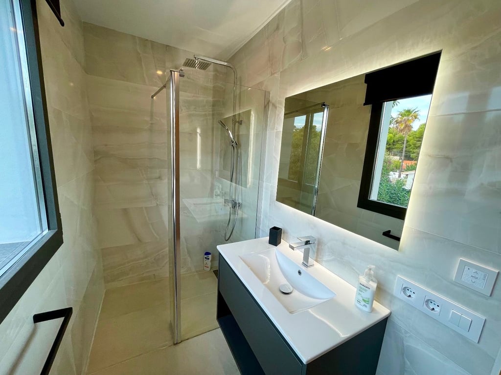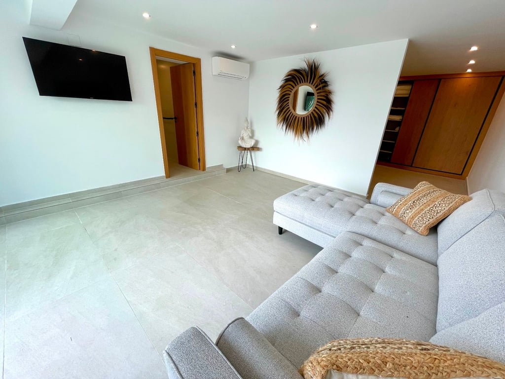 A fantastische luxe villa with 5 slaapkamers in panoramic uitzicht op zee. Maak kennis with a prachtige luxe villa with 5 slaapkamers in 5 badkamers, gelegen in het van Moraira in with adembenemend panoramisch uitzicht op de Middellandse Zee. Dit exclusieve pand biedt de perfecte combinatie van modern comfort en elegant design, plus het ligt op loopafstand van het rustige centrum van Moraira met zijn stranden met blauwe vlag, voortreffelijke restaurants en boetieks. De villa beschikt over a geautomatiseerde parkeerplaats with a parkeerplaats in toegang all the large onafhankelijke garage. Er zijn trappen die leiden naar het grote terras bij het zwembad en een lager gelegen gastensuite, die bestaat uit een woonkamer, een doucheruimte en een ruime slaapkamer met ruime ingebouwde kasten. De belangrijkste woonruimte heeft een heerlijk overdekt terras met panoramisch uitzicht op zee en een ruime ruimte om te ontspannen en te genieten van het uitzicht. Daarnaast is er een eethoek in de buitenlucht. Bij binnenkomst in de villa is het gevoel van ruimte en grandeur, evenals de hoge bouwkwaliteit, overweldigend. The pand is volledig gerenoveerd tot een zeer hoge standaard, including nieuwe bedrading, sanitair, vloerverwarming, een ultramoderne keuken en een onafhankelijke bijkeuken. Er zijn vier grote slaapkamers, elk met een eigen badkamer. (Vijf slaapkamers in het Geust-appartement) De hoofdslaapkamer bevindt zich op de begane grond en komt uit op een overdekt terras, dat wederom een prachtig uitzicht op zee biedt. Global biedt deze villa hoogwaardig wonen met adembenemend zeezicht on light op loopafstand van het dorp en de stranden van Moraira. Up-order- Rendered Clear seal Zeezicht Welcome to Moraira Loopafstand Groot terras bij het zwembad en bar accommodation Parking on the street in the garage Vloerverwarming Automatic internal zoning Dakterras Ruiming the storm Op het zuiden gelegen met de hele dag zon Alarm system Geluidssystem