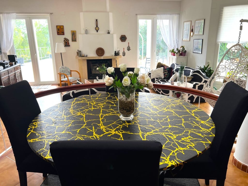 Deze villa is gelegen in een zeer rustige omgeving op slechts een paar minuten rijden van Altea la Vieja en een paar meer van Altea. Dicht bij de eerste levensbehoeften en de Don Cayo golfclub. Met een prachtig open uitzicht op de baai van Altea op de meer dan 1.000 meter perceel, het biedt grote tuinen, barbecue, prive zwembad, fantastische terrassen en 16 zonnepanelen installaties die het hele pand voorzien.  Verdeeld over 2 verdiepingen met ruime kamers en veel natuurlijk licht dankzij de oriëntatie op zee. Op de hoofdverdieping heeft het  een grote dubbele hoogte woon-eetkamer met open haard en toegang tot de terrassen, een onafhankelijke volledig ingerichte keuken met wasruimte en toegang tot de buitenkant van het pand, een grote slaapkamer met eigen badkamer en een gastentoilet.Op de 1e verdieping heeft het 2 tweepersoonsslaapkamers, een kantoorruimte en 1 complete badkamer. Daarnaast is er een comfortabel terras met uitzicht op zee.  De woning heeft een mooie grote oprit met ruimte voor meer dan 4 auto's. De villa is voorzien van vloerverwarming, airconditioning in alle kamers, mooie tuin, privézwembad en een fantastisch terras.Het ligt 4 km van de stad, 7,5 km van het strand, 5 km van de snelweg en 73 km van de luchthaven van Alicante