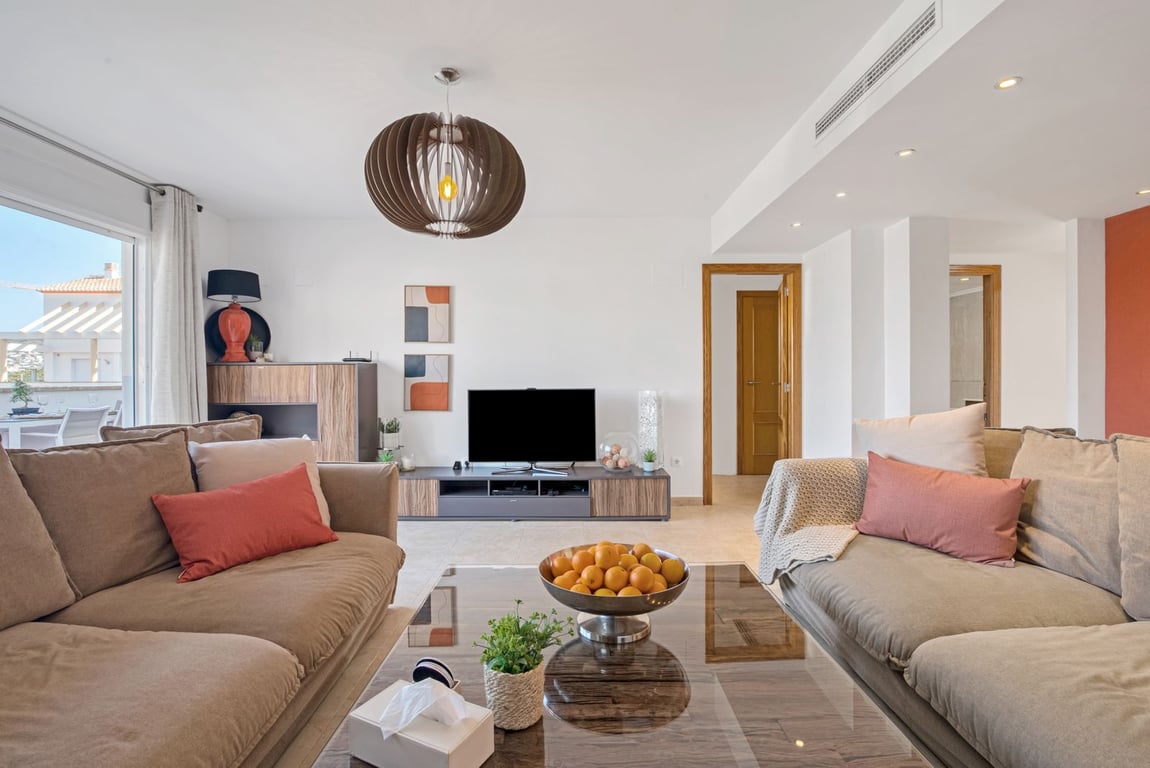Ervaar de belichaming van het leven aan de kust met dit geweldige penthouse met drie slaapkamers te koop in Javea, gelegen op slechts twee minuten lopen van het beroemde Arenal-strand. Deze uitzonderlijke woning biedt de perfecte mix van luxe, gemak en panoramisch uitzicht, waardoor het een ideale investeringsmogelijkheid of een droomhuis is. Belangrijkste kenmerken: Toplocatie: Op slechts twee minuten van het strand van Arenal en dicht bij alle voorzieningen, zorgt dit penthouse ervoor dat u zich in het hart van de levendige levensstijl van Javea bevindt. Ruime woonkamer: Ongeveer 130m² interne ruimte verdeeld over twee verdiepingen. Indeling eerste verdieping: Twee tweepersoons slaapkamers Een moderne badkamer Een grote, volledig uitgeruste keuken Een ruime woon- en eetkamer, beide leidend naar een terras aan de voorzijde met een adembenemend uitzicht Master Suite op de tweede verdieping: Hoofdslaapkamer met ensuite badkamer Galerij die leidt naar een groot dakterras Spectaculaire buitenruimtes: Twee grote terrassen, een 60m² aan de achterzijde en een andere 25m² direct naast de woonkamer, perfect om te entertainen of te genieten van de prachtige omgeving. Met zijn onovertroffen locatie, uitgestrekte terrassen en luxe interieurs biedt deze woning een ongeëvenaarde woonervaring. Mis deze unieke kans niet - neem vandaag nog contact met ons op om een bezichtiging te regelen en deze eersteklas woning veilig te stellen.