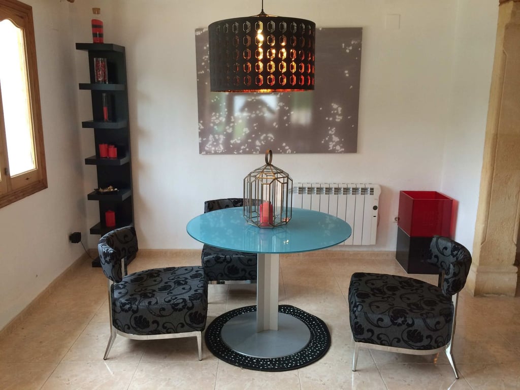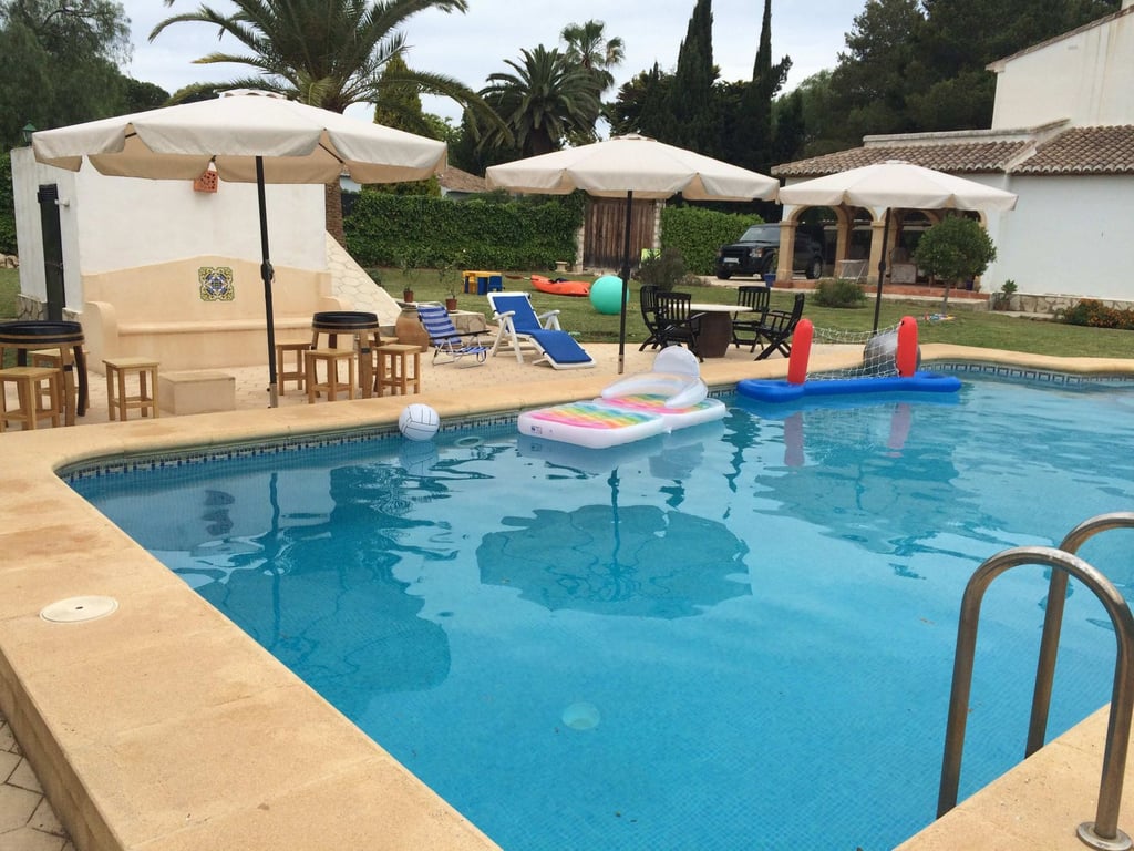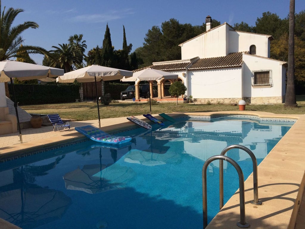 Deze prachtige villa is gelegen op een van Javeas meest gewenste urbanisaties. De villa bevindt zich op een vlakke zuiden van 1600 m², gelegen perceel en bestaat uit 247 m² te bouwen. De eigenschap is ingevoerd door een grote poort en de werkelijke villa heeft drie afzonderlijke ingangen. De hoofdingang is via het overdekte terras invoeren in de lounge en eethoek met traditionele tosca open haard. Een gang leidt u naar de achteringang, evenals aparte volledig uitgeruste kithcen en twee tweepersoons slaapkamers en een volledige familie badkamer.