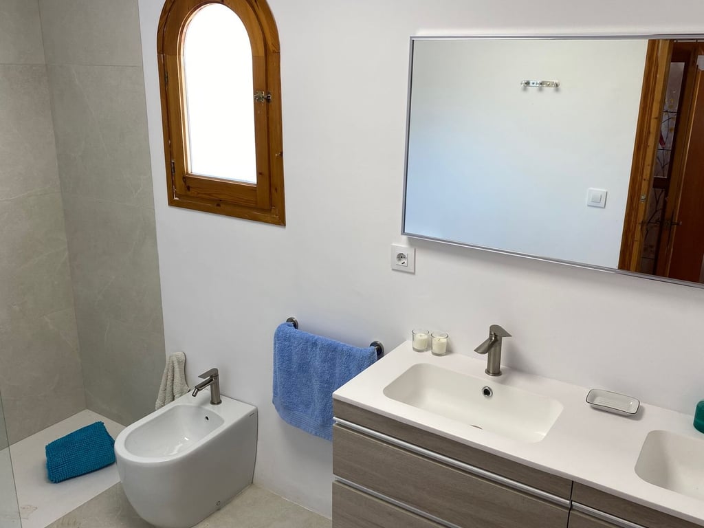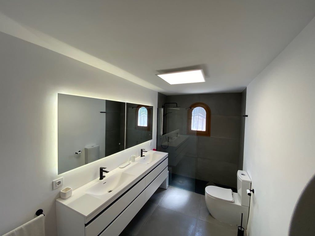 De interne trap brengt u naar boven naar een andere dobule slaapkamer en de master-slaapkamers met eigen badkamer en een apart privé terras. De tuinen zijn voorzien van veel open gazon ruimte evenals extra groot terras ruimte rond het zwembad. De villa beschikt bovendien over elektrische centrale verwarming in de hele, grote garage, barbecue en gedeeltelijke airconditioning.