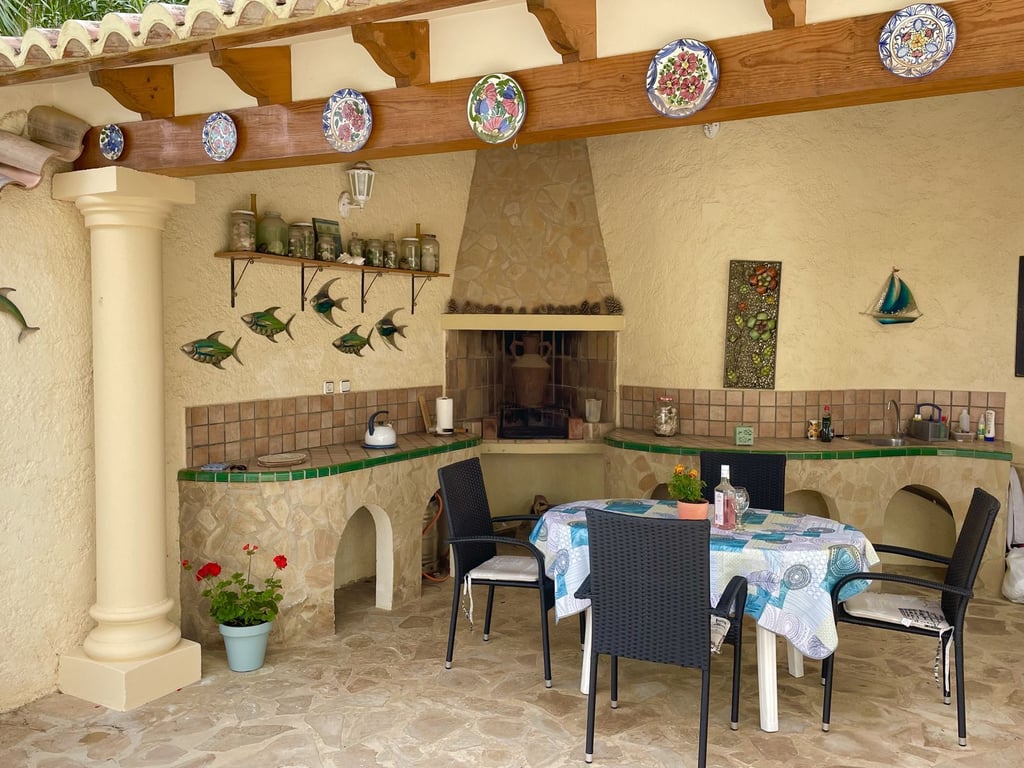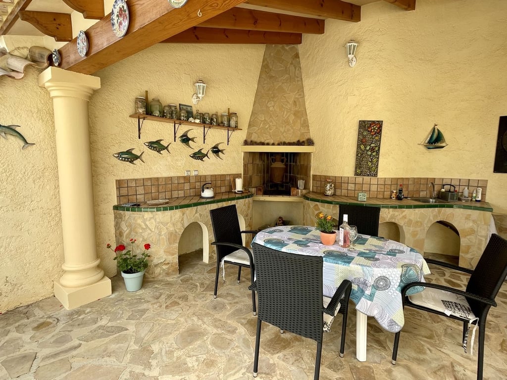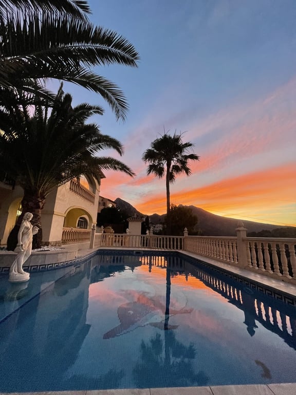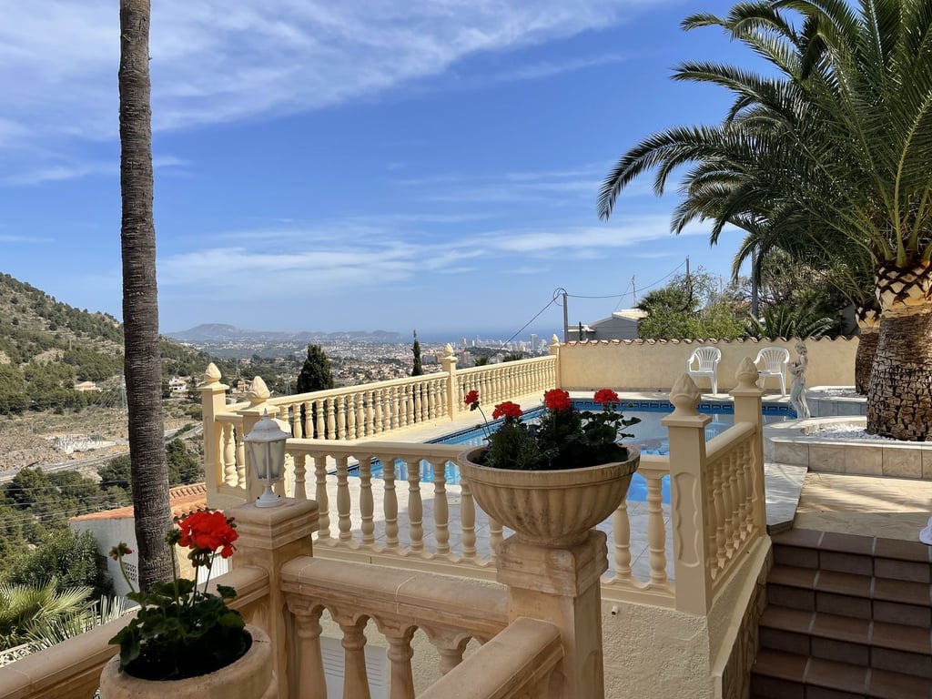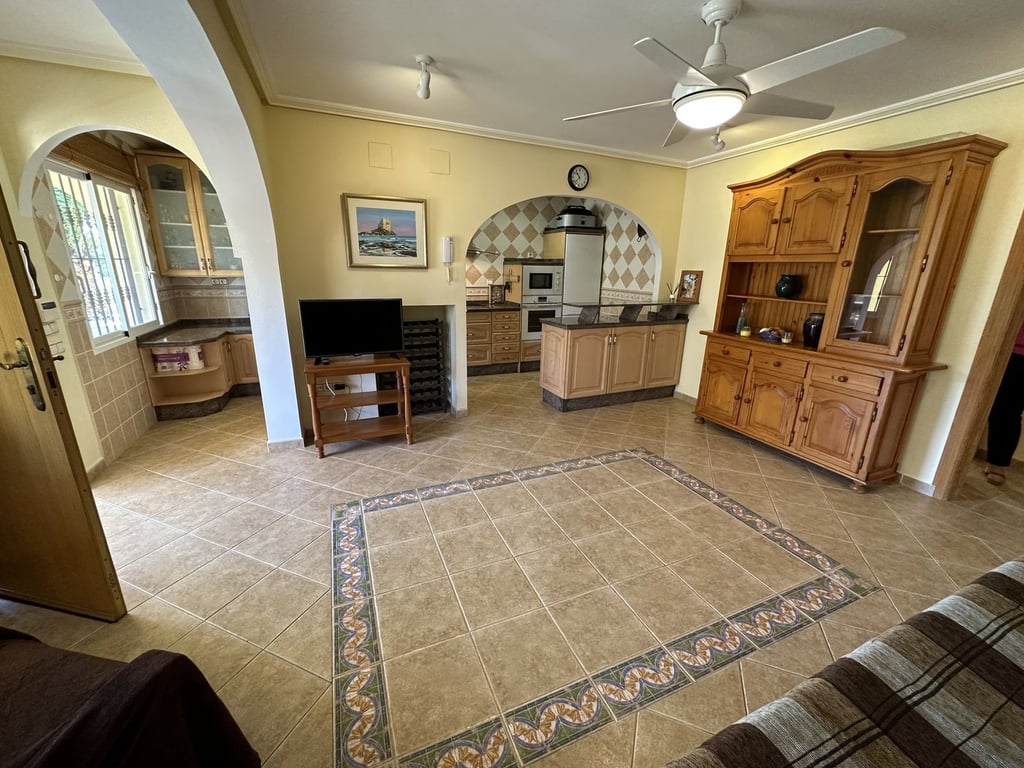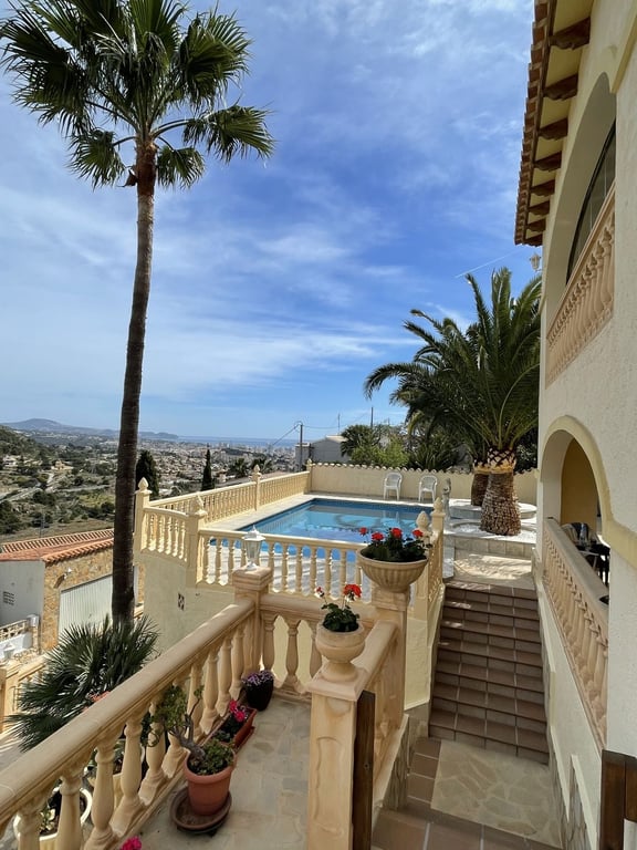 Prachtige villa met uitzicht op de zee en de Peñón de Ifach. Deze woning heeft twee onafhankelijke woningen. Op de begane grond vindt u twee slaapkamers, twee en-suite badkamers, een woon-eetkamer met open keuken en een overdekt terras. Op de bovenverdieping bevinden zich drie slaapkamers, twee badkamers (waarvan één en-suite), een ruime woon-eetkamer, een aparte keuken en twee glazen terrassen met prachtig uitzicht op de bergen en de zee richting Moraira. Het heeft een zwembad van 10x4 met een Romeinse trap, omgeven door palmbomen. Daarnaast heeft het een eigen douche en barbecueplek om te genieten van onvergetelijke momenten met familie en vrienden. Verder beschikt de woning over een wasruimte en berging met toilet en een dubbele garage. Het beschikt over airconditioning en centrale verwarming. De villa is in perfecte staat om in te trekken, gebouwd met hoogwaardige materialen en goed bewaard gebleven. Er is een lift vanaf de straat die naar de begane grond van de villa gaat, een gemak tot uw dienst. Gedeeltelijk gemeubileerd verkocht.