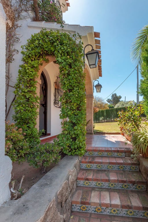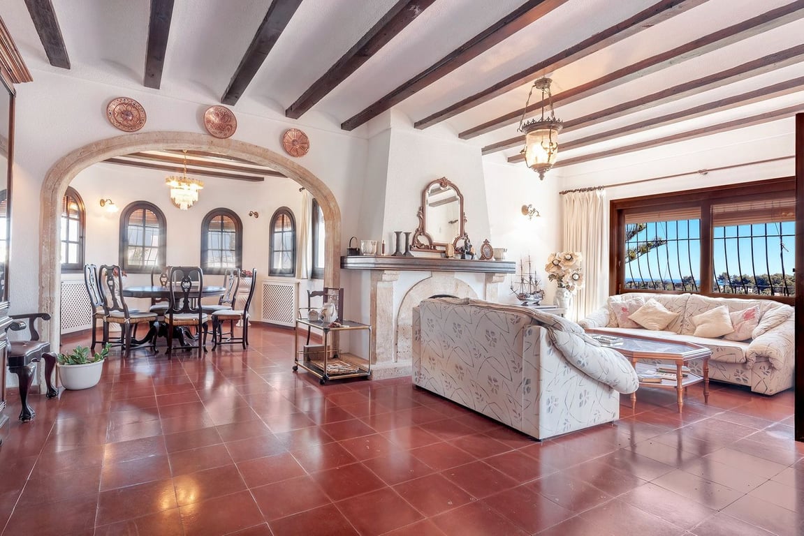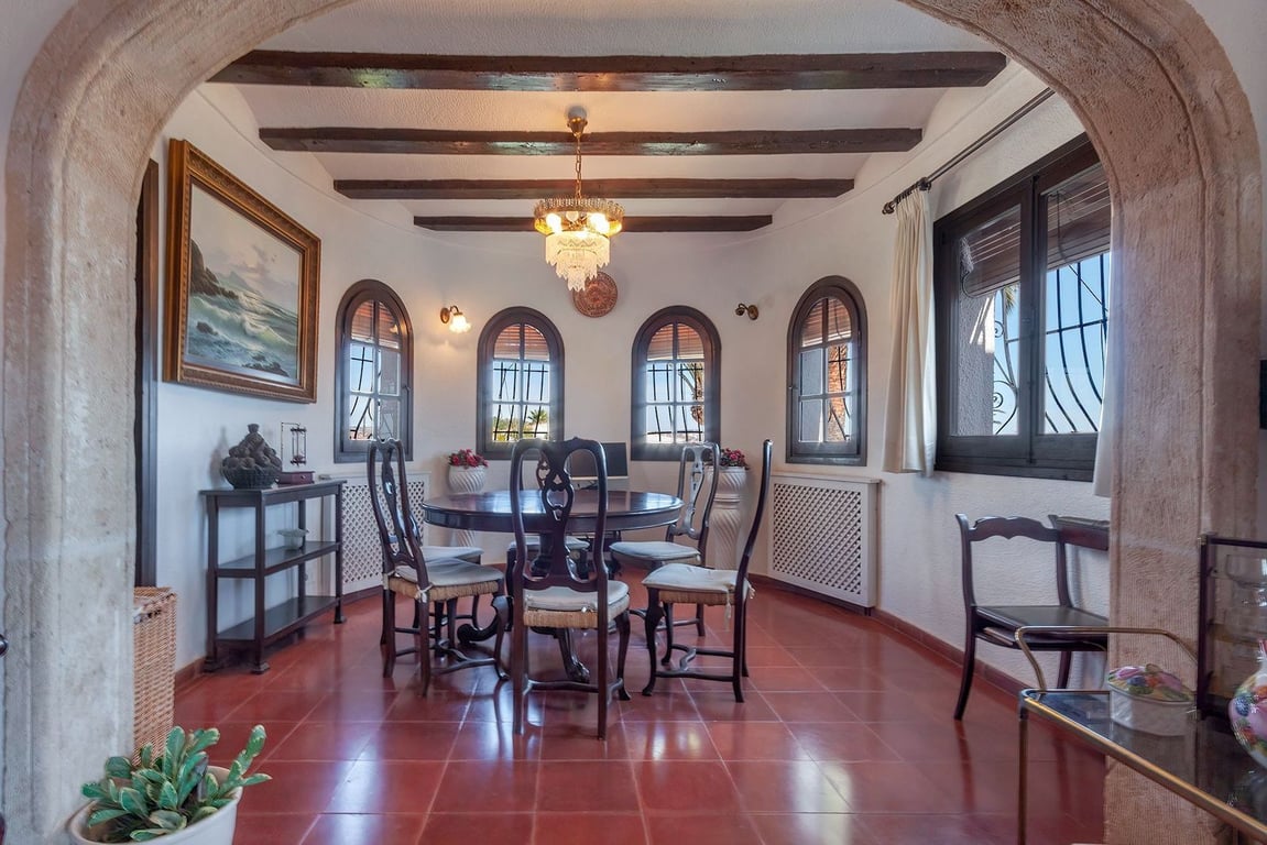 Located in Tosalet Hills,completely renovated, 5 min driving from the sand beach of Jávea and all amenities, fully fenced plot of 1059 m2 with beautiful well maintenance Mediterranean garden and lawns, pedestrian entrance and driveway, pool, Garage and stunning sea views . The Villa with a lot of character is 280 m2 in 3 floors and comprising :an Entrance Hall, spacious Lounge /Dining room with fireplace and access to Terrace overlooking the Garden, the pool and the sea and connected to the garden through and external staircase, , fully equipped Kitchen with access to the exterior , 1 master Bedroom with 1 ensuite Bathroom, 1 double Bedroom , and 1 Bathroom. On the Ground floor ,connected through an internal staircase, 2 Bedrooms with 1 Bathroom 1 Bedroom, Cellar and access to the Garage and covered Terrace connected with the pool area and Garden . On the top floor sitting room and Solarium. Central Heating by gas[IW]