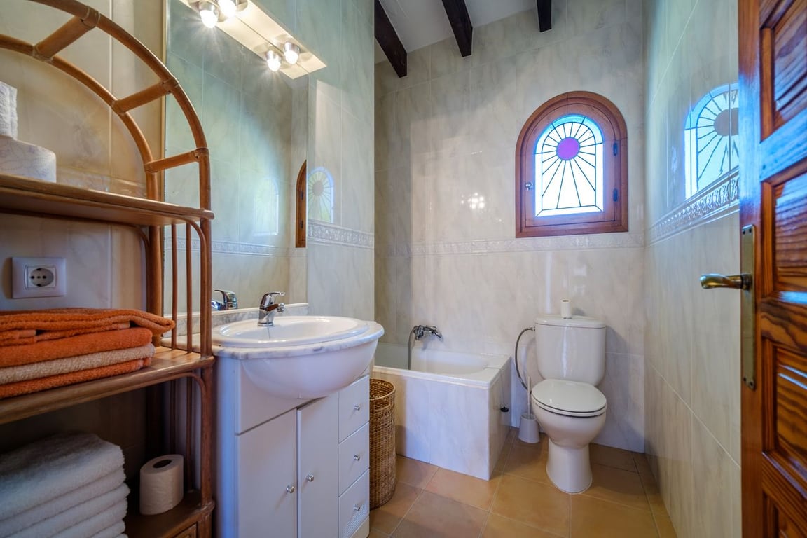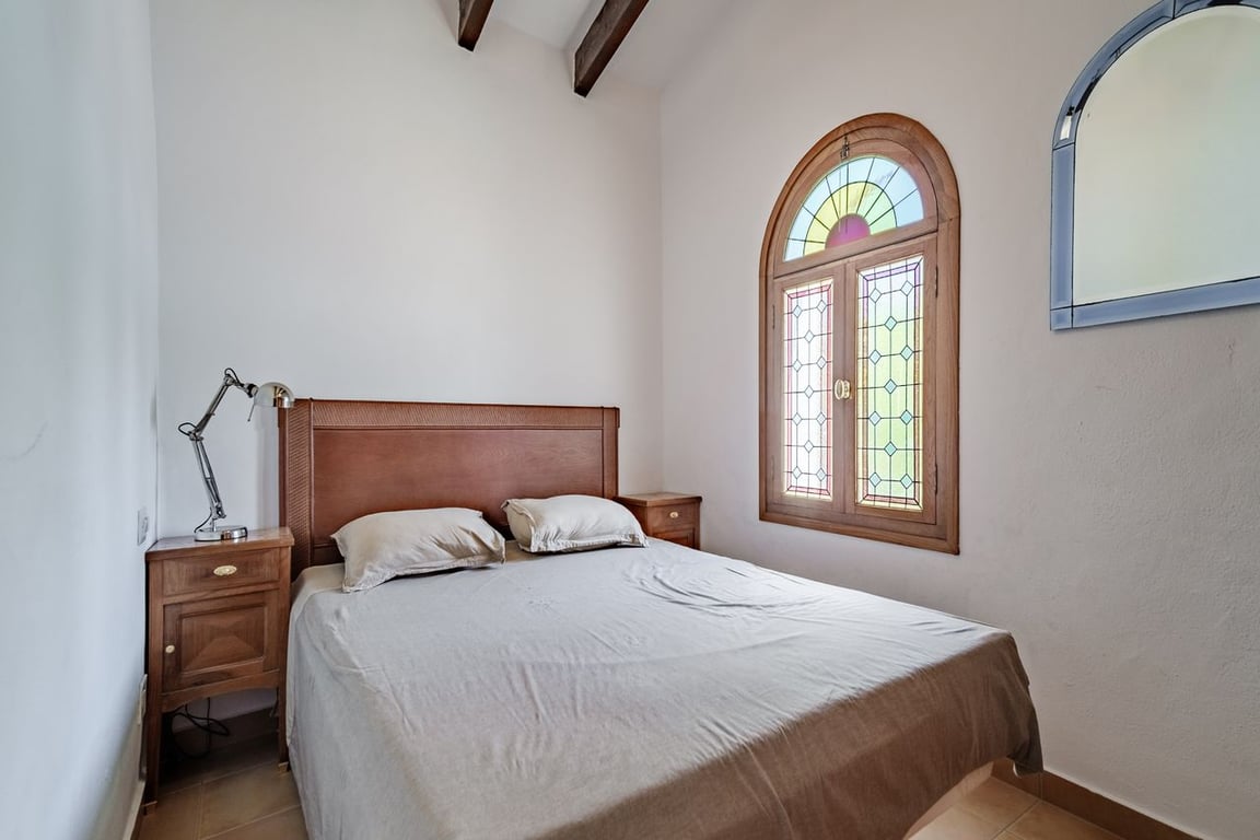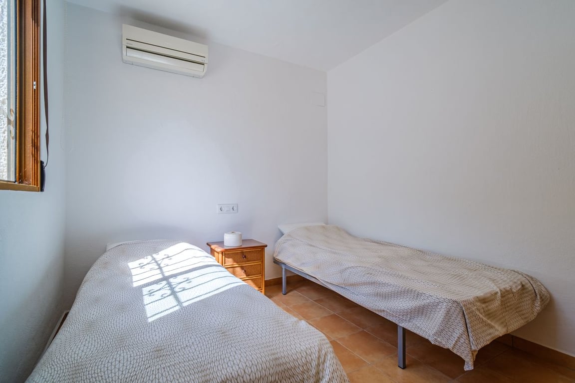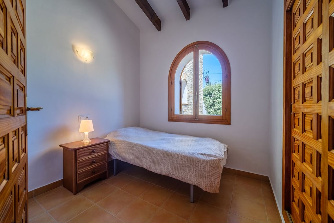 A dream villa is up for sale in Javea, located in the Costa Nova urbanization. This villa is in excellent condition both inside and out. The garden, with its large pool nestled in the center of the terrace, is well maintained and leaves nothing to be desired. Adjacent to the pool, there is a spacious area perfect for sunbathing. The villa comprises 6 bedrooms and 3 bathrooms. On the ground floor, there are 5 bedrooms and 2 bathrooms, while the first floor features an additional bedroom with a bathroom and kitchen. All bedrooms are equipped with built-in wardrobes and air conditioning. The ground floor boasts a sizable sitting area overlooking the pool. Adjacent to the living room is the kitchen, which has an additional exit leading to the outdoor.