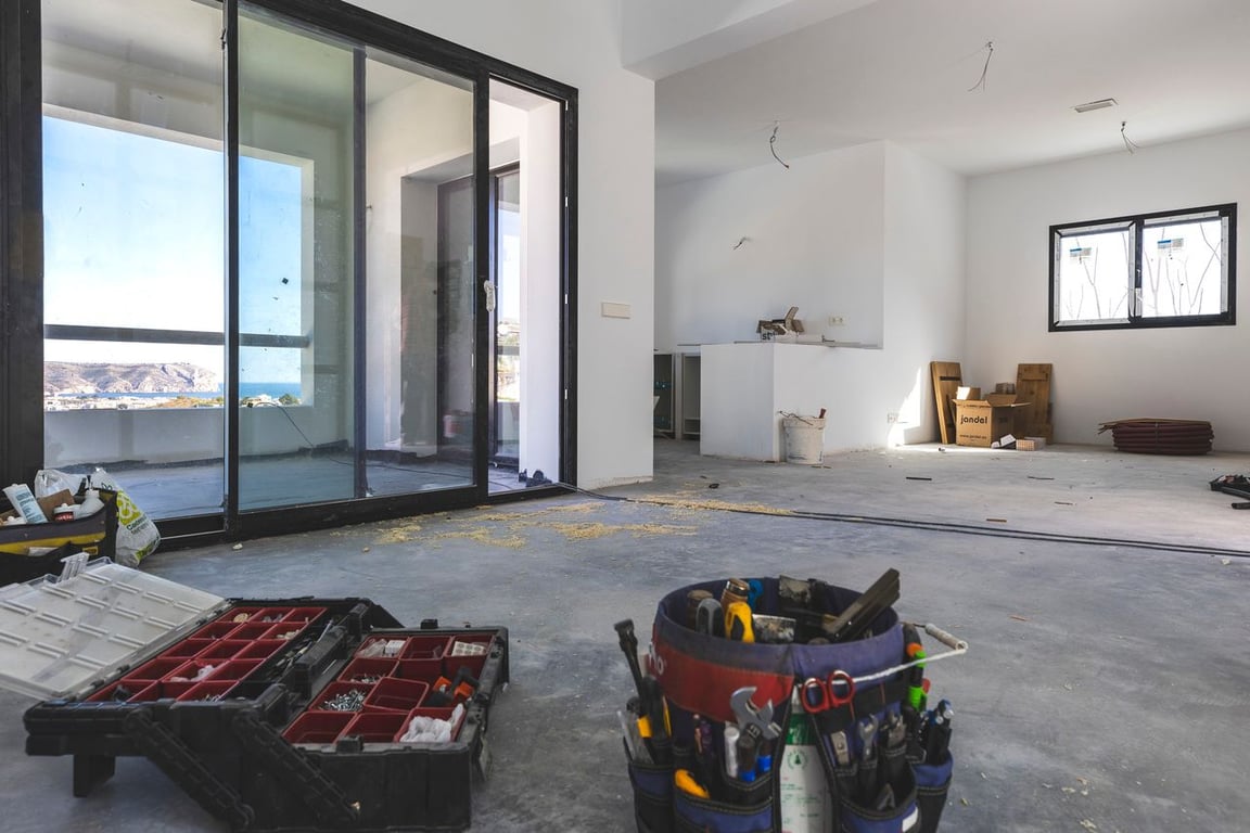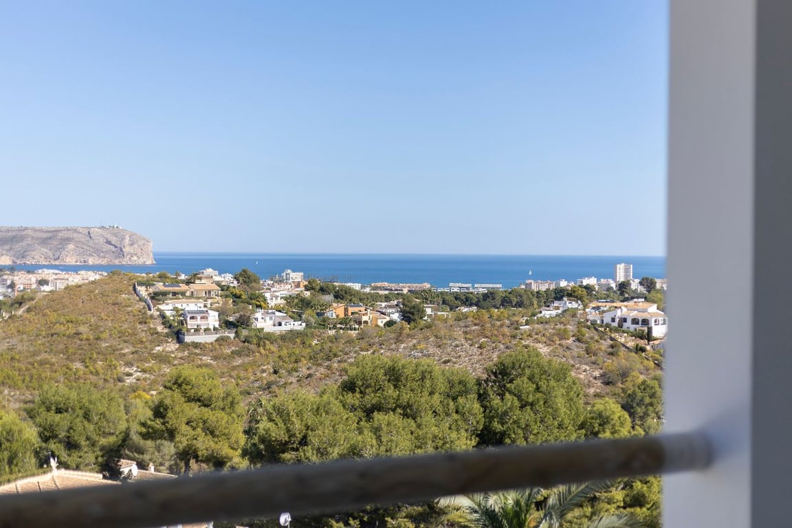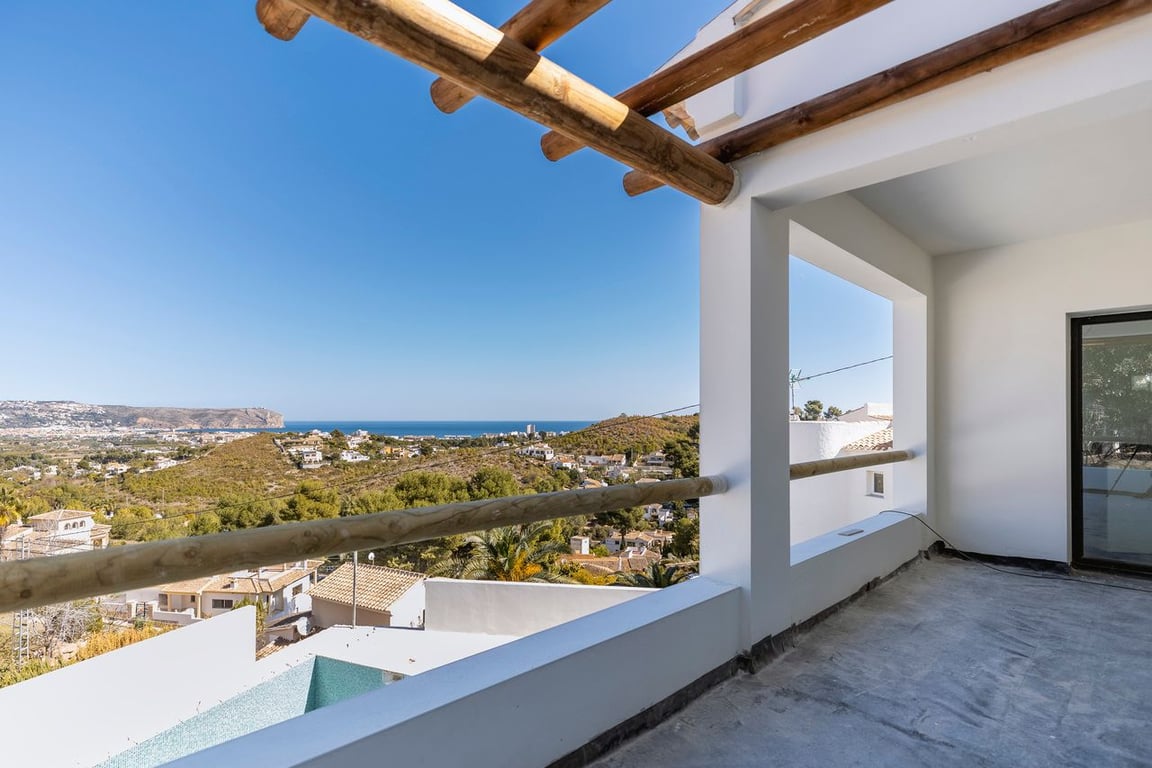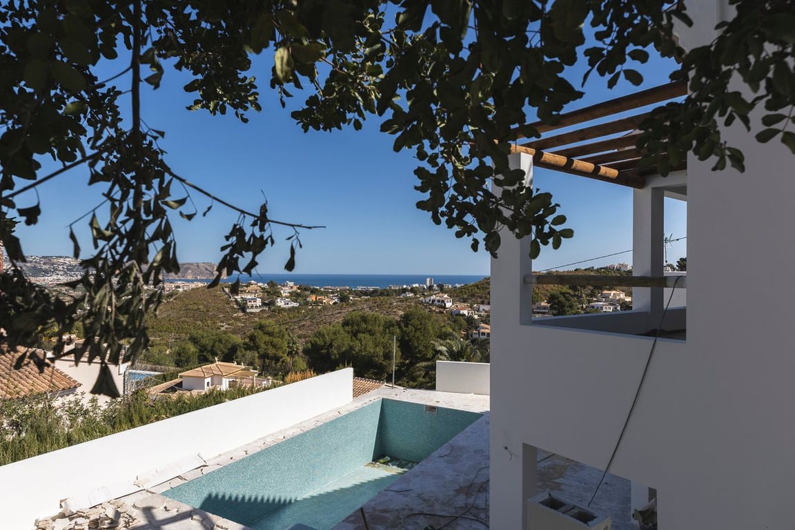 This pretty villa offers amazing views of Javea, its bay, and the sea. It has 3 bedrooms, each with its own bathroom.The villa has two floors, and each one has a big covered terrace where you can enjoy the beautiful views.When you arrive at the top floor, you'll find a nice open space with a kitchen, a dining area, a bedroom, and a bathroom. Downstairs, there are two more bedrooms, each with its own bathroom, and a toilet for guests.Outside, there's a terrace with a private pool and a garden with some lovely olive trees and cozy spots to sit.The renovation of this property is soon to be finished. In addition you have the option to buy it furnished with all new furniture.