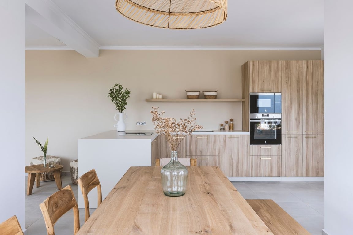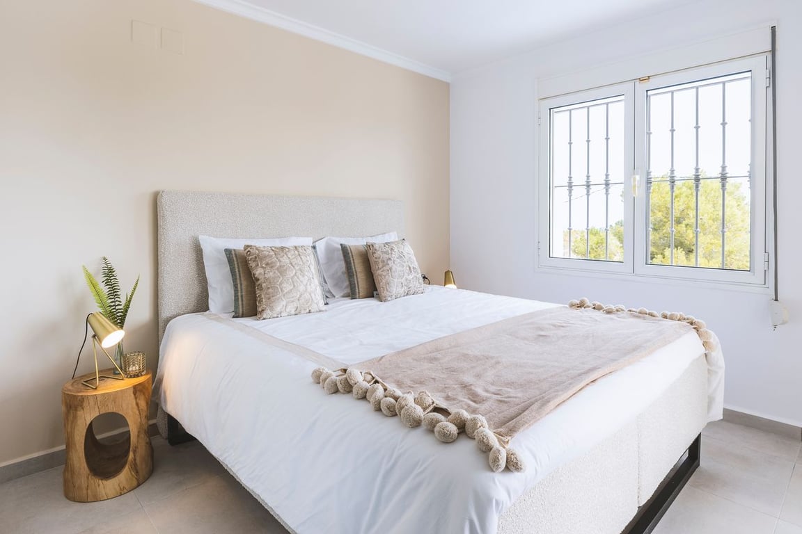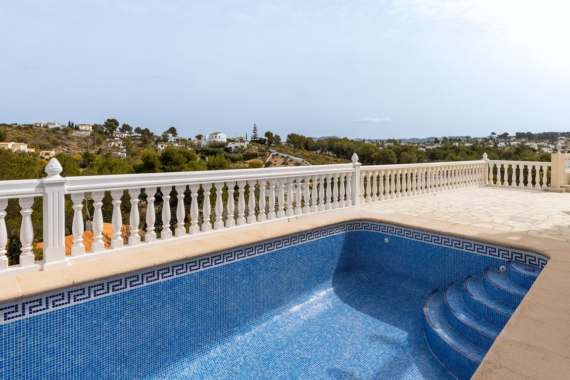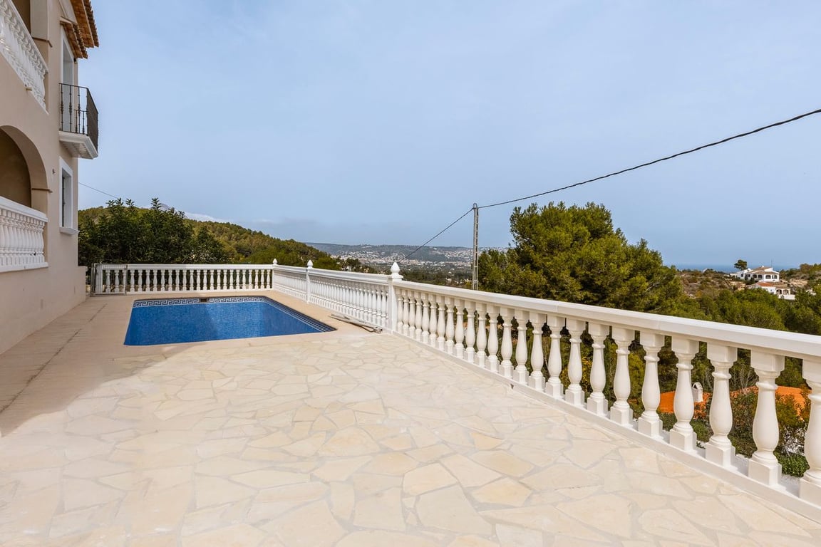 This lovely villa in Javea offers fantastic views of the bay. It has 4 bedrooms and 3 bathrooms.You enter through a nice staircase to a terrace with a pool and a place for BBQ. Downstairs, there are three bedrooms, two bathrooms, and a covered terrace. Upstairs, there's a living room, a kitchen, a hallway, and another bedroom with its own bathroom. The big windows in the living room and terrace show off great views of the sea and mountains. And there's a fantastic outdoor kitchen where you can soak in the stunning sunsets.The villa can also come fully furnished with all-new, tasteful, and stylish furniture, adding an extra touch of comfort for those living abroad with no time to do this by themselves. The location of the villa is near Pinosol park.