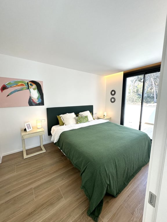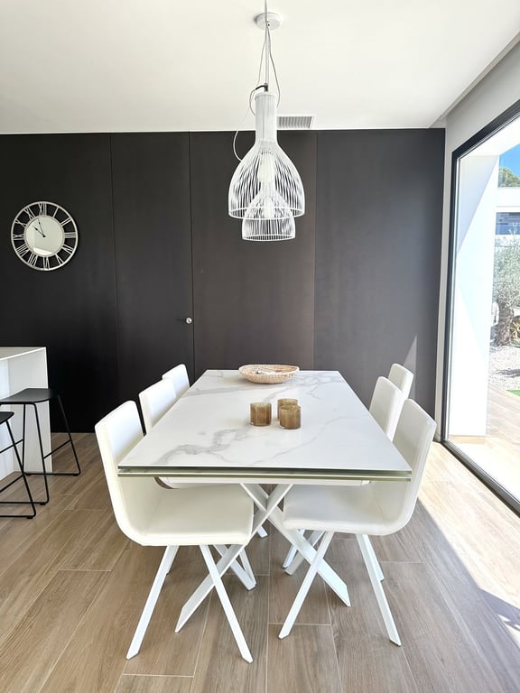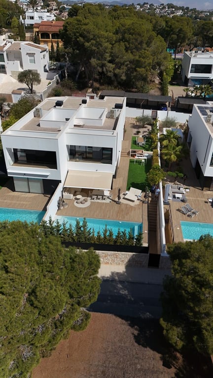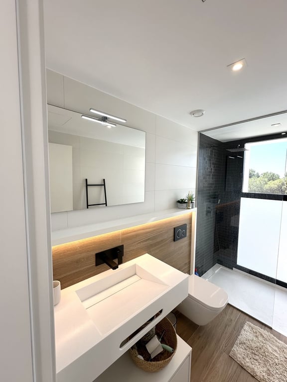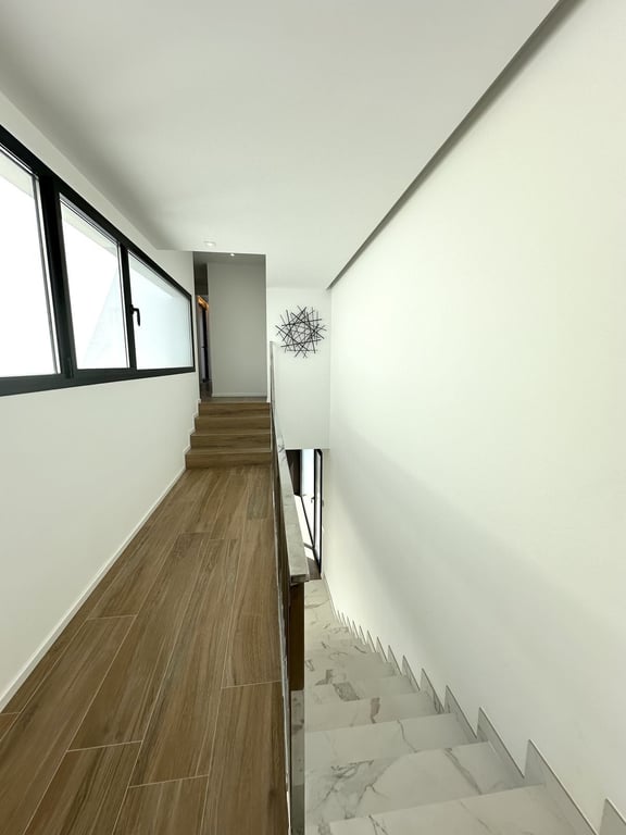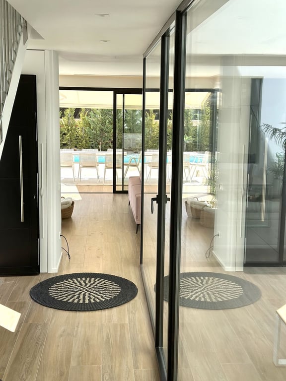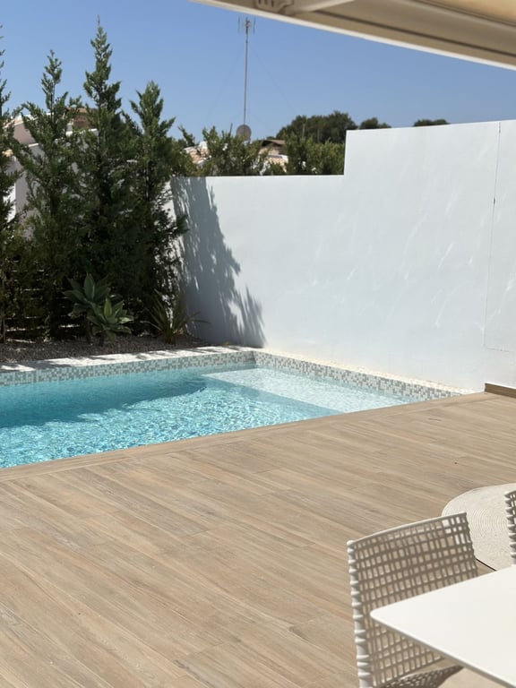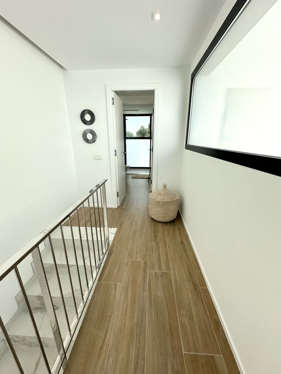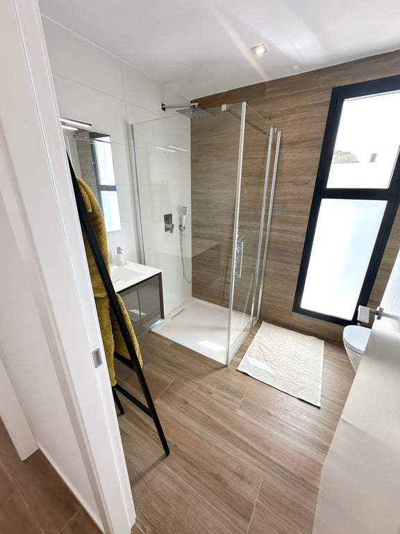 Luxe details zijn overvloedig aanwezig met houtlook tegelvloeren en inloopdouches in elke badkamer, waardoor elegantie en comfort ontstaan. Alle slaapkamers zijn uitgerust met airconditioning, wat zorgt voor een comfortabele omgeving het hele jaar door.